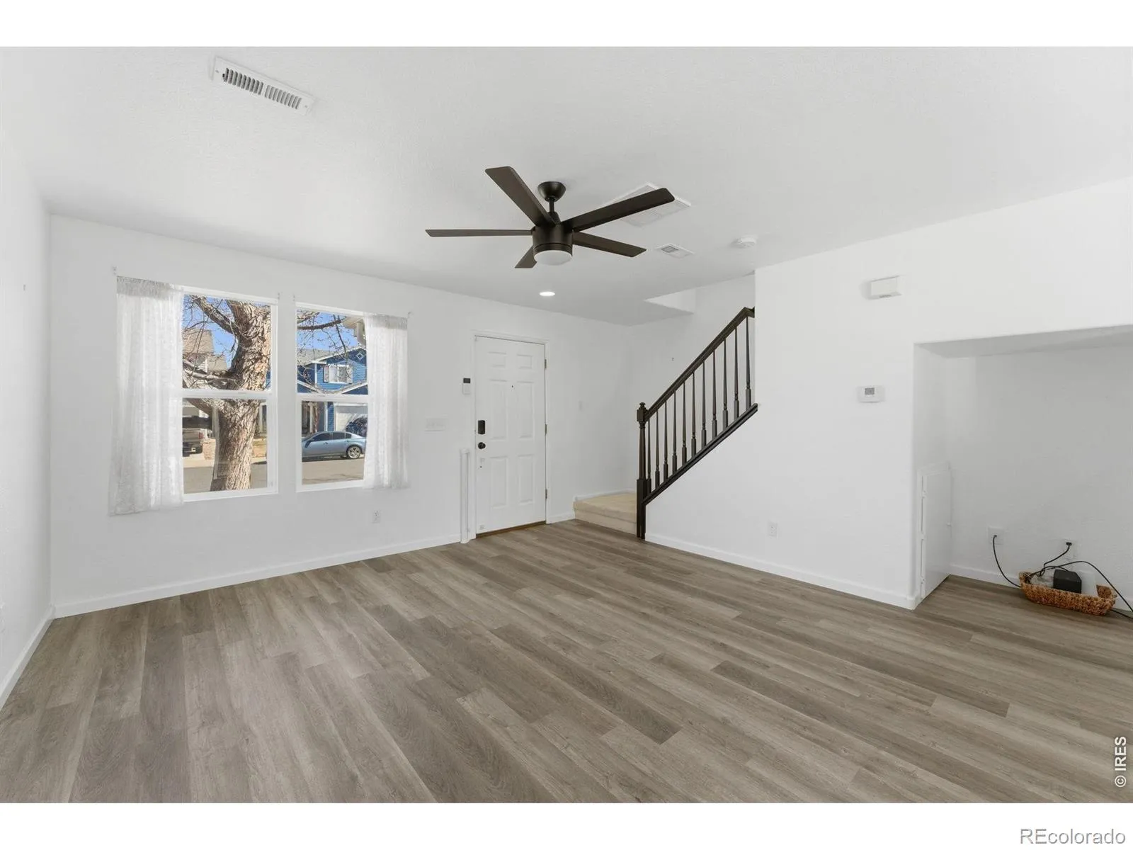 Kittle Real Estate presents a home with charm and comfort in all the right places! This two-story home in East Longmont brings together inviting curb appeal and a layout designed for easy everyday living, creating a space that feels both warm and functional from the moment you step in. The open living area flows seamlessly from one space to the next, making it easy to move between relaxing, dining, and gathering while still feeling bright and connected throughout. The kitchen features stainless steel appliances and a practical layout that keeps everything within reach, offering a space that works well for both quick meals and longer prep sessions. The upper level creates a more tucked-away feel with three bedrooms, including a primary suite complete with an ensuite bath and walk-in closet, plus a conveniently located laundry area that keeps daily routines efficient. The fenced yard includes a patio that offers a low-maintenance spot for relaxing or entertaining. The covered porch, complete with an exterior ceiling fan and shade from a mature tree, sets up a comfortable space to unwind while enjoying the neighborhood setting. Just a stone’s throw from the neighborhood park and surrounded by scenic trails, this home puts outdoor access right at your fingertips while still keeping everyday conveniences close by.