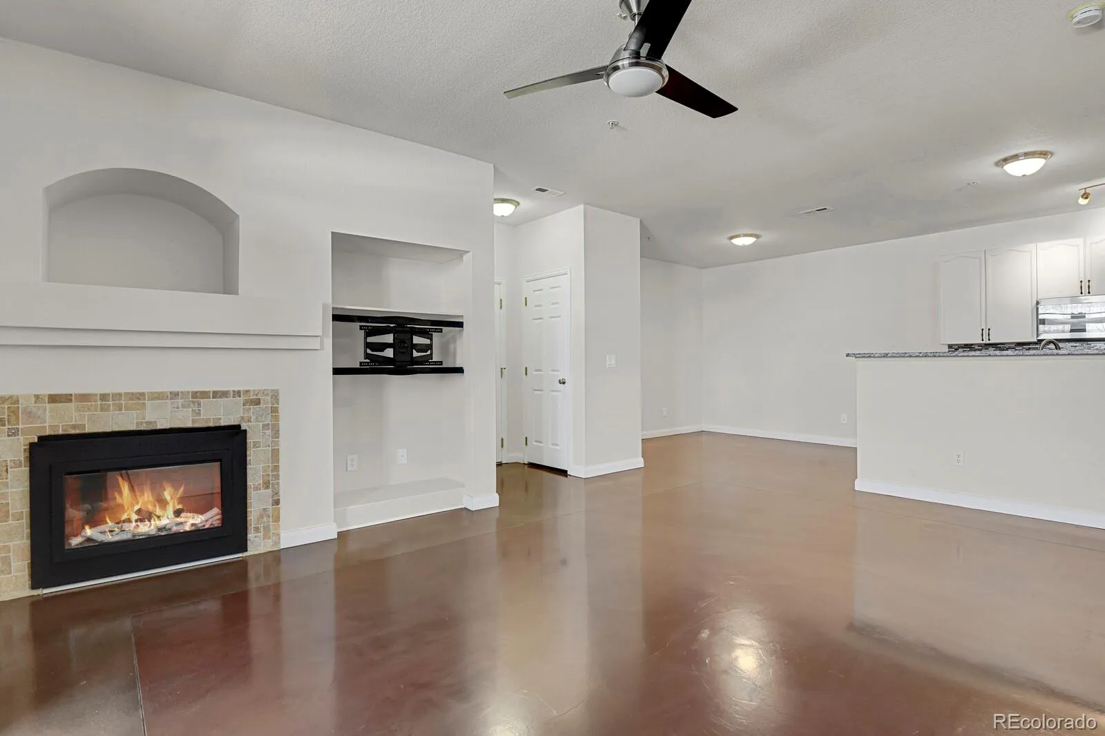 Beautifully updated west-facing condo in a prime location within the community! This inviting unit features stunning epoxy concrete floors throughout, creating a modern, durable finish that is both stylish and low maintenance. The kitchen is nicely upgraded with stainless steel appliances, granite countertops, and newer cabinetry, offering both functionality and a clean contemporary look that flows seamlessly into the living space.