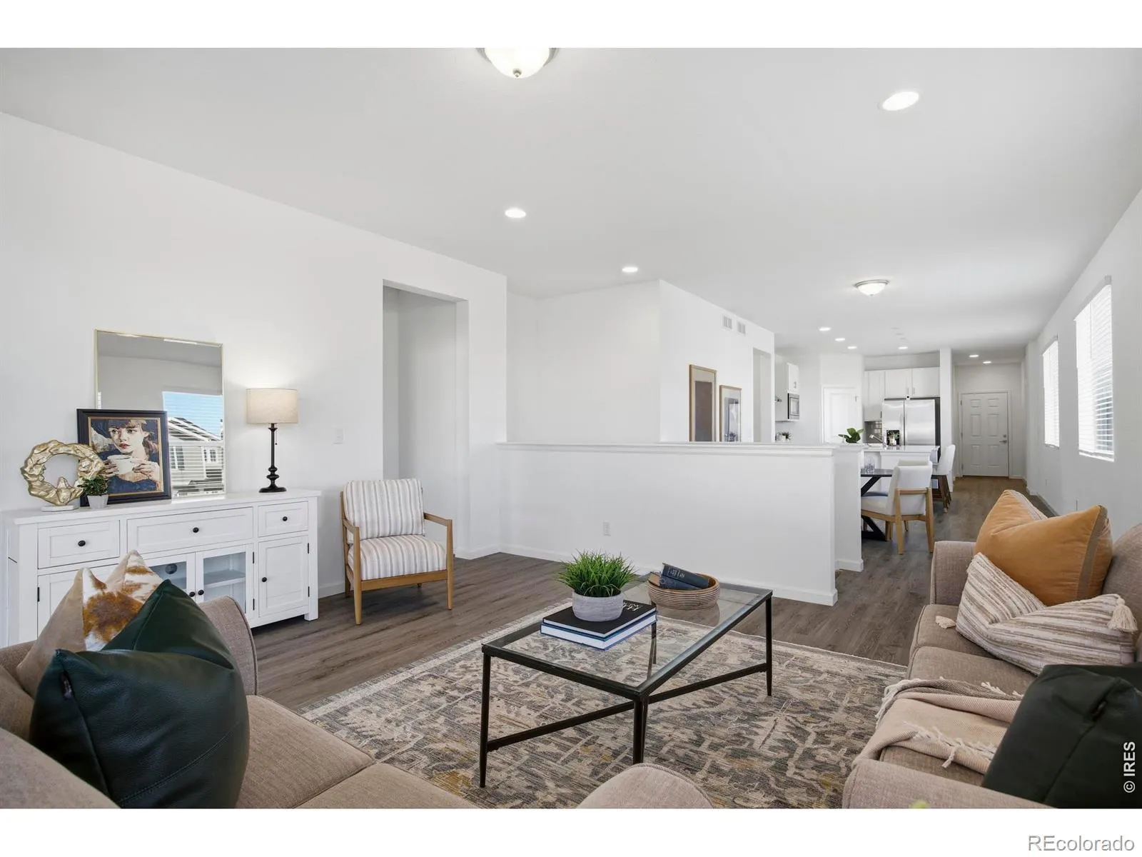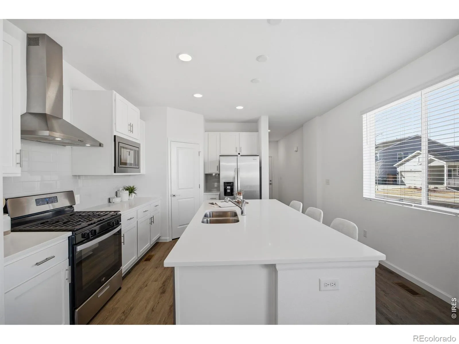 This perfect one-story home with 9′ ceilings, laminate floors, clean and crisp designer touches, and full unfinished basement is ready for your next move! Built in 2023, 438 Overbrook Ln provides an open ranch plan that features a stunning chef’s kitchen with Whirlpool stainless appliances, spacious island, and generously sized walk-in pantry. The separate dining area and great room provide plenty of space to entertain and relax with family and friends.The primary suite welcomes you with a large luxurious walk-in shower, dual vanity and roomy walk-in closet.The floor plan provides great separation of space between the primary bedroom and secondary bedrooms. Laundry room is secluded from the living space for better functionality. Large windows and patio door provide tons of natural light! Enjoy the Colorado summers in your backyard oasis. A large, stamped concrete patio, stone bench and fire pit, pergola, gas stub for a grill, newly sodded and fully fenced yard complete this home. Highlands is near Fox Hill Golf Course and only 5 mins to Downtown with a great selection of local restaurants and breweries. Centrally located between Boulder, Ft. Collins and Denver with quick access to I-25. Enjoy the great outdoors at Union Reservoir, Sandstone Ranch, St. Vrain State Park. HOA provides access to nearby clubhouse with a gym. HOA covers trash service.