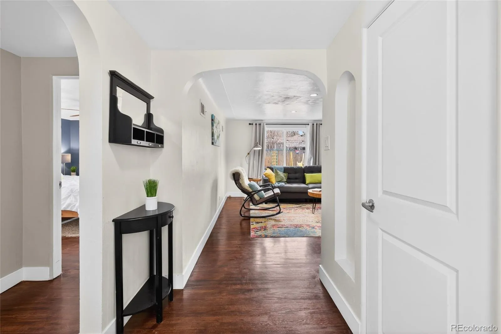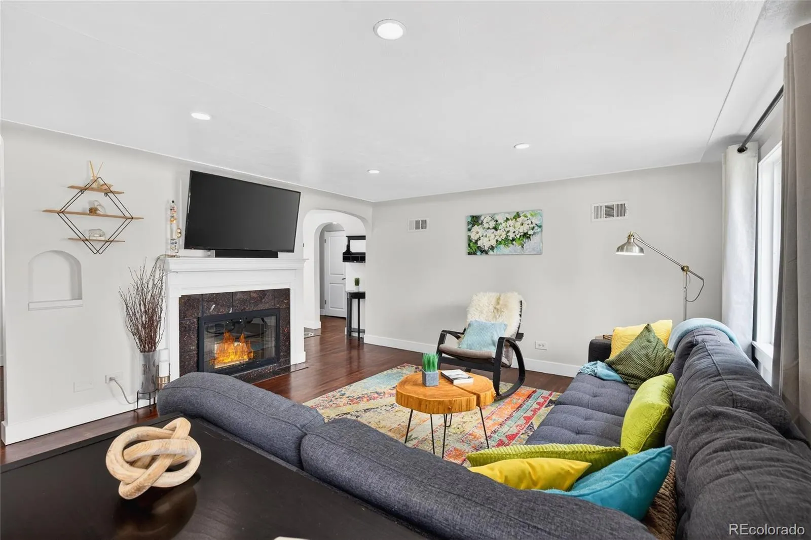 Welcome to this inviting and thoughtfully updated ranch style home in the Evanston area, where timeless character and modern comfort come together on a generous lot. Set back from the street, the home offers a warm sense of arrival and a layout that feels both connected and comfortable, with bright living spaces that draw your eye toward the backyard. Inside, classic architectural details blend with meaningful updates. The living room features hardwood floors, arched doorways, coved ceilings, recessed lighting, and a cozy wood burning fireplace that creates an inviting place to gather. French doors open to the backyard and deck, making indoor outdoor living feel easy and natural. The kitchen and dining area serve as the heart of the home, with skylights, white shaker cabinetry, granite countertops, subway tile backsplash, stainless appliances, and a breakfast bar. The open flow between the kitchen, dining, and living spaces supports both everyday living and entertaining. All three bedrooms are generously sized and ideal for guests or comfortable living, with one featuring a private ensuite bath. In addition, a separate bonus room offers a versatile space for a home office, den, playroom, workout area, or creative retreat. Outside, the fully fenced backyard offers exceptional versatility with a Trex deck, storage shed, alley access, off street parking, and room for gardening, play, or a possible garage. Recent improvements include a newer furnace and central air, upgraded skylights, newer gutters, newer dishwasher and disposal, and an added exterior cleanout. Additional features include, smart thermostat technology, a spacious laundry room, and a pantry or storage closet off the kitchen. Conveniently located with easy access to Denver, Englewood, South Broadway, the DU area, Porter, Swedish, this home offers a location that supports an easy daily lifestyle. Come experience the warmth, flexibility, and potential that make this home such a special place.