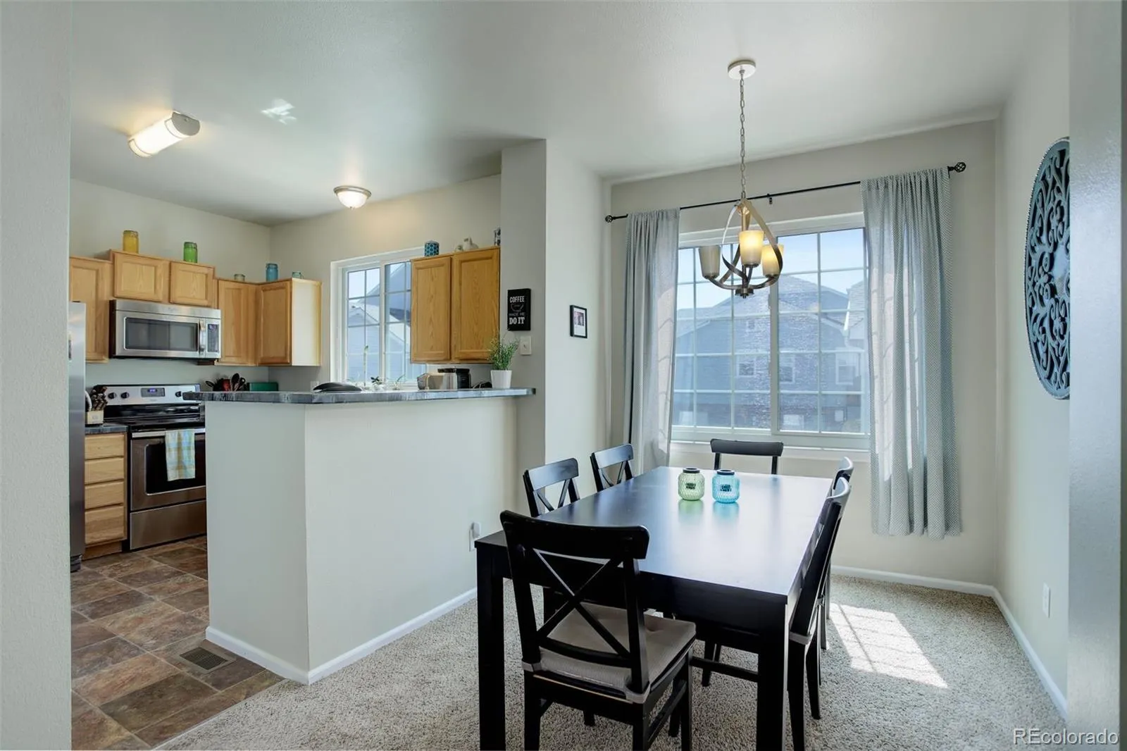 Step into style, comfort, and convenience with this beautifully maintained Thornton townhome, featuring a 2-car attached garage and a 1-year 1% rate buydown for qualified buyers through the Listing Agent’s preferred lender. The main level welcomes you with a warm living room highlighted by a stone gas fireplace and ceiling fan, flowing seamlessly into the dining area and kitchen with stainless steel appliances, epoxy-coated countertops, and light brown cabinetry. Large windows fill the space with natural light, creating a bright, airy atmosphere.