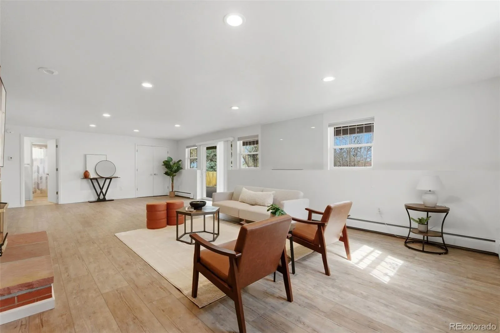 Large windows throughout fill the home with natural light, creating a bright and welcoming atmosphere. The updated kitchen features quartz countertops, stainless steel appliances, and opens to the dining area and main living space, perfect for everyday living and entertaining. The main living area is warm and inviting with a cozy wood-burning fireplace.