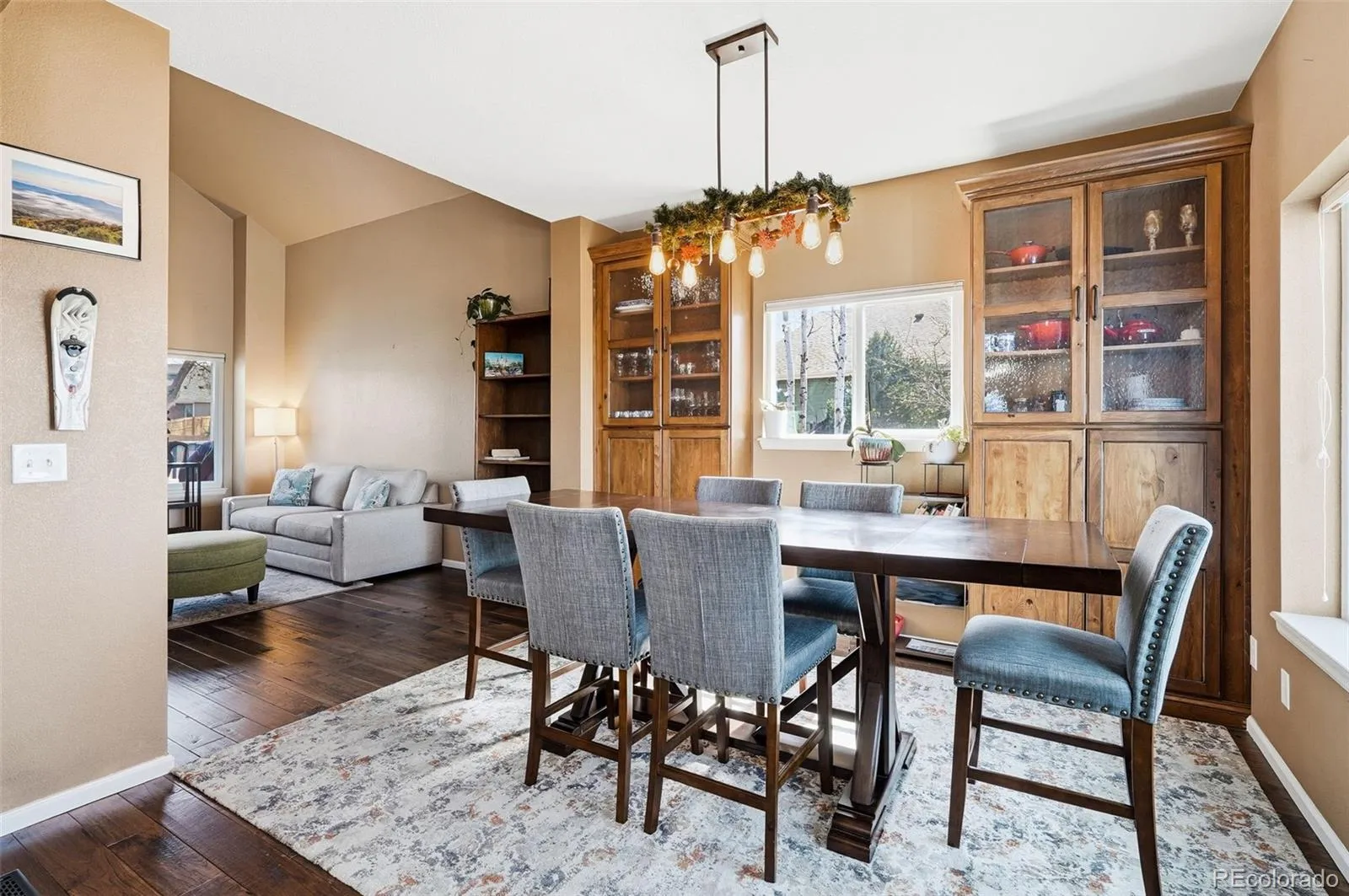 Mountain views, a functional layout, and meaningful updates throughout come together in this 3-bedroom, 4-bathroom home in Parker. From the moment you walk in, you’re greeted by a two story entry, sweeping staircase, and recently refinished hardwood floors, with natural light filling the main level. The kitchen is set up for both everyday use and entertaining with Beechwood cabinetry, leathered granite countertops, an inset Blanco sink, stainless steel appliances, and a large center island. It opens directly to the living space with a fireplace, creating a comfortable and connected layout, along with a formal dining area for larger gatherings. Upstairs, the primary suite includes its own fireplace, a sitting area with mountain views, and a newly remodeled bathroom featuring dual vanities, a soaking tub, a separate shower, and a walk-in closet. Two additional bedrooms and a full bathroom complete the upper level. A finished walkout basement adds flexibility with a large recreation space, wet bar, additional bathroom, and room for a gym, office, or guest setup. Recent improvements include new flooring, fresh exterior and interior paint, updated lighting, added attic insulation, a new furnace installed within the last four years and a new dishwasher. The garage is equipped with a 240V outlet for EV charging. The backyard offers a true retreat with mature apple and pear trees, a massive deck with incredible views and an included hot tub and sauna. Located near Black Bear Golf Club, parks, trails, and neighborhood amenities with convenient access to major roads, this home offers a combination of updates, space, and views in a well established Parker community.