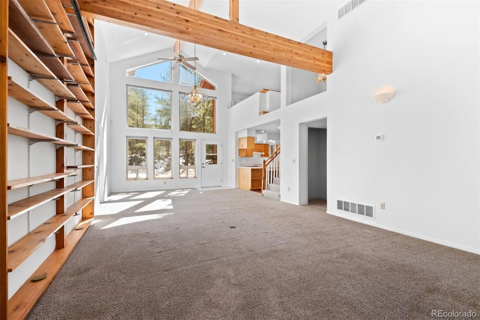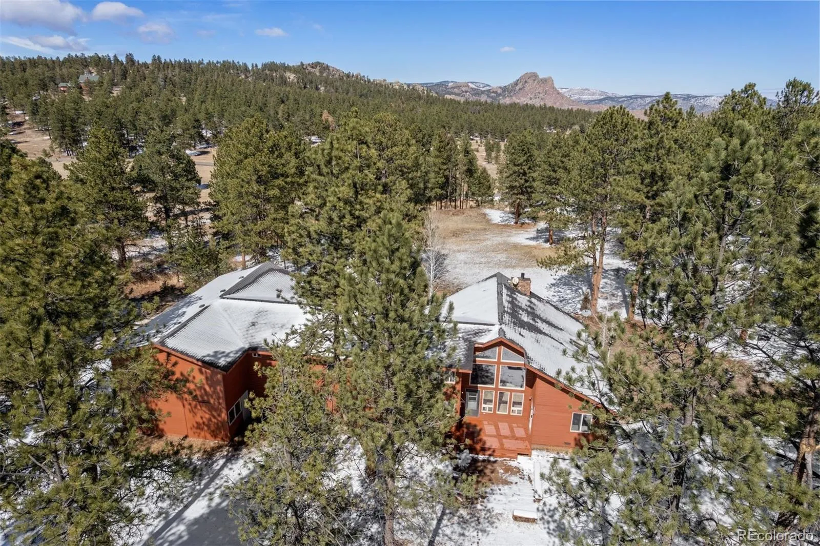 Welcome to your Rocky Mountain sanctuary—where breathtaking views, peaceful surroundings, & refined mountain living come together in perfect harmony. Set on 10 pristine acres in Spring Creek Ranch, this exceptional 5-bed, 3-bath mountain contemporary home offers 2,780 sq ft of thoughtfully designed living space. Step inside to a dramatic 2-story living room featuring soaring cathedral windows, exposed wood beams, & a striking wall of wood shelving. The inviting dining area is perfect for entertaining, while the cozy eat-in kitchen provides ample counter space & storage for everyday living. The main-floor primary suite is a true retreat, complete with a nice 4-piece bath. Two additional bedrooms, a full bath, & a convenient laundry space complete the main level. Upstairs, a versatile loft offers the ideal space for a home office, study, or media area, enhanced by custom built-ins. Two additional bedrooms & a third bath are situated above the oversized attached garage, offering privacy & flexibility for guests or family. Designed with both comfort & functionality in mind, the home features a direct connection to the barn—allowing easy access without exposure to the elements. The impressive 24’ x 48’ two-story barn includes 3 stalls, a tack room, a 1,200 sq ft loft, & opens to a corral and level pasture—perfect for horses, equipment storage, or creative pursuits. A 12-foot-wide drive-through lane accommodates tractors, trailers, or RVs with ease. Residents of Spring Creek Ranch enjoy exclusive access to a stocked community pond for fishing, canoeing, & paddleboarding, as well as a charming outdoor pavilion for picnics. Ideally located near Buffalo Creek & adjoining Pike-San Isabel National Forest, with direct access to the Colorado Trail, this property also sits just minutes from the North Fork of the South Platte River—renowned for its gold medal trout fishing.This is Colorado mountain living at its finest—private, picturesque, and full of possibility.
