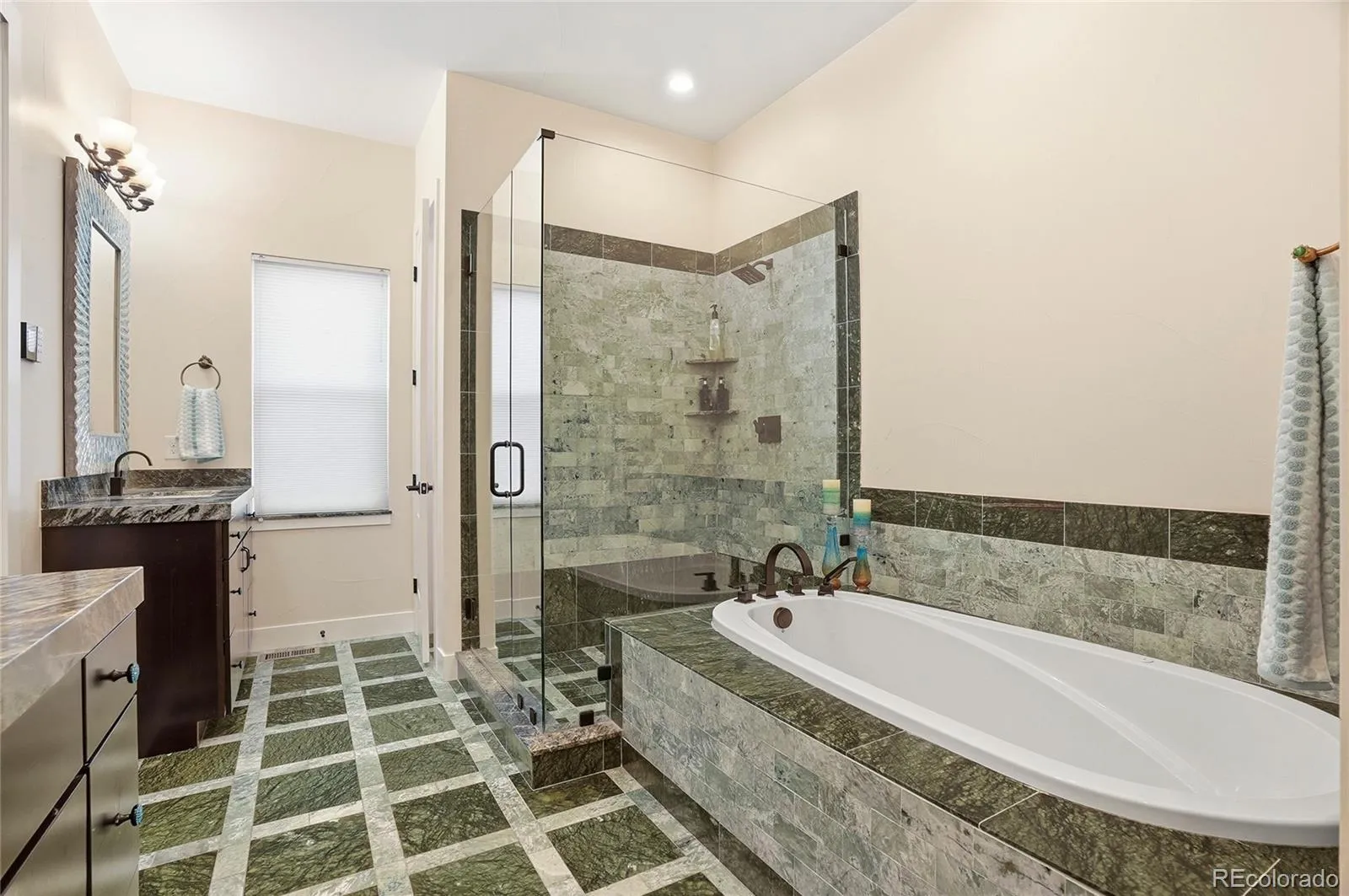 The thoughtfully designed layout features bedrooms in separate wings, offering privacy and flexibility. The main-floor guest bedroom includes an en-suite full bath, while the luxurious primary suite provides a true retreat with a spa-like bathroom, soaking tub, walk-in shower, dual vanities, and a spacious walk-in closet. A main-floor office adds versatility for work or additional living space.
