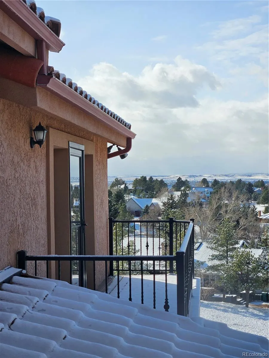 Bring your horses to this incredible, completely fenced-in custom-built home at the end of a quiet cul-de-sac in the Chenango Equestrian Development. You’ll enter through a heated and cooled sunroom to the main level, where you’re greeted by a dramatic, atrium-style foyer. Look down onto the lower level where you’ll find a rock garden with a Koi Pond, waterfall, and a live tree that reaches the upper level skylight. The formal living room has Rocky Mountains views from either the large windows or the huge deck and is warmed by a gas fireplace. There is an adjoining office/study with even more views and has a separate entrance to the sunroom. Enjoy the just-completed remodel in the Chef’s kitchen which includes a JennAir double oven, microwave and cooktop. Ruvati work station sink and accessories, instant hot and cold water, soft-close cabinet doors and drawers, a Maytag dishwasher, a Sub-Zero refrigerator/freezer, quartz countertops, sun bench with storage, and a well-lit walk-in pantry. The family room not only offers comfortable evenings with the gas fireplace and spacious deck but also makes entertaining even better with a KitchenAid ice machine and dual zone wine chiller. The spacious primary suite offers a private balcony, gas fireplace, skylights with shades, and an adjoining primary bath. The bathroom has his and hers walk-in closets with cedar flooring, a full-sized jacuzzi tub, dual head euro style shower, remote-controlled skylight shades, all marble tile and LED lighting. Your guests may never leave with the large guest suite with a private bathroom. The two other bedrooms are joined with a newly remodeled Jack and Jill bath. Huge lower-level walk-out! New carpet throughout. LED lighting throughout. Tons of natural light. This home has tons of incredible outdoor space with views, dark starry nights, a gas firepit and privacy. All inquiries to be directed to the Seller. Rick. 562-773-7225. Buyer to verify all information. No sign, no lockbox.