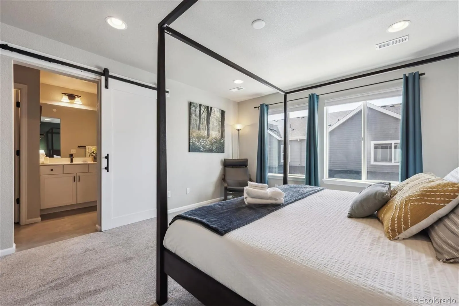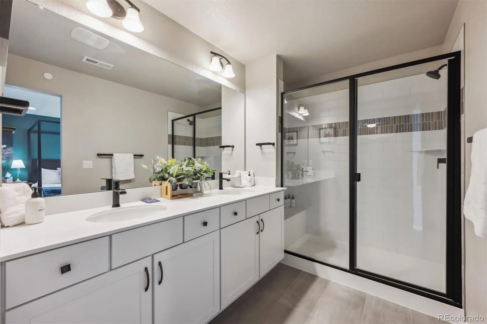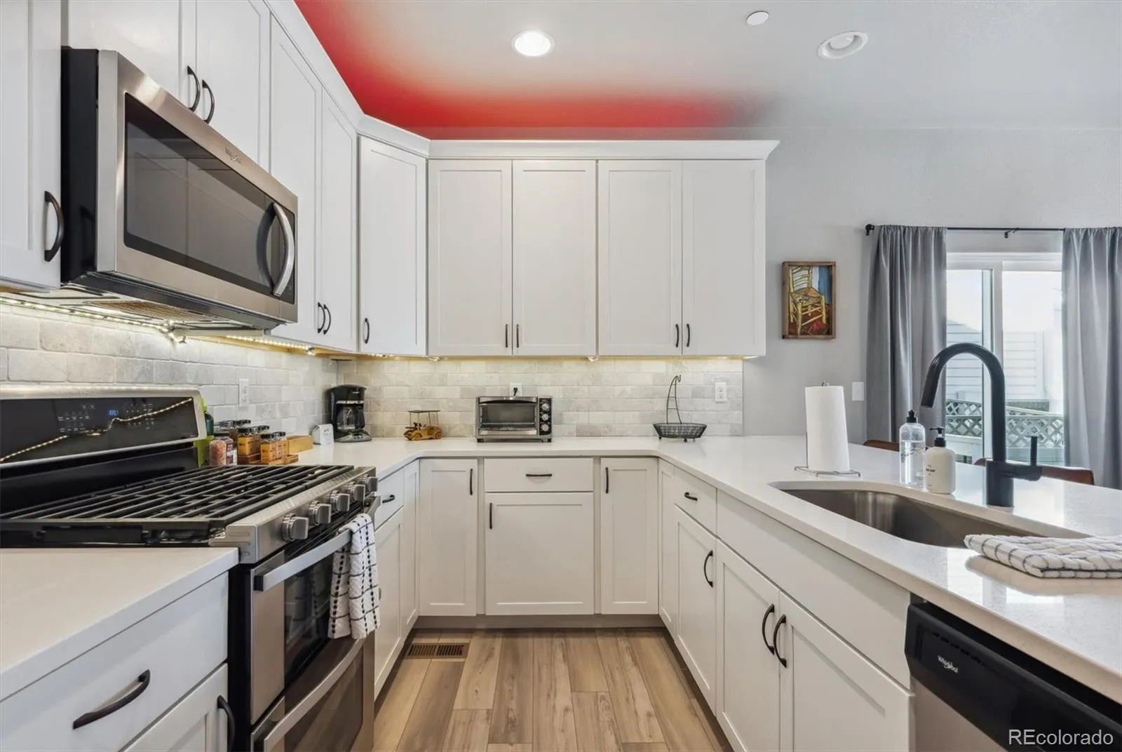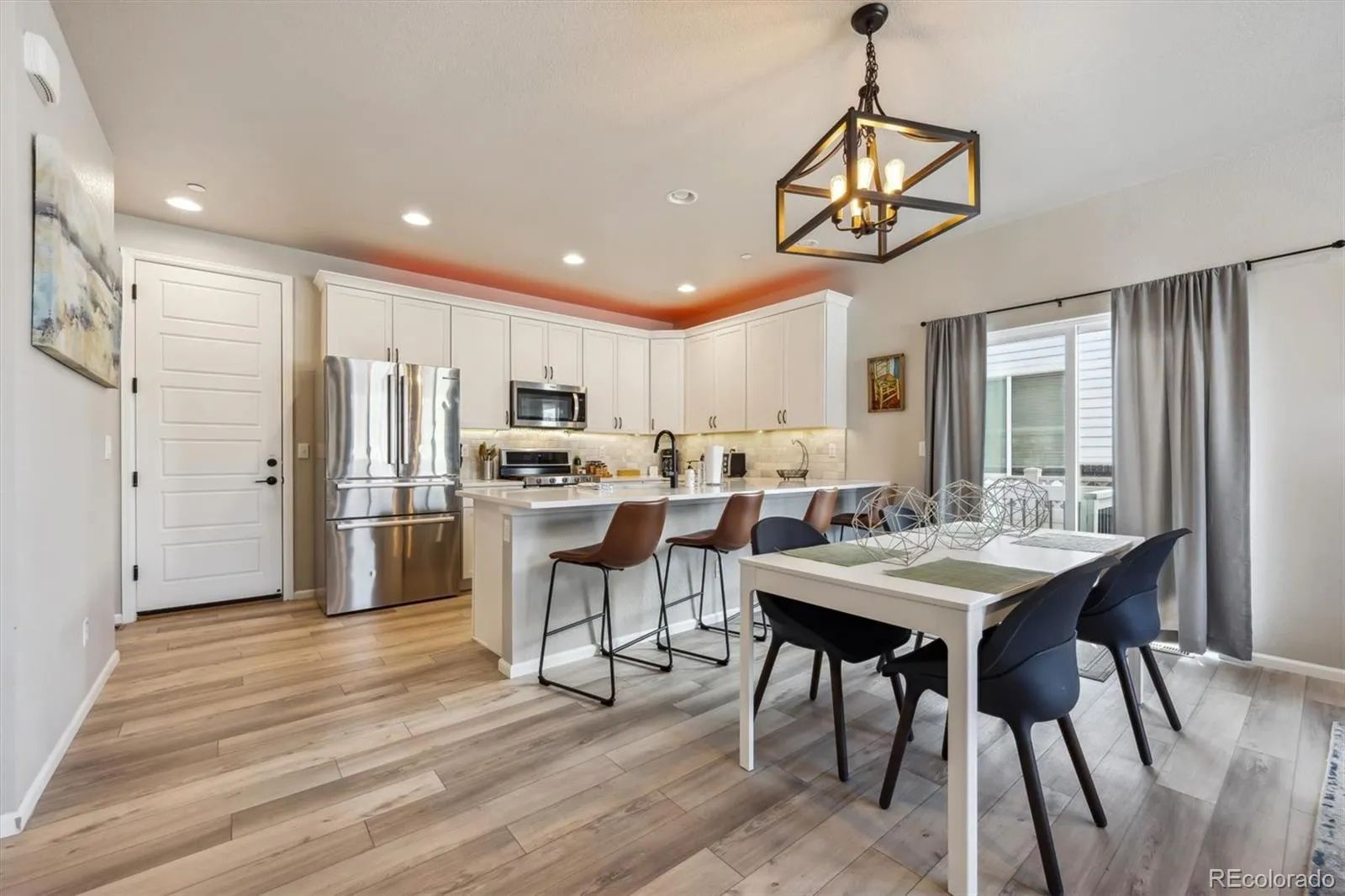 Welcome to effortless, low-maintenance living in the heart of Westminster — where everyday convenience meets the beauty of the Rockies. This thoughtfully designed home welcomes you with an open, light-filled floor plan featuring beautiful laminate hardwood floors, soaring ceilings, and a soft, neutral palette. The chef-inspired kitchen is perfect for both daily living and entertaining, featuring quartz countertops with bar seating, upgraded white soft-close cabinetry with under-cabinet lighting, a pantry, and a premium stainless-steel appliance package, including a Bosch refrigerator and double-oven range. Upstairs, the private living quarters offer two generously sized secondary bedrooms, a full bath, a convenient laundry area, and the primary suite. This serene retreat features a generous walk-in closet and a luxurious four-piece ensuite bath complete with a walk-in shower and built-in bench. The finished lower level expands your living space with a comfortable den—ideal for movie nights, game days, or relaxed gatherings. Additional highlights include a main-floor home office, upgraded 8-foot doors throughout, thoughtfully curated finishes, enhanced lighting, integrated smart home technology, and a two-car attached garage. Outside, enjoy a private side yard with zero-maintenance turf—perfect for relaxing without the upkeep. Ideally located just minutes from shopping, dining, two nearby golf courses, and the popular Alamo Drafthouse Cinema, this home offers exceptional access to entertainment and amenities. Nearby trails and open spaces invite you to enjoy fresh mountain air and Colorado’s natural beauty. Discover refined, contemporary living at 8863 Osceola Street—where comfort, style, and location come together seamlessly.