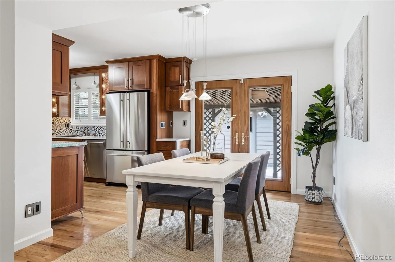 This exceptional end-unit townhome combines timeless character with a dynamic layout designed for modern living. Upon entry, the main level reveals an inviting, open-concept floor plan where original hardwood floors add warmth and texture to the living and dining spaces. The updated kitchen serves as a stylish culinary hub, featuring rich wood cabinetry and stainless steel appliances that make both daily routines and social gatherings a breeze. One of the standout highlights is the expansive covered patio located just off the dining room, providing a private outdoor sanctuary perfect for fresh-air relaxation regardless of the season.