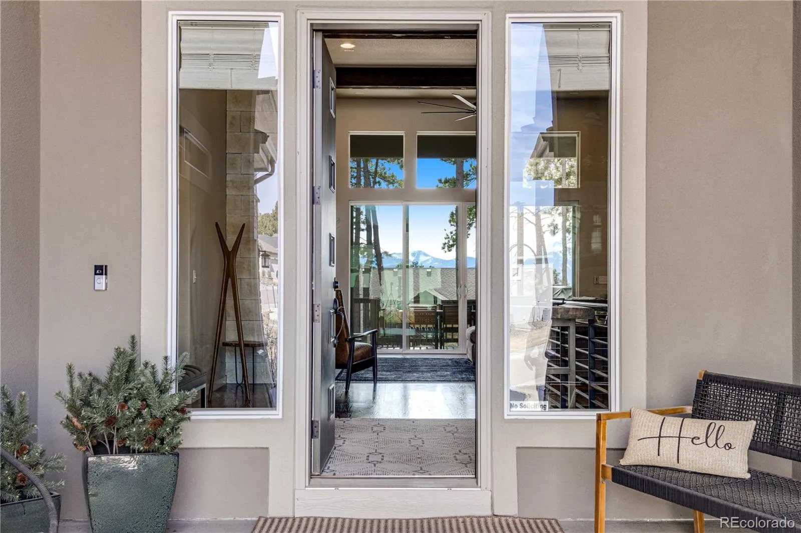 Located in the highly sought-after Sanctuary Pointe community, this thoughtfully designed Vantage Home offers quality construction, functional layout, and elevated finishes throughout. Set on a landscaped, treed lot with mature Ponderosa pines, the setting provides privacy and a true Colorado feel, with convenient access to I-25, nearby trails, and the Tri-Lakes area. The main living areas are designed for both everyday living and entertaining. The kitchen features well-appointed cabinetry, pull-out storage, double ovens, and a concealed walk-in pantry. The dining area captures Front Range views, while the living room opens to a covered deck, creating a seamless indoor-outdoor flow. The main-level primary suite features a five-piece en suite bath with soaking tub and a large walk-in closet. An additional bedroom with en suite bath offers flexibility for guests or multi-generational living. A nearby laundry room and mudroom entry from the garage add everyday functionality. The lower level is designed for entertaining with a spacious recreation area, wet bar, and dedicated game space with pool table included. Polished concrete floors and a vertical wood accent wall add a modern touch. Two additional bedrooms (one en suite), a full bath, and a versatile flex space complete the lower level. Additional features include upper-level surround sound wiring and double drywall construction for enhanced sound control and privacy. This home offers a thoughtful design in a highly desirable Monument setting. Don’t forget to take a look at the virtual tour to get a real feel for the property!