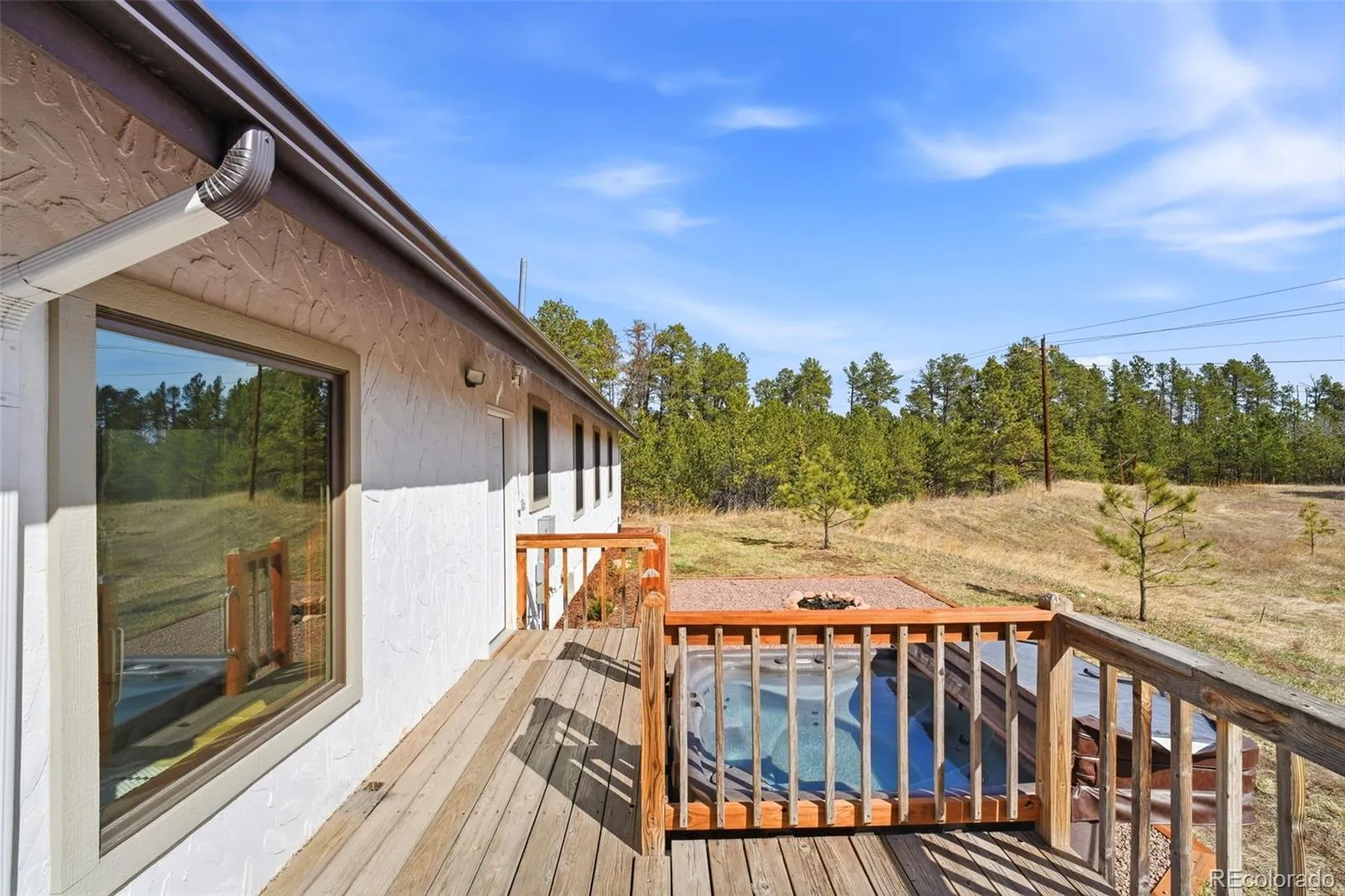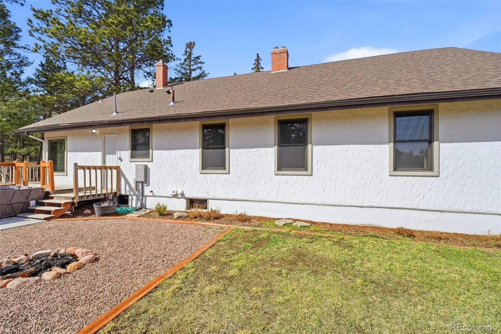 Outdoor living is just as inviting. A large deck extends from the side of the home toward the backyard, creating an ideal space for relaxing, entertaining, or enjoying the surrounding trees & meadow. The property also features a hot tub & a fire pit area perfect for quiet evenings under the stars.