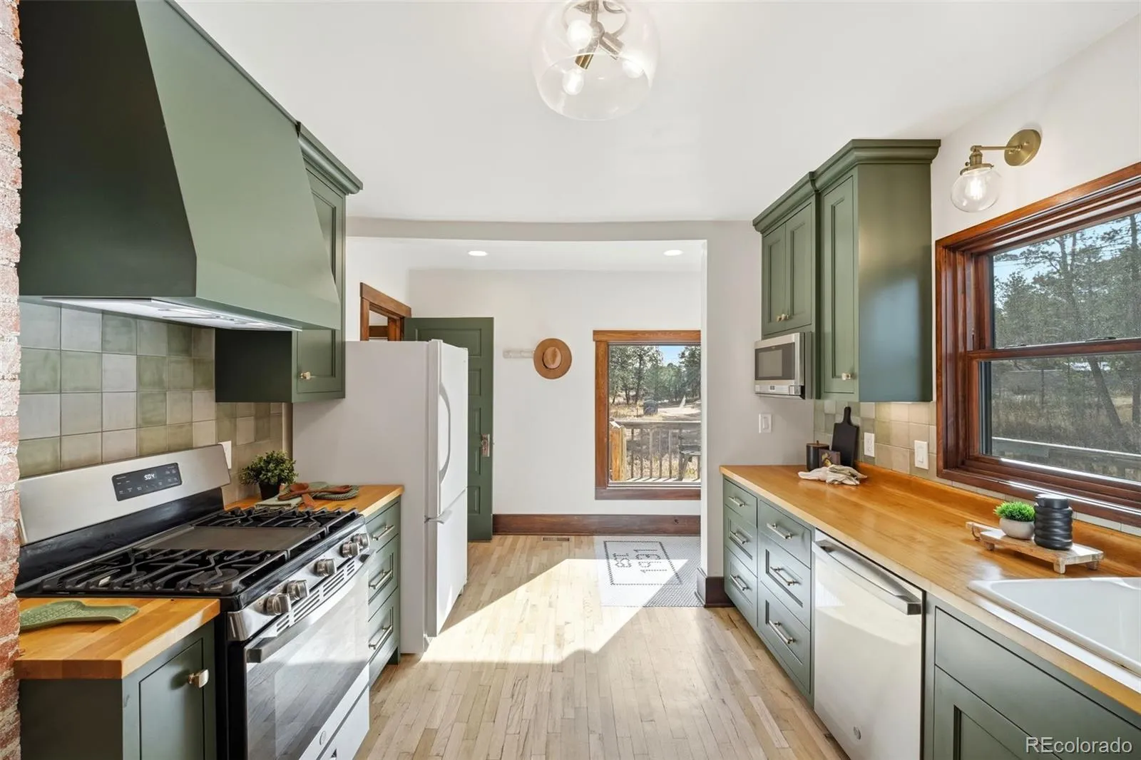 The kitchen has been carefully updated while preserving the home’s historic charm. Riverwood Mills cabinetry, a gas range, brick accents, & tile backsplash complement the original butcher block countertops & sink that have been preserved as part of the home’s history. Just off the main living space, a dedicated office features built-in wood shelving and a custom desk that makes working from home both functional and inspiring.