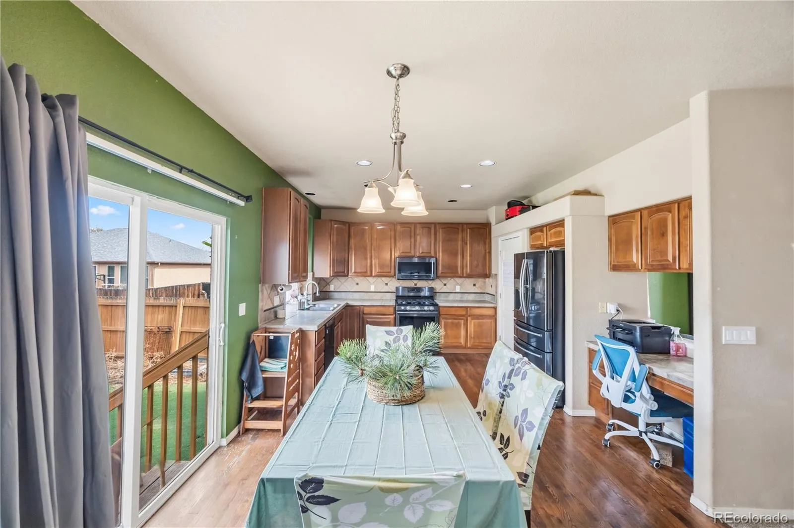Spacious and inviting, this home offers a thoughtful layout designed for both comfort and functionality. From the moment you step into the expansive formal dining area and welcoming entryway, you’ll notice the generous sense of space throughout. The open-concept kitchen is perfect for everyday living and entertaining, featuring a gas range, hardwood flooring, and ample room for casual dining. It flows seamlessly into the living room, where a cozy fireplace and abundant space create the perfect gathering area. Upstairs, you’ll find four well-sized bedrooms, including a bright and airy primary suite complete with a luxurious five-piece bath, double sinks, and a walk-in closet. The fully finished basement adds even more versatility, offering a large recreation room, an additional bedroom, and a ¾ bathroom—ideal for guests or extended living space. Step outside to enjoy a low-maintenance yard designed with turf and xeriscape landscaping, all while taking in beautiful mountain views. Conveniently located less than a mile from shopping, and close to schools, parks, and Ft. Carson, this home truly has room for everyone.
