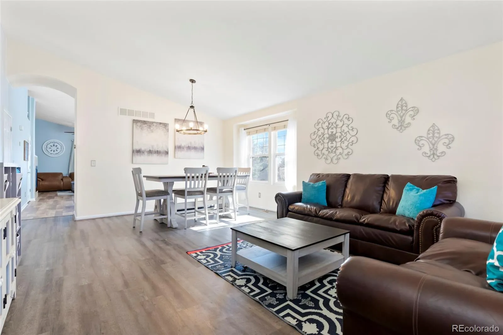 vaulted living room and dining room area, that is flooded with light. Moving through the