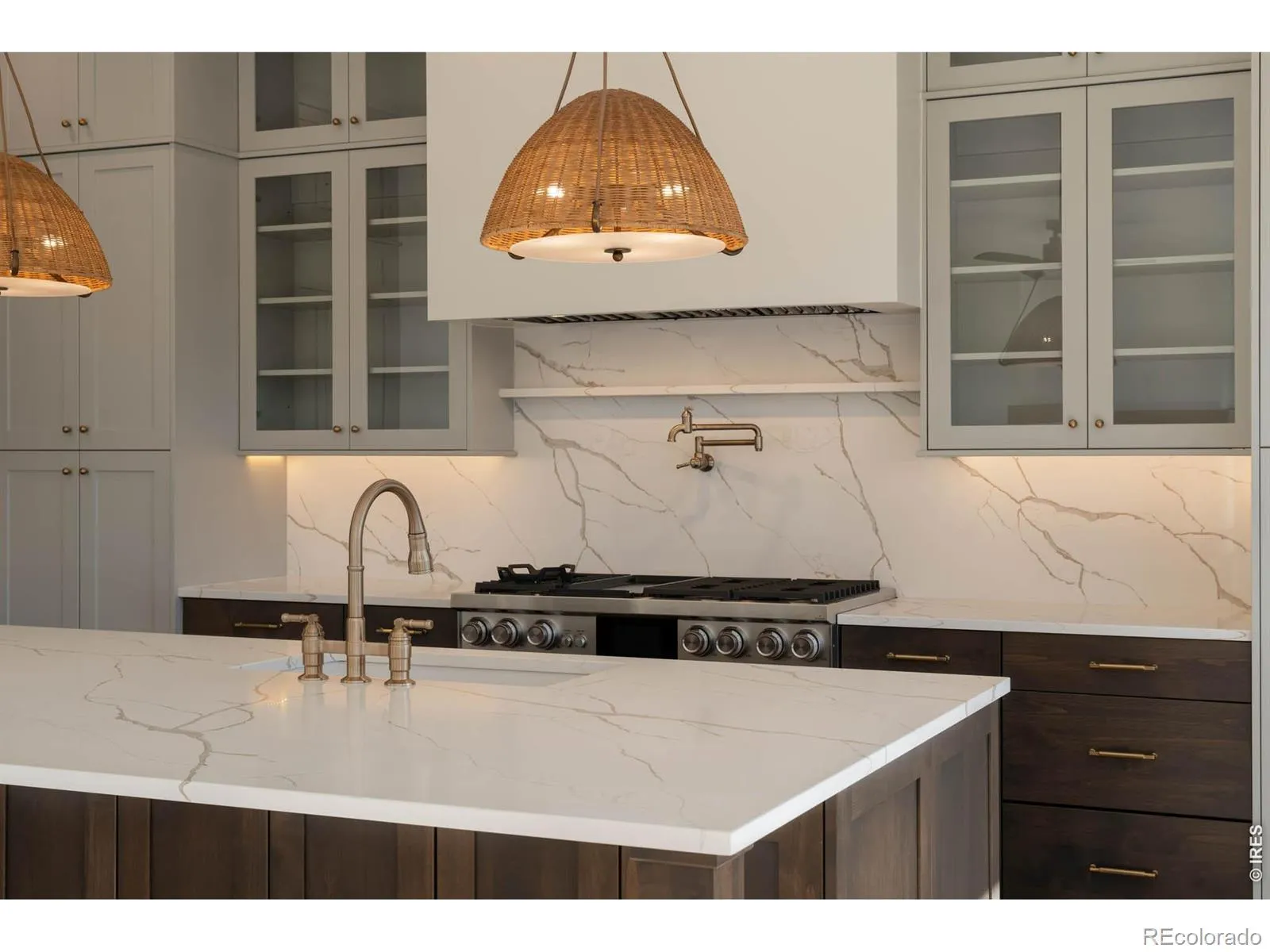 This thoughtfully designed two story home in Greenspire at Windsor Lake offers a rare main floor guest or in law suite, ideal for multigenerational living or hosting long term guests. Set on a generous 13,061 sq ft lot, the home provides plenty of space to enjoy both indoors and out, while being just a short walk to Windsor Lake and downtown Windsor for the perfect balance of quiet living and everyday convenience. You are welcomed by custom double front doors and striking curb appeal. Inside, a dedicated study near the entry creates an ideal work from home space. The private main floor guest suite includes its own ensuite bath and direct access to the covered front porch. At the center of the home is a gourmet kitchen designed for both daily living and entertaining. It features oversized Dacor appliances including a 48 inch range, a 42 inch built in paneled refrigerator, light finished Milarc cabinetry with glass uppers and open shelving, warm brass fixtures, quartz countertops, and a large contrasting island. A walk in pantry with additional cabinetry provides generous storage and prep space. The dining nook flows seamlessly into the living room with a cozy fireplace, while the covered deck just outside is perfect for morning coffee or summer barbecues. Upstairs, three bedrooms each feature their own private ensuite bath, along with a spacious loft and convenient upstairs laundry. The primary suite offers a true retreat, complete with a freestanding soaking tub, oversized walk in shower, large walk in closet, and a private balcony. The finished basement expands the living space with a large rec room, stylish wet bar, an additional bedroom with its own ensuite bath, and a flexible bonus room that can serve as a gym, playroom, or hobby space. A three car garage provides plenty of storage for vehicles and outdoor gear. Front and rear landscaping, along with full fencing, are included for an easy and stress free move in. Schedule your private tour today.