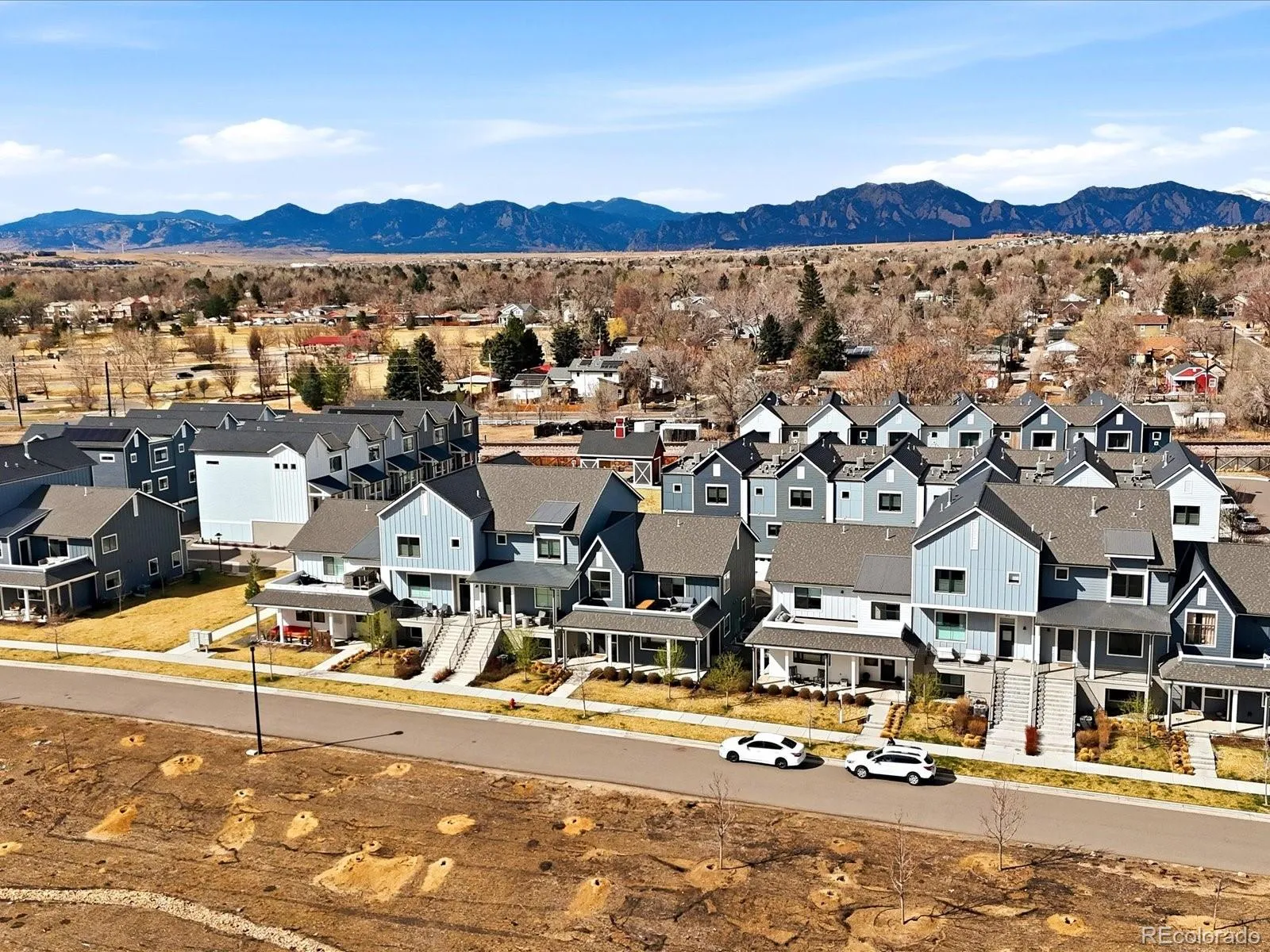 Set within the Trails at Clementine community, this exceptional townhome offers a seamless blend of convenience and Colorado lifestyle. Just moments from Louisville’s Main Street with its boutiques, dining, and energy, and surrounded by miles of trails and open space, the location balances connection and retreat. Inside, the home unfolds with intention, where natural light and thoughtful design create a warm, sophisticated atmosphere. The main level is designed for comfort and connection, featuring an open layout uniting living and kitchen spaces. A dining nook provides an inviting setting for everyday meals or casual gatherings. The kitchen is functional and refined, with a generous center island and abundant cabinetry, complemented by an oversized window that fills the space with natural light. A highly desirable main-level bedroom with a private en suite offers flexibility for guests or a home office. Upstairs, vaulted ceilings highlight the staircase, loft, and rooftop deck access. The primary suite serves as a serene retreat, with a luxurious en suite bath featuring a freestanding tub and a walk-in closet. An additional bedroom with its own en suite ensures comfort and privacy. The expansive rooftop deck offers a true extension of the home’s living space, ideal for quiet mornings or lively evenings. Whether enjoying coffee at sunrise or hosting under Colorado’s open skies, this elevated outdoor setting captures beautiful views and adds a seamless element of indoor-outdoor living. The finished basement offers versatile space for lounging, recreation, or fitness, plus a wet bar for entertaining. An additional bedroom and bath provide guest accommodations in addition to a storage room. This community enhances lifestyle with a red barn gathering space and over four acres of maintained open space. Elegant and versatile, this home combines thoughtfully crafted interiors, adaptable living spaces, and an unbeatable location, offering the ultimate Louisville lifestyle.