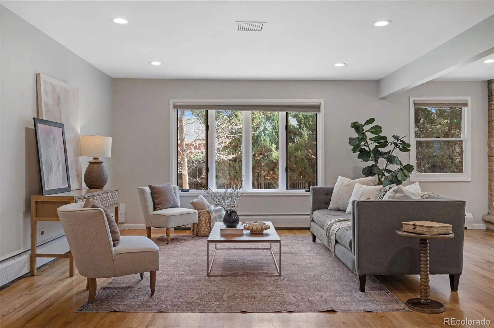 Beautifully updated & meticulously maintained, this classic Southern Hills ranch is just a stone’s throw from McWilliams (Dinosaur) Park and feeds into coveted Slavens K-8. A thoughtful recent refresh brings renewed energy to an already exceptional home. Fresh paint, updated fixtures, new hardware throughout, and a striking staircase to the basement, enhanced by a wooden railing with wrought iron balusters, makes an immediate impression. Rich hardwood floors, a statement flagstone fireplace, a charming bay window, and curated lighting establish a warm, elevated feel on the main level. Comfort meets efficiency with an integrated flush-mounted mini-split system on the main floor, delivering modern climate control without compromising aesthetics. The gourmet kitchen is a true centerpiece showcasing high-end granite countertops, Thermador and SubZero appliances, custom Crystal cabinetry, and an expansive center island; all complemented by an adjacent mudroom/laundry for seamless daily living. Three spacious main-floor bedrooms include a tranquil primary suite with generous closet space and updated spa-like bath that features an oversized walk-in shower. The finished basement expands living/entertaining possibilities with a stylish wet bar, beverage fridge, and media area — alongside an enormous guest bedroom or bonus room with a private bath & walk-in shower. The utility room & crawl space provide outstanding storage, and the garage offers a newly refinished floor, flexibility for gear, toys or an additional workspace. A quiet oversized lot, extended covered patio, and mature landscaping front and back create an inviting setting for relaxing, playing, or hosting. New soffits, fascia, and recently installed gutters w/leaf guards add function and peace of mind. An unmatched location – close to Observatory Park, Slavens Elementary, and minutes from vibrant dining and shopping in Cherry Creek, DTC, DU, Swedish Medical Center & University Hills. This is your new home!