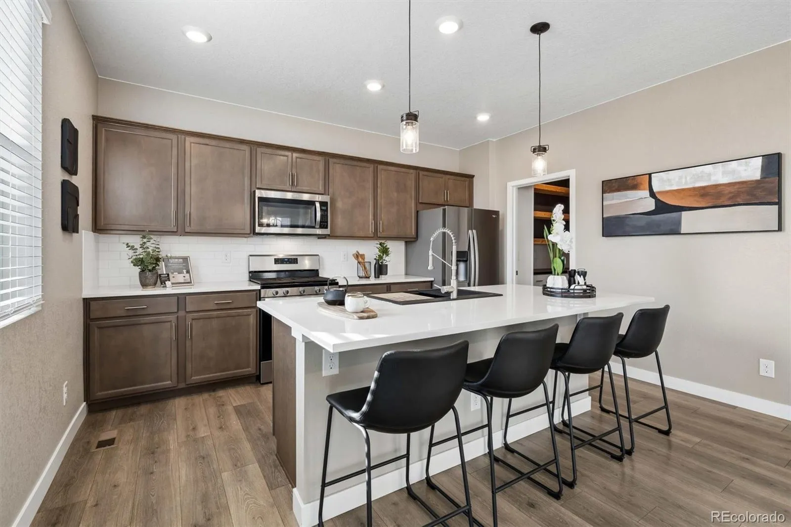 : Pantry, Quartz Counters, Kitchen Island, Ceiling Fan(s), Primary Suite