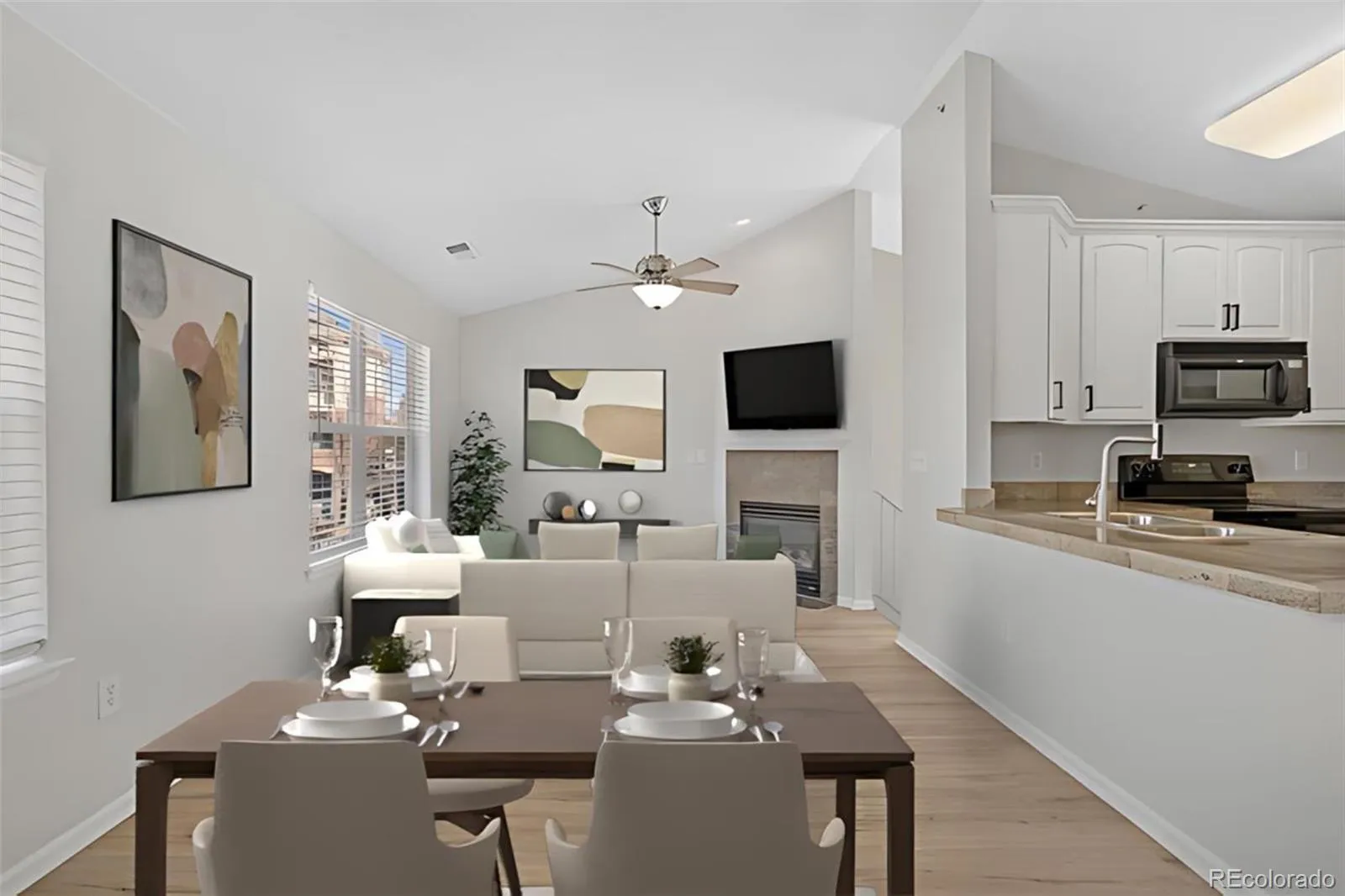 PRICE DROP! Don’t miss this rare opportunity to own a coveted end-unit, with no attached neighbors, in Town Center Terrace with a convenient attached garage! This spacious two bedroom, two bath home has been beautifully updated throughout. Updates include: new floors throughout, new paint, new kitchen updates (including new cabinet hardware, new faucet, dishwasher 2023, oven/stove 2025), new toilets, new window blinds throughout, water heater in 2019, and furnace / AC both new in 2021. The main living area boasts an open floor plan, cozy gas fireplace, vaulted ceilings, new wood laminate floors and plenty of natural light. From the living area, there is direct access to the balcony overlooking the pool! The super clean black and white kitchen shines with beautiful tile countertops, new floors, and ample wood cabinetry. The large primary suite offers a private full bath with dual sinks, custom built-ins, and a generous walk-in closet. The second bedroom is a perfect bedroom or a home office. It has a great closet and a huge slider with access to the second floor balcony overlooking the pool. The washer and dryer in the main floor laundry closet are included. Located in the highly sought-after Cherry Creek School District, this home offers easy access to the Dayton Light Rail Station (one block away!), Cherry Creek Reservoir Park (less than one mile walk), major highways, and the Denver Tech Center (DTC), making your commute a breeze. This quiet, well-maintained community includes amazing amenities such as a pool, hot tub, community clubhouse, and fitness center. Schedule your private tour today! *** RP Mortgage offering minimum down loans! 0% down available for conventional & FHA 30yr fixed mortgages. Contact Jay Wojciechowski for more info @ 303-562-5223 [email protected] ***