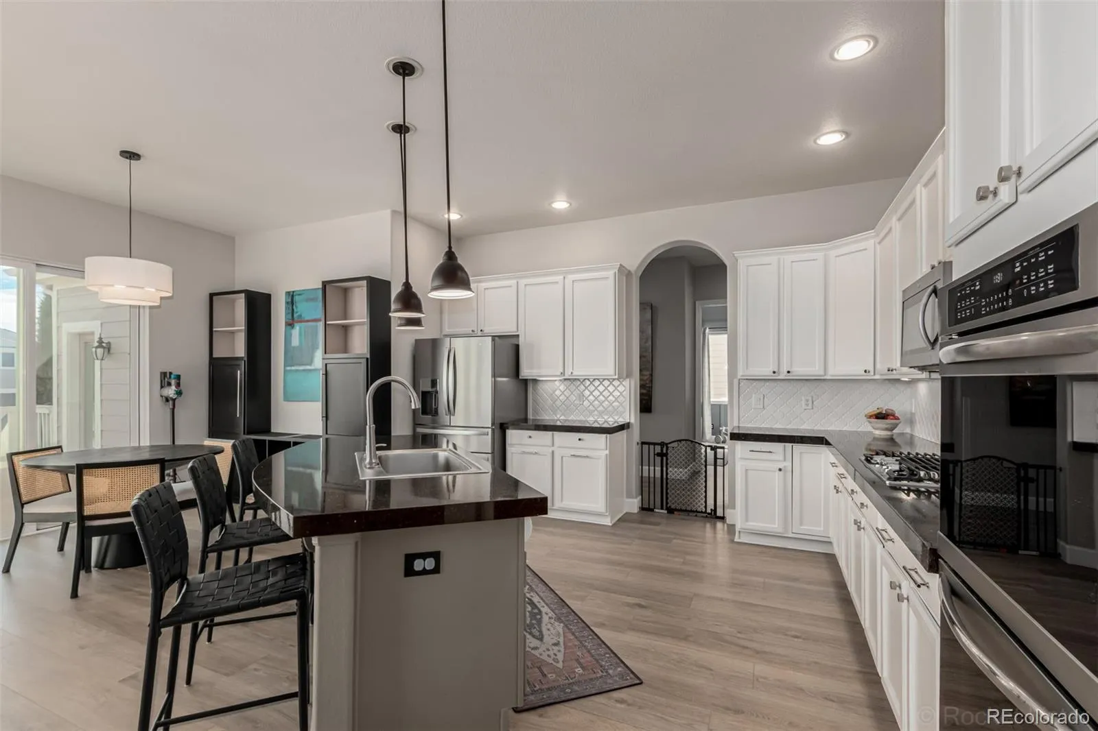 This beautiful home is perfectly positioned on the corner lot of a cul-de-sac with no neighbors behind! Charming curb appeal highlighted by stone accents & a 3-car garage. The bright & inviting interior features brand new LVP flooring throughout, thick baseboards, neutral paint & thoughtfully designed living spaces, such as a formal dining room with an electric fireplace & a living room with an additional fireplace for relaxing evenings. A spacious den + a dedicated office with French doors provide plenty of flexible space for work, hobbies, or quiet retreats! A convenient powder room adds extra functionality for guests. The gourmet kitchen impresses with granite counters, Stainless Steel appliances, popular white cabinetry, a stylish tile backsplash, & a center island for meal prep and casual dining at the breakfast bar. Luminous main floor primary bedroom has private outdoor access, a sunny bay window, & an immaculate ensuite boasting a dual-sink vanity, a freestanding tub, a large tiled shower with polished nickel shower fixtures & a generous walk-in closet. The fully fenced backyard offers a cozy deck & plenty of space for play, entertaining, or simply enjoying the peaceful surroundings. You don’t want to miss this incredible home!