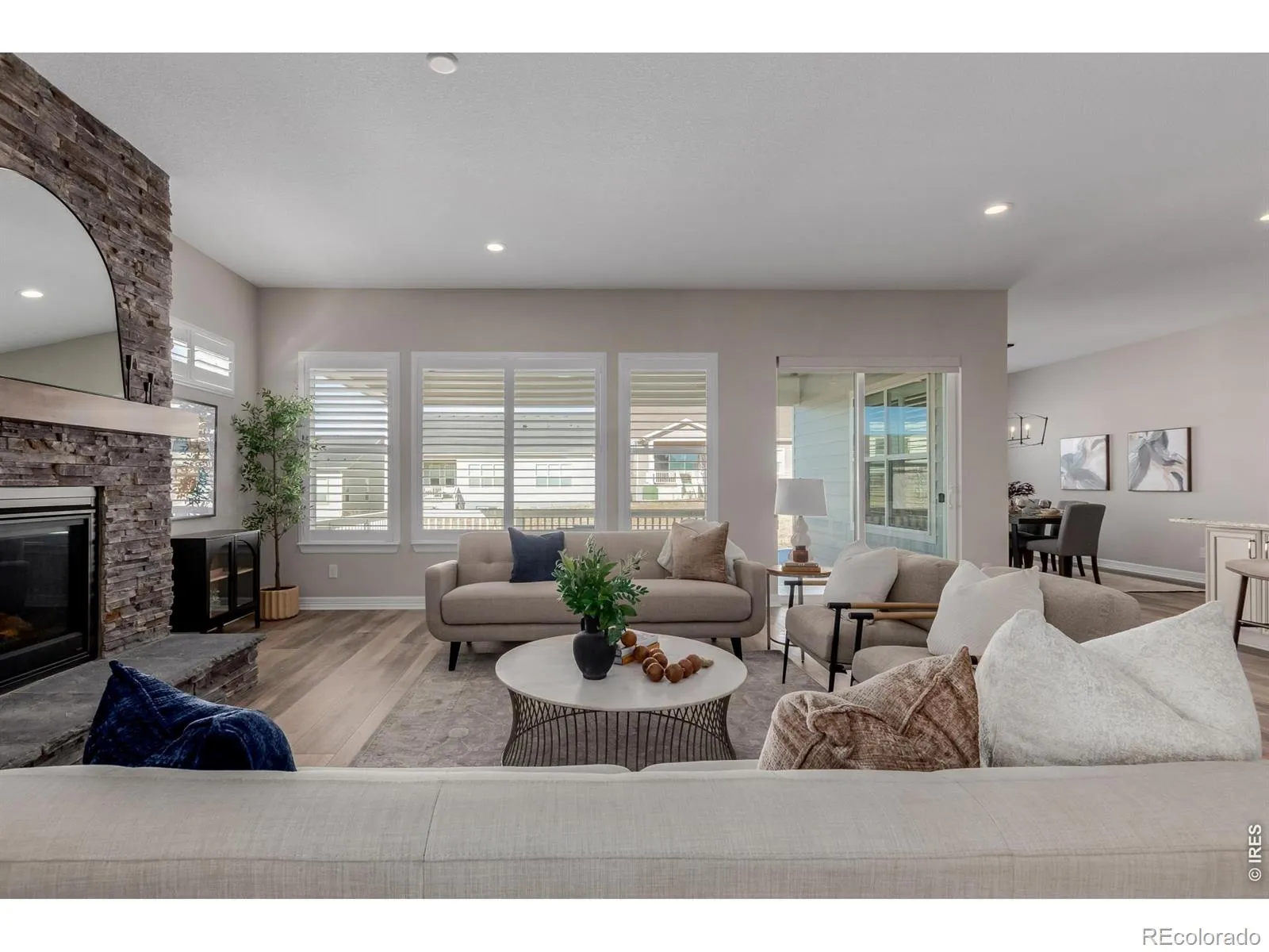 LIKE NEW, this Drake model, which is apart of the Regency 55+ community at Montaine, Boulder Collection, by Toll Bros.,comes appointed with all the finest structural upgrades and design center features: the entire backside of the home hasbeen bumped out 5′ which extends the patio, dining space, primary bedroom and also increases the kitchen island lengthto a 13′ countertop (the island now includes wrap around base cabinetry), the kitchen has been upgraded with a gourmetkitchen package featuring KitchenAide stainless steel appliances: five burner gas cooktop, convection oven, built inmicrowave and French door refrigerator, the addition of top-stacked glass cabinets above the 42″ upper cabinetry reallyaccentuates the 10′ ceilings, a gas fireplace in the center of the family room has a hearth and stacked stone to the ceilingwith mantle, the whole house has been custom fit with plantation shutter window treatments, the primary five-piece bathincludes a spa like floating tub and fully tiled shower with seamless glass, the laundry has additional cabinets with a utilitysink right off the three car garage entrance, and the entire main floor features 9″ luxury vinyl plank flooring (excludingcarpet in the bedrooms) and 8′ doors. There is so much more and too much to list! This doesn’t even include the premiumlot that faces south and backs to open space which is close to the clubhouse featuring a pool, fitness center, tennis andpickle ball courts, tons of activities and the property is down the block from the entrance to vast open space walking trails!The home has been meticulously lived in for the past two and half years by the original owner. There are limited BoulderCollection series homes left in the Regency. 467 Scrubjay Trl, for it’s improvements, for it’s location, for it’s condition, allfor it’s price is the one you want!