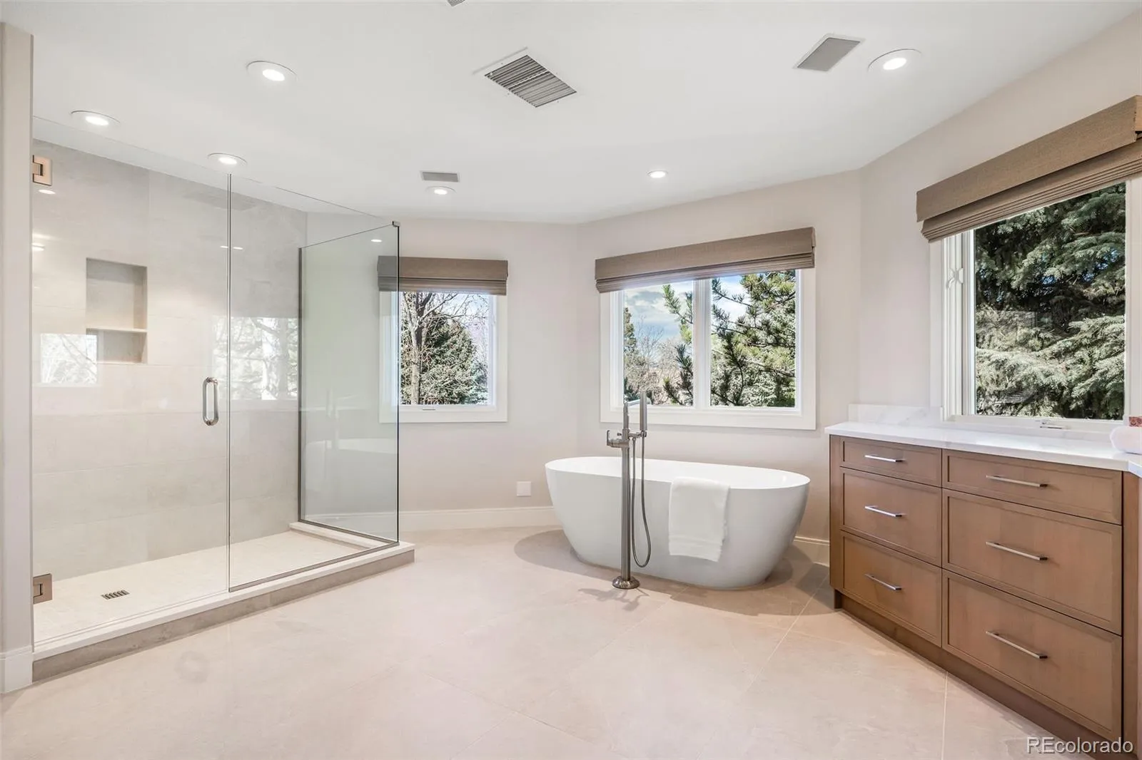 Upstairs, you’ll find four spacious en suite bedrooms all with newly installed carpet and paint, providing comfort and privacy for all. The primary suite has been completely remodeled and features a gorgeous, spa-inspired bathroom with elegant finishes and a refined aesthetic.
