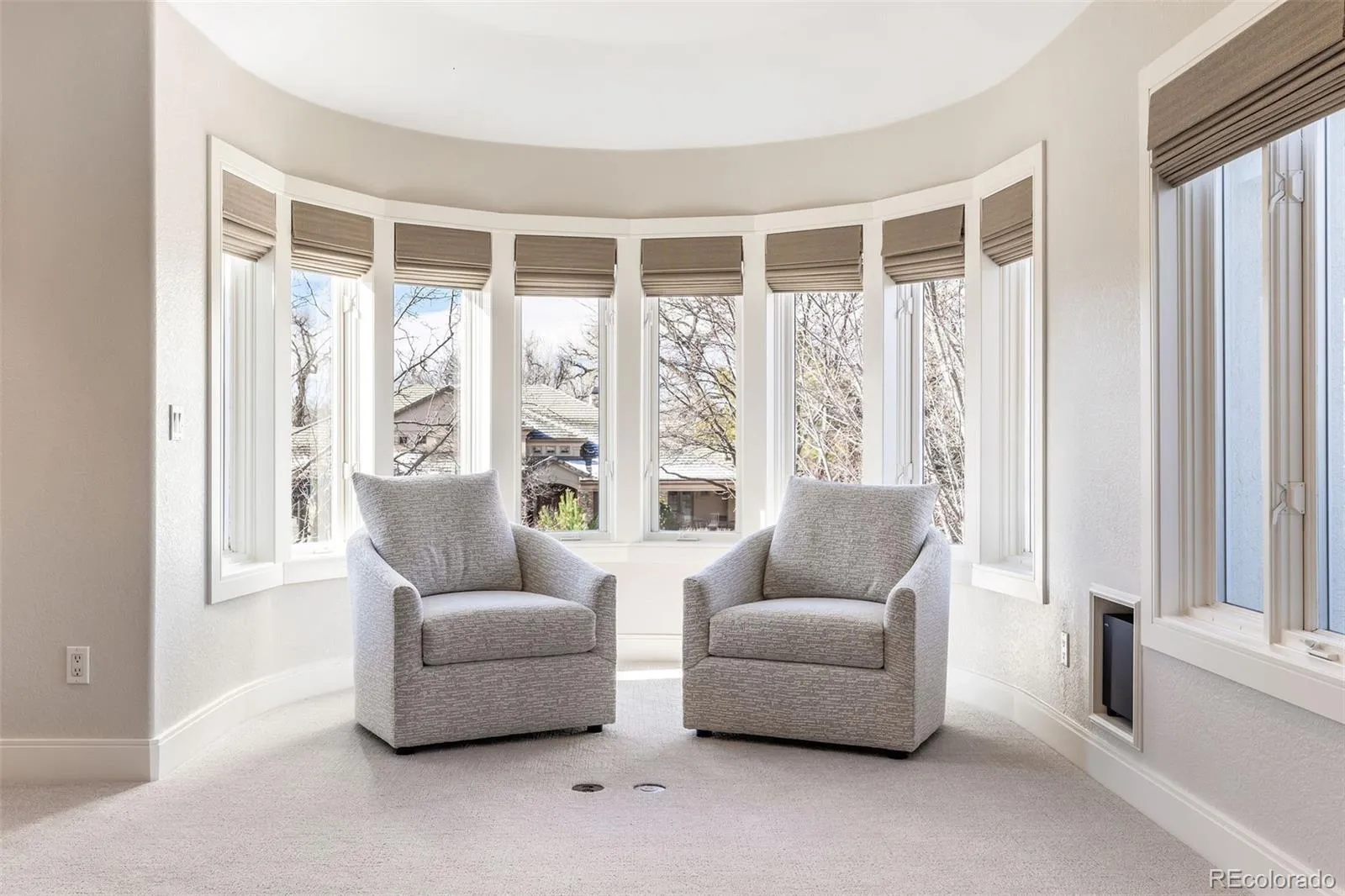 Beautifully remodeled home in The Preserve, offering a seamless blend of modern luxury and thoughtful design. Upon entry, a circular stairwell with new wool runner serves as an architectural detail, setting the tone for the home’s elegant interior. The entire main level has been reimagined, including leveling the first floor to eliminate all step-downs for a clean, open flow. The stunning new kitchen—featured in various print media—showcases high-end finishes, Taj Majal countertops, custom cabinetry, and designer details ideal for both everyday living and entertaining. A dramatic new stone fireplace extends from floor to ceiling, creating a striking focal point in the main living space. The living room features multiple sitting areas, one nestled upon a south facing bay window and the other centered around a striking stone fireplace, creating warm yet sophisticated gathering spaces. The main floor study has been handsomely updated, offering a refined and functional workspace.