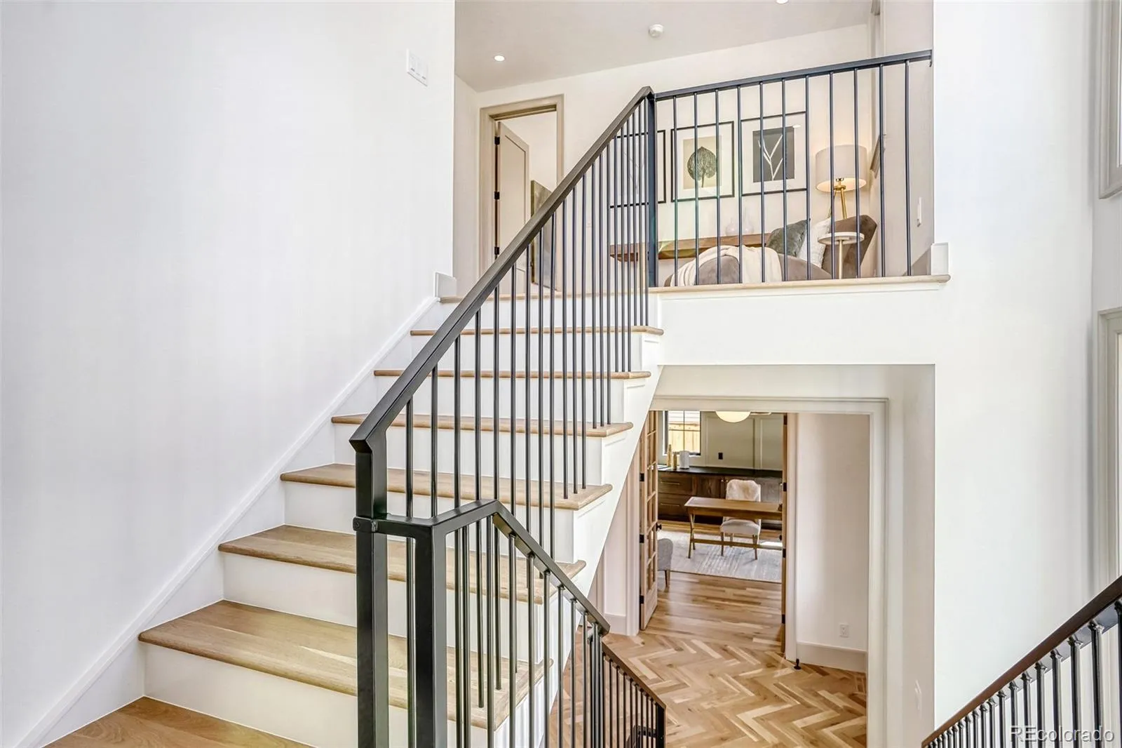 A dramatic open staircase framed by large windows and exposed brick walls fills the home with natural light, while vaulted bedroom ceilings enhance volume and architectural character upstairs. The primary suite features a cozy fireplace, 5-piece bath adorned with marble tile, and a custom closet by Closets By Design. Designer-selected finishes include Schumacher wall coverings, statement lighting, handmade Zellige tile, marble accents, shiplap ceiling details, and exposed beams. Comfort and efficiency features include dual HVAC systems with Heat Recovery Ventilation, R60 spray foam attic insulation, and a hot water recirculation system.
