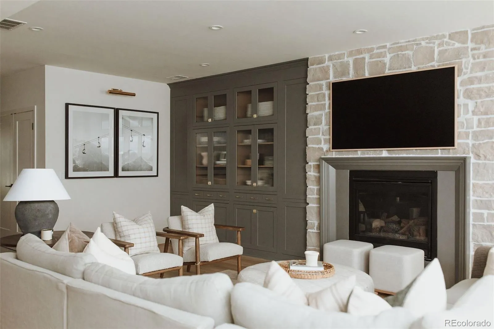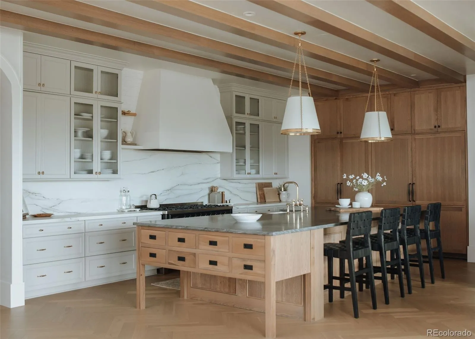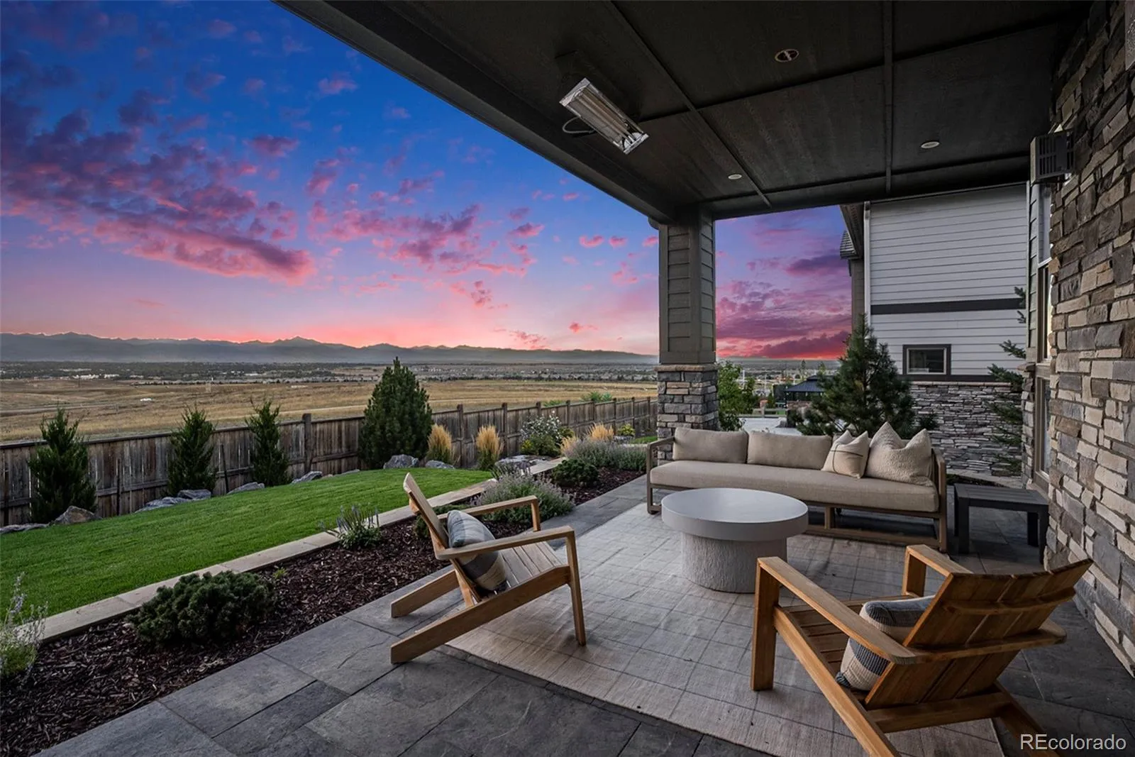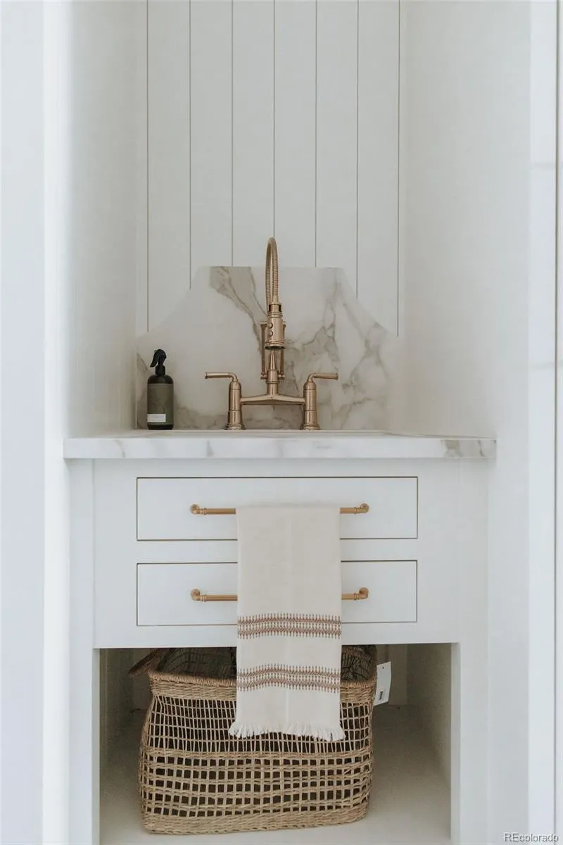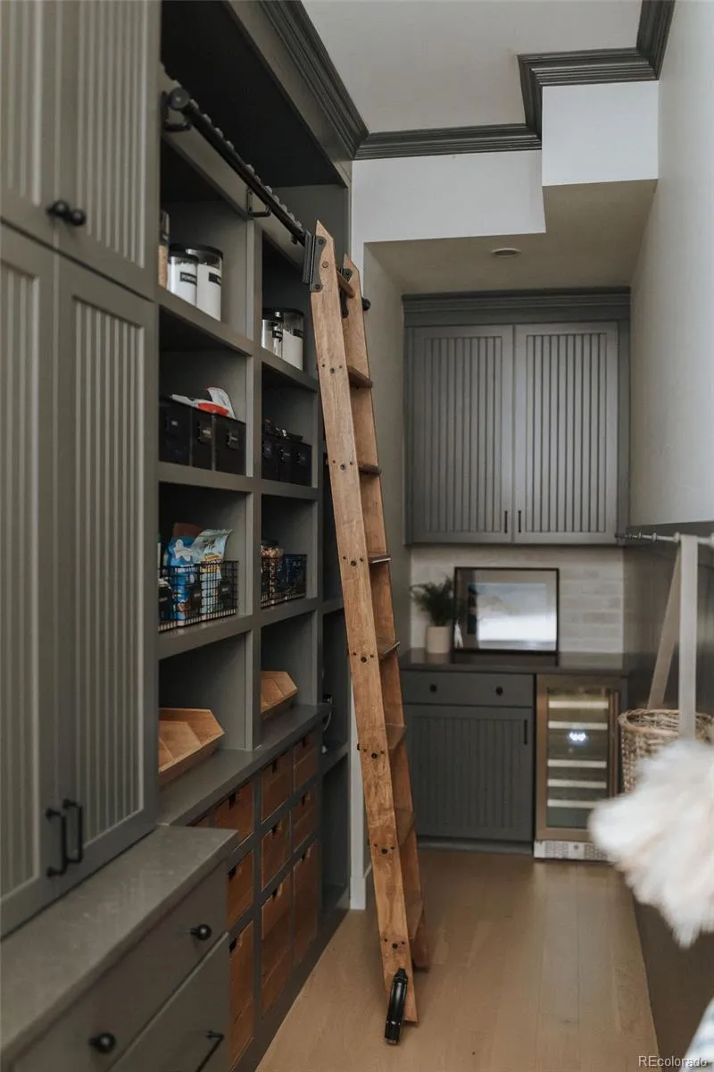 Welcome to 15385 King Ct, a stunning residence in Broomfield where professionally designed interiors, thoughtful upgrades, & panoramic mountain views come together. Every space has been elevated w/ custom interior designer finishes—from curated lighting & custom wainscoting to 10-in baseboards & skip trowel wall texture. Picture yourself hosting in the chef’s kitchen featuring paneled appliances, Ilve range, custom island w/ built-in charging drawer, appliance garage w/ disappearing doors, wet bar, & customized pantry complete w/ a coffee & tea station, 2nd dishwasher, warming drawer, wine fridge, instant hot water, & rolling ladder. The dining space showcases a custom built-in china cabinet & sliding glass wall to patio w/ views. The great room features a coffered ceiling, fireplace, & windows framing the Front Range. The study includes a stained alder ceiling, built-ins, & an included safe. Upstairs the primary suite offers its own fireplace w/ built-ins, custom designer closet, & spa-like bathroom w/ a steam shower w/ dual shower heads, rain feature, & makeup vanity w/ ample storage. The custom laundry room includes shiplap, steam closet, built-in drying rack & pull-out ironing board. Additional highlights include designer wallpaper in secondary bedrooms & a moody upper-level movie room. The finished basement includes a custom bar w/ gold detailing, built-in booth seating, fireplace, & custom built-ins. Main-level gym or 6th bedroom located off the mudroom, featuring removable flooring that reveals hardwood beneath. The mudroom includes custom lockers, while the oversized garage is heated. Enjoy outdoor living w/ custom pavers, mature landscaping, water feature, & heated patio & covered deck off the primary. Additional upgrades include paid solar, central vacuum, remote-controlled shades, whole-house water filtration, leak detection at every valve, & remote water shutoff capability—offering efficiency & peace of mind. This stunning designer home is one of a kind.