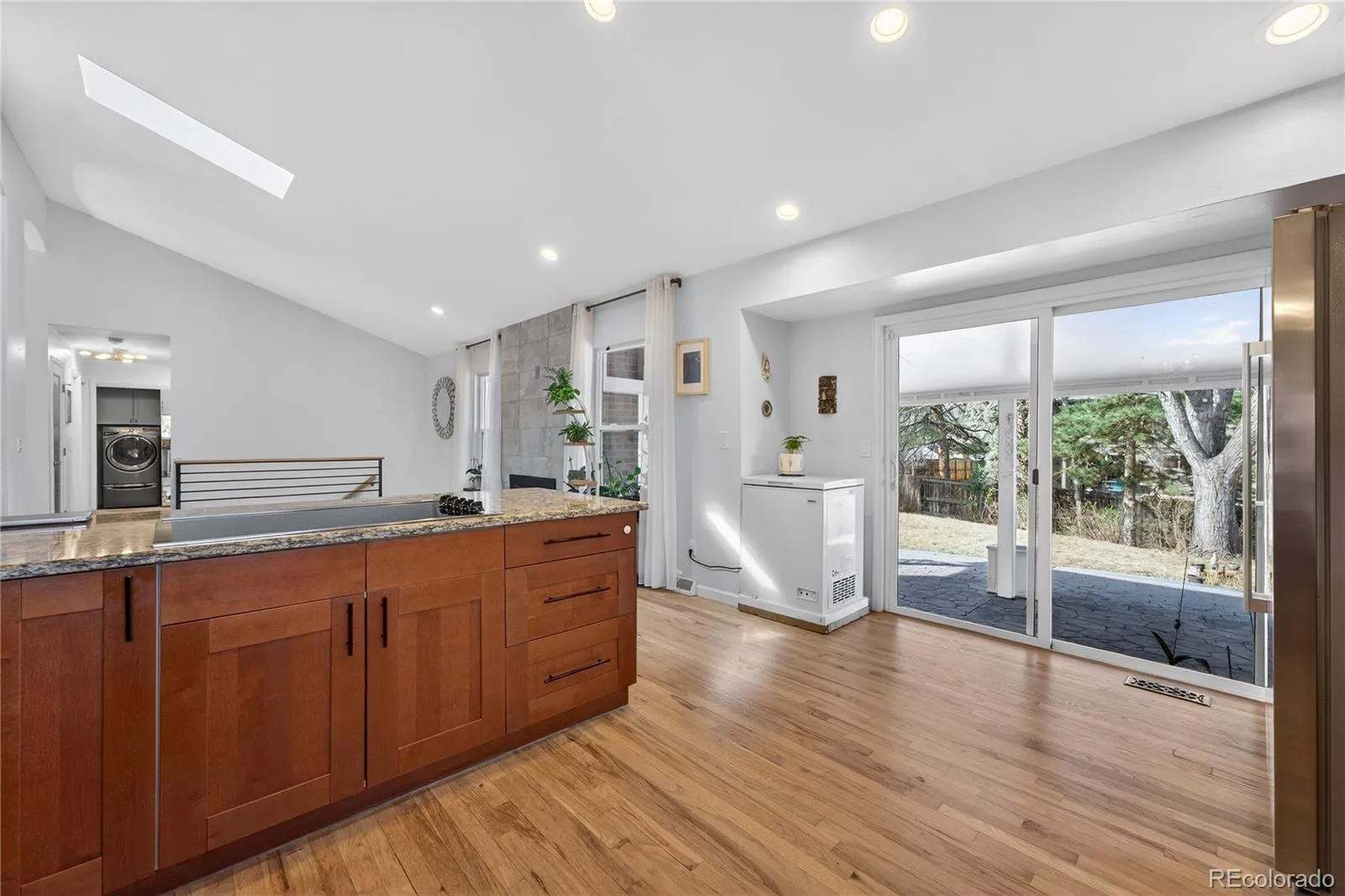 Welcome to this beautifully remodeled and rarely available ranch in the highly sought-after Cherry Creek Vista neighborhood. Ideally situated on a quiet cul-de-sac with a south-facing driveway, this home offers the ease of main-level living paired with thoughtful updates and abundant natural light throughout. Step inside to soaring vaulted ceilings and a bright, open floor plan designed for both everyday comfort and entertaining. The main-level living area features a cozy wood-burning fireplace and an expanded, open feel thanks to a thoughtfully removed wall in the family room. The kitchen is well-appointed with granite countertops, stainless steel appliances, updated finishes, and JF designer lighting throughout. The main level includes two bedrooms, highlighted by a spacious primary suite addition (2019) with a spa-like 5-piece bathroom—creating a private retreat. The former primary bedroom includes its own ensuite bath with double sinks, shower, and toilet. An additional main-level full bathroom. Main-floor laundry adds to the home’s functionality. The fully finished basement provides valuable additional living space, including a bedroom, flexible area for guests, a home office, or recreation, and a bathroom with a walk-in shower. Outside, enjoy a large yard with a stamped concrete covered patio and walkway—perfect for relaxing or entertaining. Additional updates include newer flooring, designer lighting, water heater, radon mitigation system, and an insulated garage with a new garage door. Located within the highly regarded and sought-after Cherry Creek school district, and just minutes from the Denver Tech Center, Cherry Creek State Park, and an extensive network of walking and biking trails, this home offers an exceptional combination of comfort, convenience, and community. Move-in ready and set in a neighborhood known for its great neighbors, this is an opportunity you won’t want to miss.