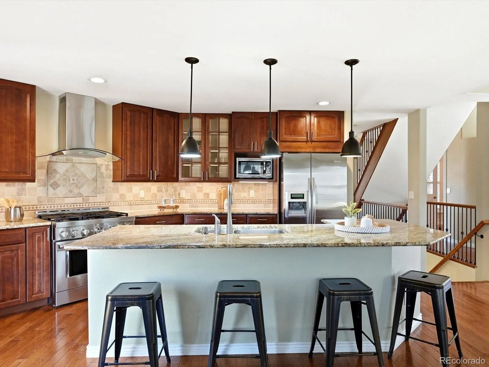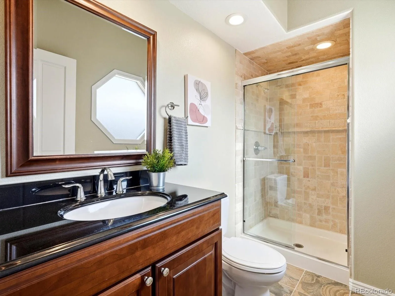 Tucked away at the end of a quiet cul-de-sac in Applewood, this beautifully maintained 4-bedroom, 4-bath home offers space, privacy, and an incredible list of features both inside and out. Backing to a privately owned drive, the setting feels exceptionally peaceful, with mature trees, thoughtful landscaping by a Colorado Master Gardener that blooms from Spring through Fall, and three separate landscaped yard areas with fencing that’s ideal for pets, play, or entertaining. There’s even a designated vegetable garden, a custom-built treehouse, RV parking pad, freestanding custom shed, and an oversized 3-car garage complete with a car lift that allows you to store a 4th car. Inside, you’ll find hardwood floors, two sizable living areas, two fireplaces, a private main-floor office, and two en-suite bedrooms, offering flexibility for guests or multi-generational living. The updated primary bathroom adds a fresh, modern touch, just off the spacious primary bedroom that overlooks the grassy field. The luxurious kitchen with granite counters, a huge gas range, and pantry will impress any home chef. The finished basement offers a rec room, a bedroom with a built-in murphy bed and matching dresser, another bedroom and 3/4 bath. Additional highlights include central air, a whole house fan, solar screens, an oversized storage room with shelving, and a newer roof. This is a rare opportunity to own a home that combines function, comfort, and privacy in one of the areas most desirable neighborhoods!