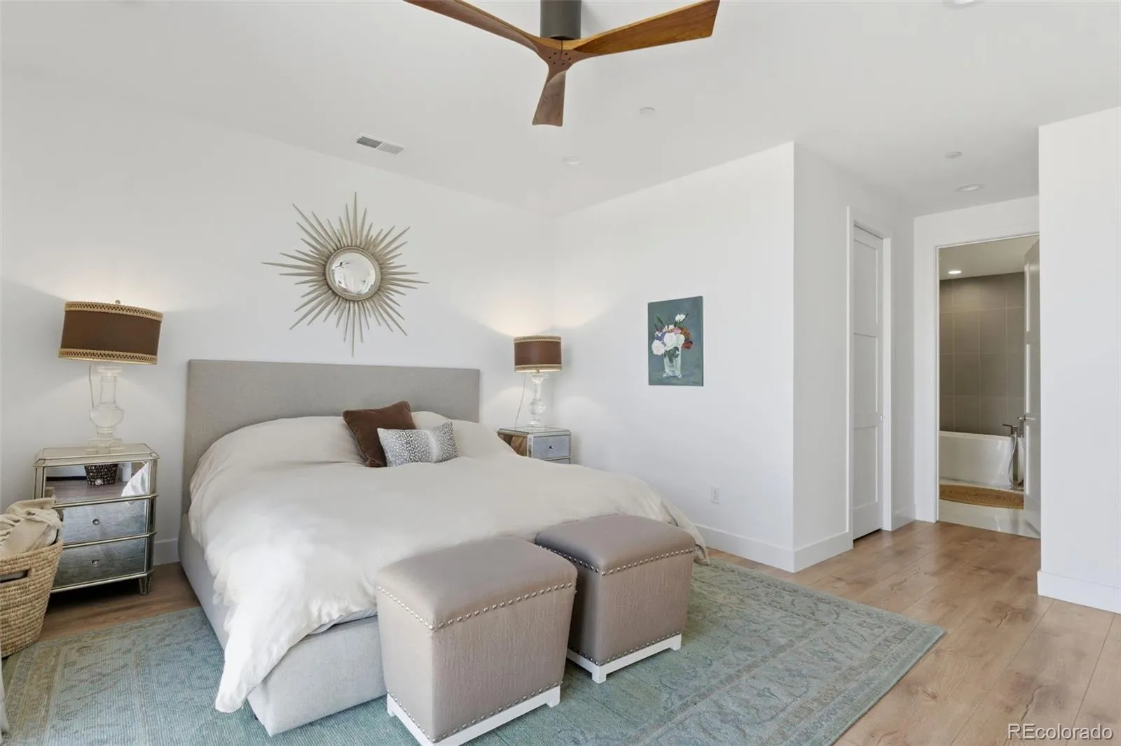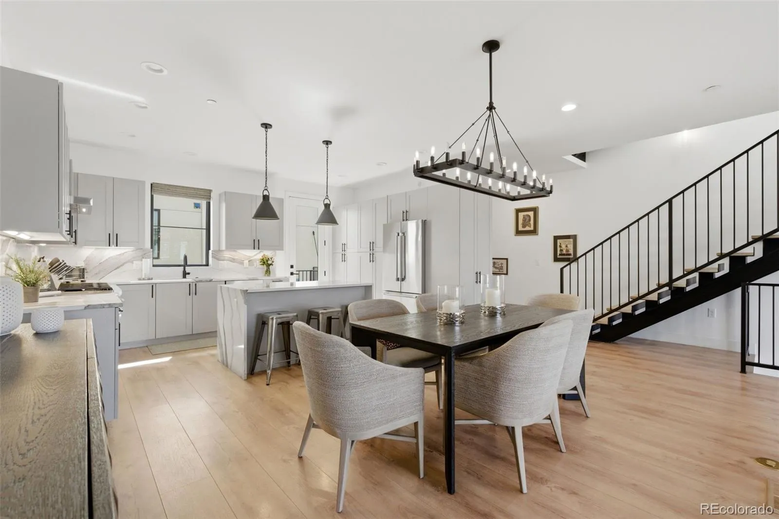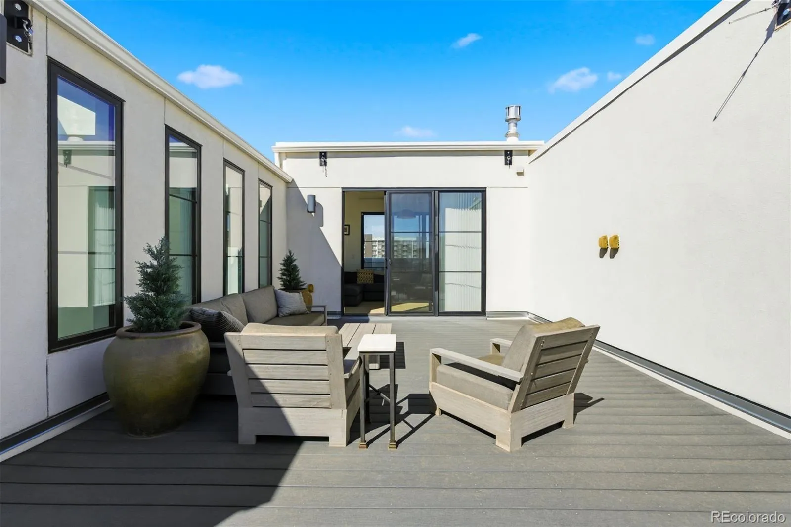 Spectacular Urban Row Home Located in One of Denver’s Hottest Neighborhoods! * Open Floor plan Drenched in Natural Light * Cook’s Kitchen with Inviting Center Island, Beautiful Quartz Countertops, Stainless Bosch and Thermador Appliances, Custom Cabinets and Pendant Lighting * Luxury Primary Suite with Spa Inspired Bathroom & Two Walk-in Closets * Both Secondary Bedrooms Offer En Suite Bathrooms * Bonus Loft Area Thoughtfully Connected to a Rooftop Outdoor Terrace on the Third Level – Perfect for Entertaining * Designer Finishes Throughout – Wide Plank Hardwood Floors, Sleek and Modern Open Riser Staircase w/ Iron Railings, Floor to Ceiling Tile Fireplace Surround, Custom Window Coverings and Light Fixtures * Secure Community with Private, Gated Access * 9th and Co. Redevelopment Offers Unparelleled Walkability – Short Stroll to Many Popular Restaurants, Boutique Shops, Trader Joes, AMC Movie Theatre, Community Dog Park, Padel Court. Close proximity to Rose Medical Center and National Jewish Hospital.