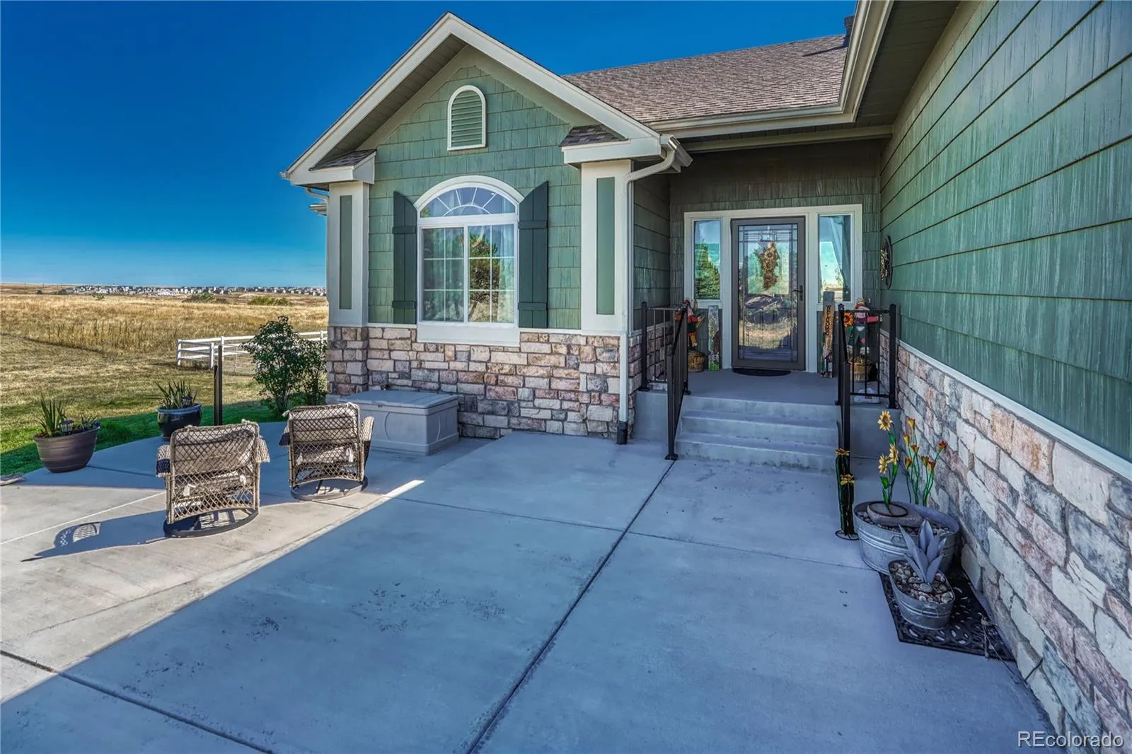 Wide open skies, usable acreage, and the flexibility to truly live the Colorado lifestyle on 5 private acres in Parker with convenient access to town. This easy living ranch floor plan features a finished walkout basement, 5 bedrooms, 3 bathrooms, 3 car garage, bonus room, and a 20×30 insulated shop with 220 electric for future EV charging. Major 2025 improvements include new roof, exterior paint, several new windows, and a new garage door. KITCHEN flows effortlessly into the family room and features abundant prep space, pantry, stainless steel appliances, double oven, and an eat-in bay window area perfect for morning coffee with acreage views. FAMILY ROOM anchors the home with a gas fireplace and easy connection to outdoor living. PRIVATE PRIMARY SUITE showcases vaulted ceilings and an ensuite bath with dual sinks, soaking tub, and frameless glass shower. Two additional main floor bedrooms share a nearby full bath. BONUS ROOM over the garage offers valuable flex space for a quiet office, creative studio, or guest retreat. FINISHED WALKOUT BASEMENT provides two spacious bedrooms, adjacent full bathroom, large storage room, and excellent potential for private in-law quarters, multigenerational living, or extended stays. Step outside to professionally landscaped grounds with mature trees, new fencing, expansive deck, and oversized patio designed for entertaining, relaxing, and enjoying the peaceful setting. HOME EXTRAS include west facing driveway for snow melt, concrete driveway, dog run, tons of storage, low HOA dues, low Elbert County taxes, and yes, chickens are permitted!