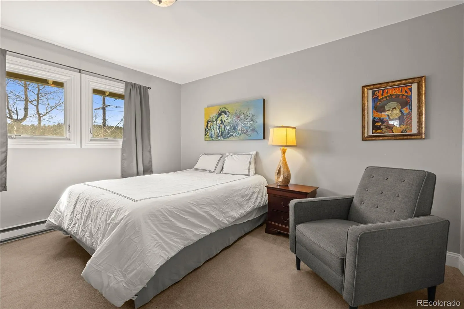 Two sizable bedrooms and a full bath sit on the main level, along with a dedicated laundry room. Upstairs, the lofted primary suite is its own retreat. Skylights bring light in from above and on a clear night, an invitation to admire the sky. Walk-in shower, double sinks, and a genuinely large walk-in closet. Real separation from the rest of the home.