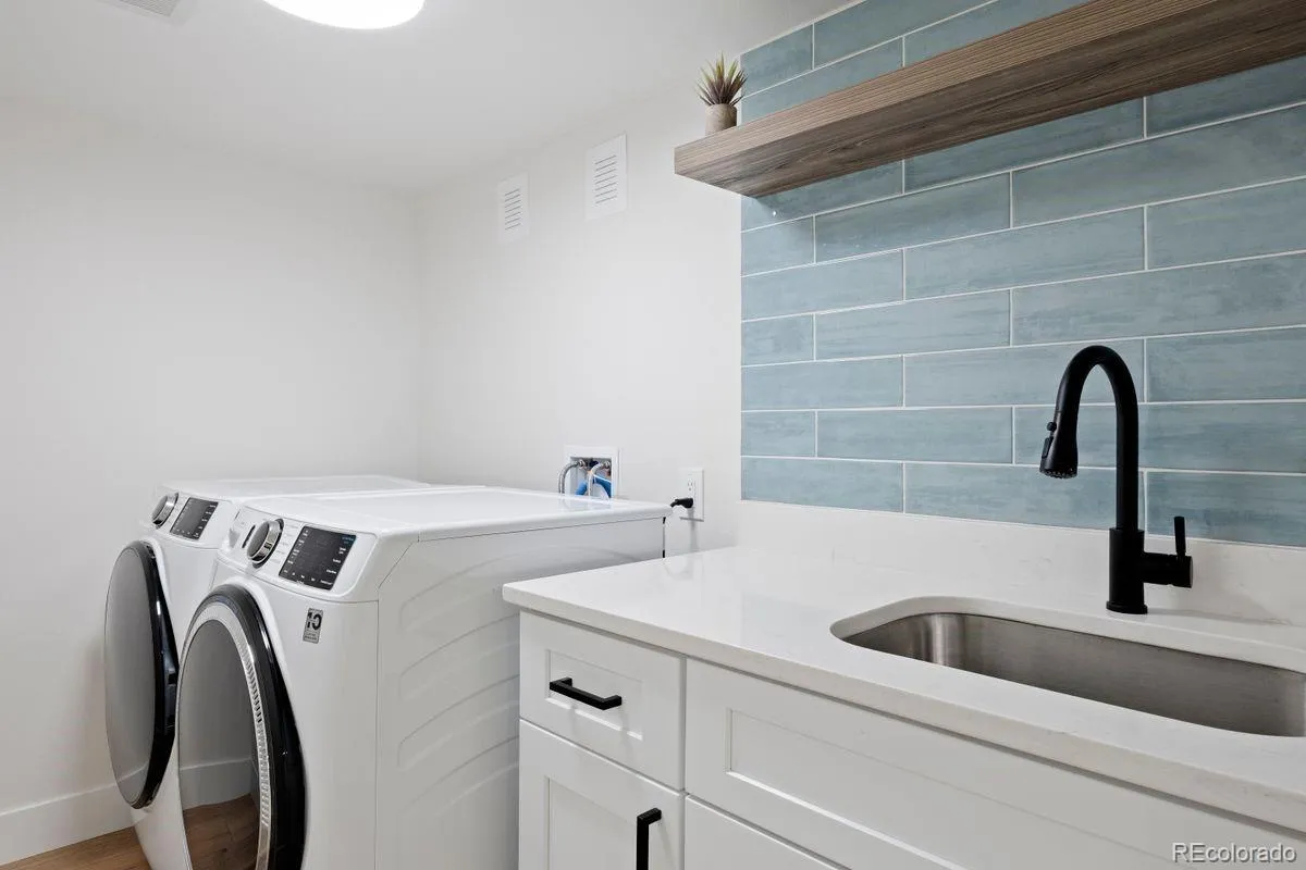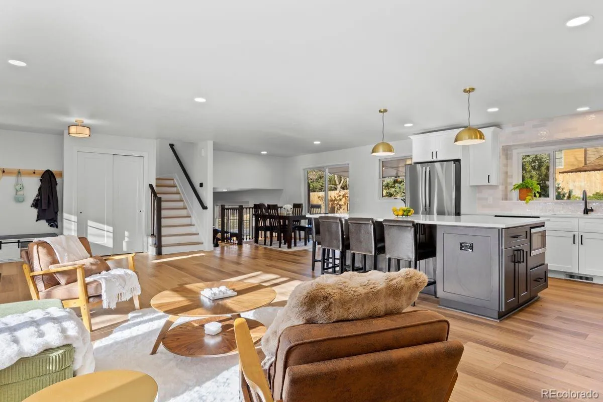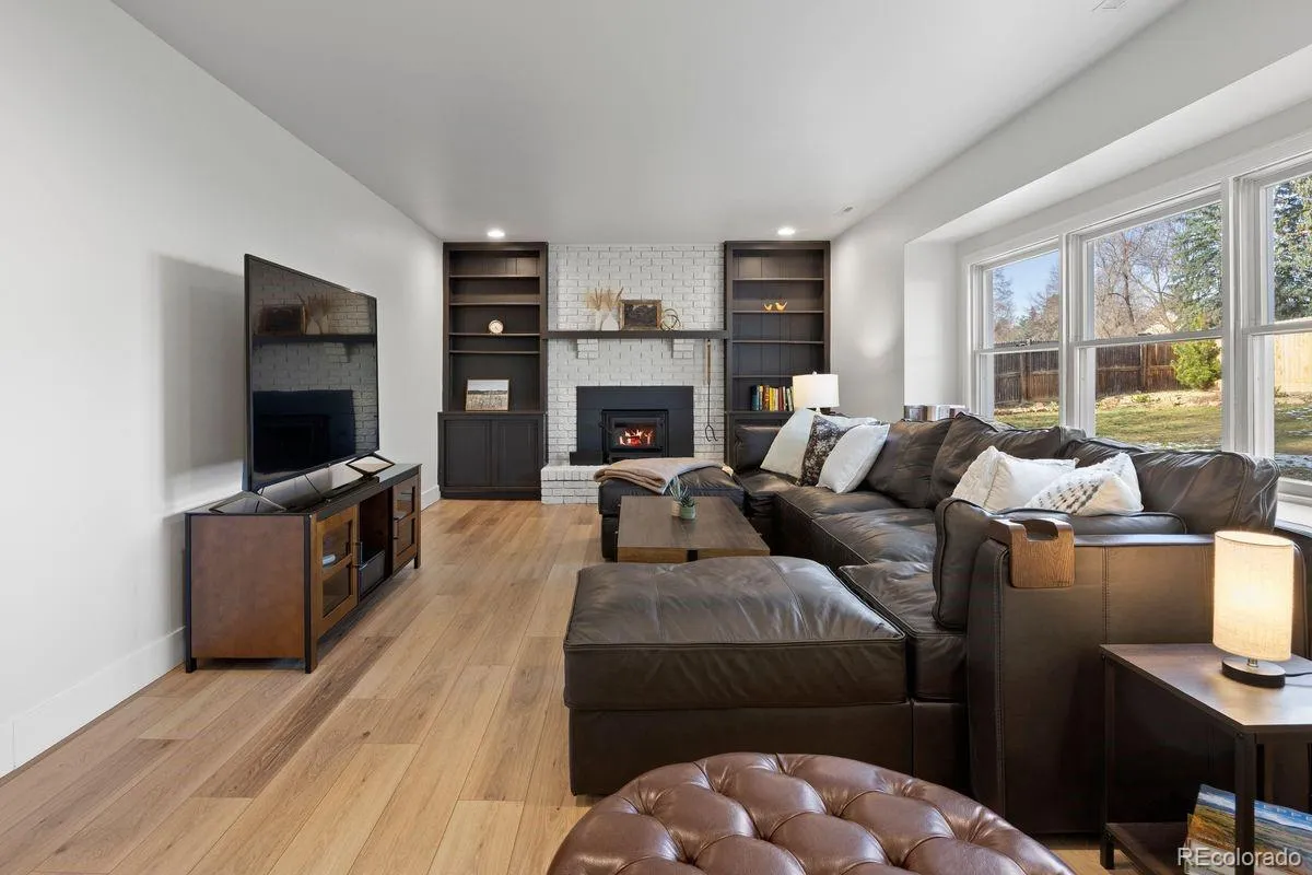 Tucked at the end of a quiet cul-de-sac in Orchard Gate (within the prestigious Cherry Creek School District), this home offers thoughtful updates, functional design, and move-in-ready peace of mind—just minutes from Cherry Creek State Park, DTC, and I-25. Inside, natural light pours through oversized windows, highlighting the updated interior with 5½-inch baseboards, modern lighting, and bold designer finishes throughout. The kitchen is bright and open with two-tone cabinetry, stainless appliances, open shelving, and a large island with waterfall edge and seating for five. A bay window and direct access to the covered patio create easy indoor/outdoor living. The lower-level living space is cozy and elevated, featuring a new EPA-compliant wood-burning stove, brick mantle, built-ins, and large windows overlooking a private, tree-filled yard. A custom mud area adds functionality, while updated bathrooms include quartz countertops, undermount sinks, and matte black fixtures. Upstairs, the primary suite offers a walk-in closet and spa-like bathroom with dual sinks, frameless glass shower, built-in bench, and sleek tile finishes. Additional bedrooms provide flexibility for guests or work-from-home needs, complete with newer carpet and thoughtful storage. The finished basement expands versatility with a rec space, conforming bedroom, full bathroom, and standout laundry room with designer tile, quartz counters, sink, and nearly new GE Energy Star washer and dryer (2025). Major systems are also new, including a new furnace and A/C (2025), offering comfort and long-term value. The fully fenced lot features mature trees, a covered patio, storage shed, and new fencing. An extra-wide driveway leads to an extended three-car garage with built-in shelving and backyard access. The west-facing orientation offers faster snow melt in winter—a true Colorado bonus. Polished, updated, and truly turnkey—this is a home where the big-ticket items are already done and life feels effortless.