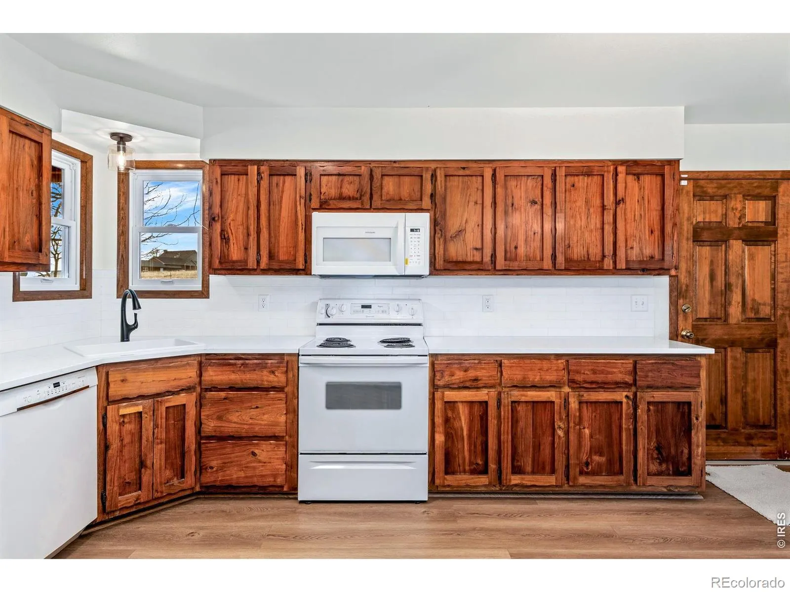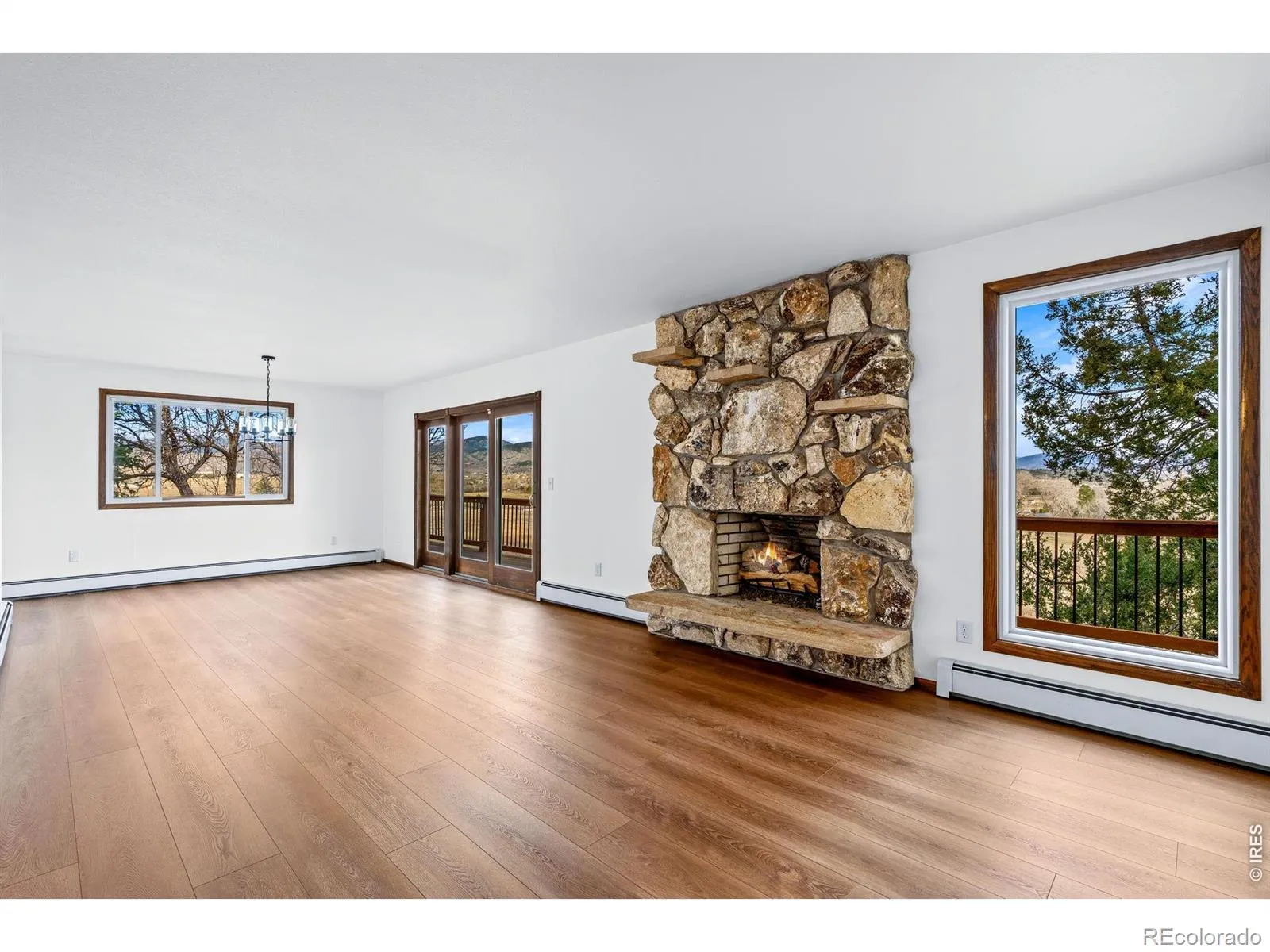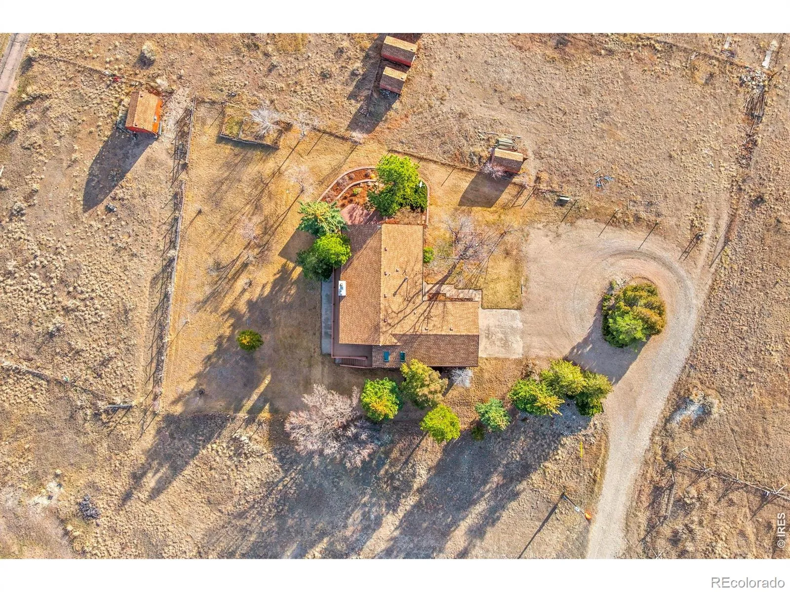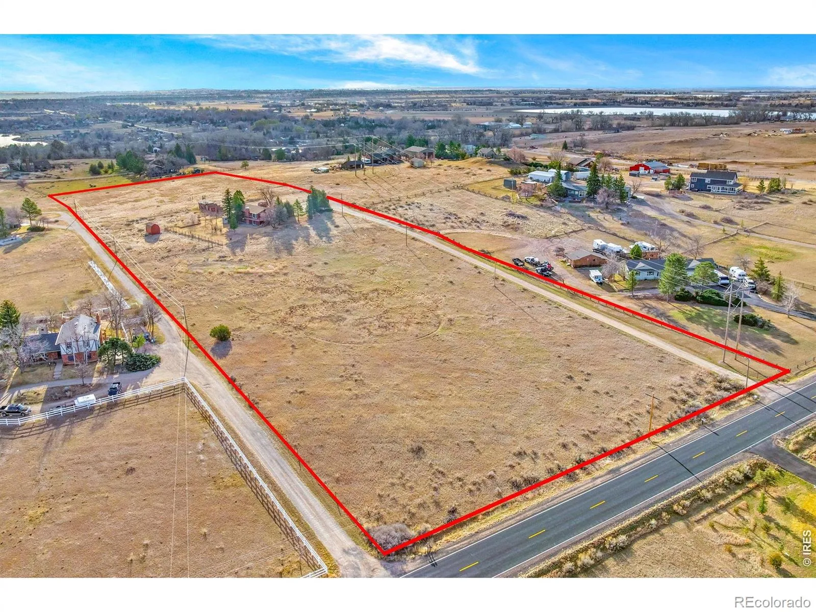 Set on nearly ten acres, this custom brick ranch frames the Foothills and Devils Backbone as your everyday backdrop, creating a setting that feels private, peaceful, and incredibly scenic from every angle of the property. Bright, well-defined living zones give this home a natural flow while still offering a sense of separation where it counts, making each space feel purposeful, comfortable, and easy to use day in and day out. The spacious living and dining area is anchored by a striking stone fireplace, creating a warm focal point, while sliding door access to the wraparound deck keeps the connection to the outdoors front and center. The kitchen offers ample prep space, generous storage, and room to add a breakfast nook or rolling island, all while flowing seamlessly into the sunroom for added light and versatility. Just off the kitchen, this light-filled space creates the perfect spot to relax, recharge, or enjoy the surrounding views in a more sheltered, year-round setting. Two main-level bedrooms each feature dual closets, while the primary suite includes its own ensuite bathroom for added convenience. Downstairs, the massive walkout basement offers endless room for recreation, hobbies, or additional living space, complete with a second brick fireplace and two more bedrooms that add flexibility for hobbies, guests, or multi-generational living. The wraparound deck captures sweeping mountain and acreage views, while the concrete patio creates a dedicated space for lounging, entertaining, or simply enjoying the quiet surroundings. The property is also set up for equestrian use or other outdoor pursuits with a loafing shed and pasture already in place, giving you the freedom to make the most of the land. Just minutes from Boedecker Lake for even more outdoor recreation, with easy access to shopping and dining.