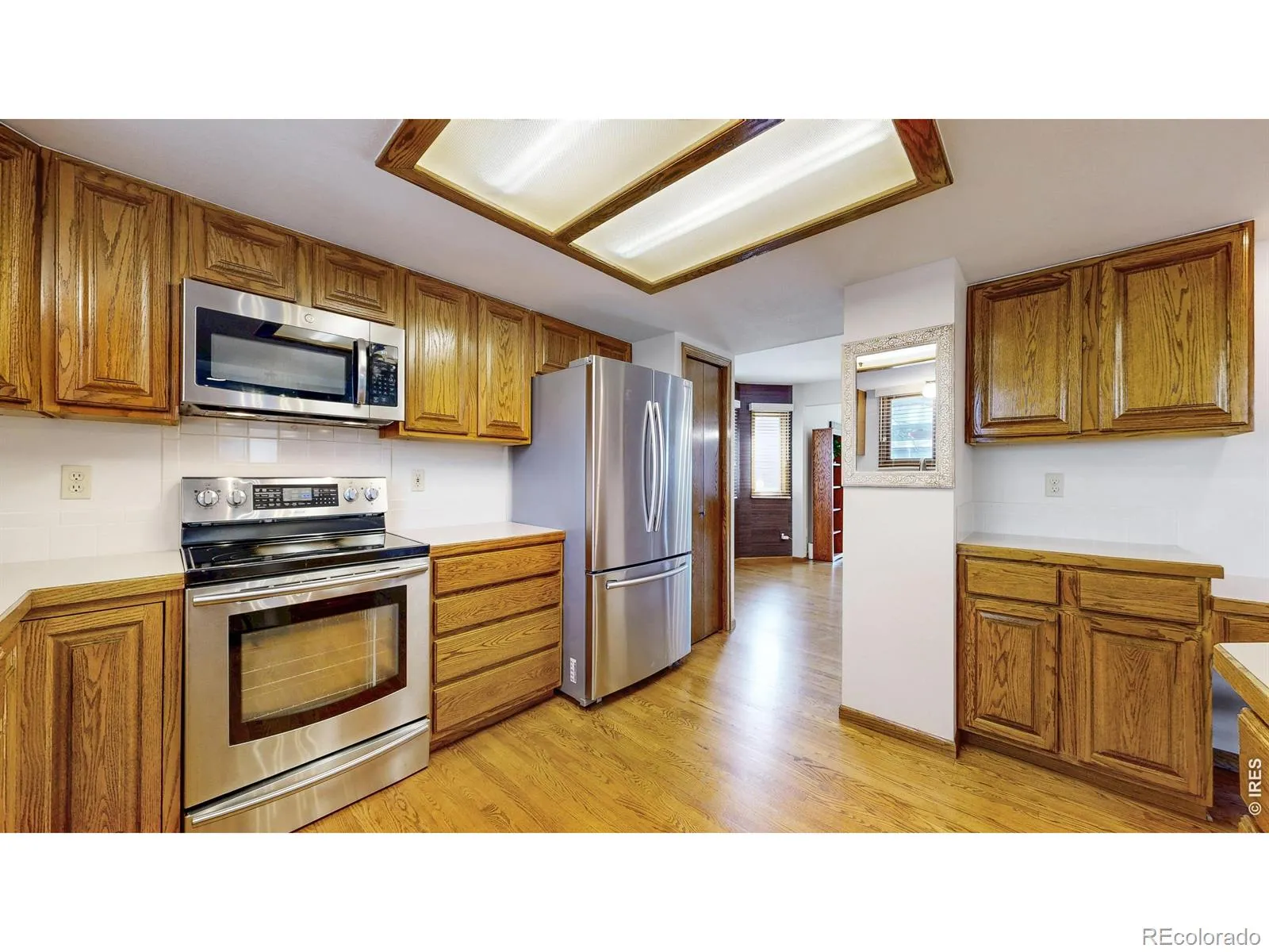 Welcome home to Golden Meadows. Located centrally in Fort Collins, this 2 story home features 5 bedrooms, an office, living room, dining room, and large rec room. Walk up to the front patio which features ample space for seating and a pull down sunshade so you can enjoy the space any time of day. Inside you’re greeted with a built in bench that also provides additional storage, and a large, bright living room and dining room. The kitchen, with *2* pantries, flows into another dining area and family room with a gas fireplace and vaulted ceiling. Upstairs, the primary bedroom is spacious and features an attached 5 piece bath and walk in closet. Upstairs there are 3 more bedrooms, spacious enough for any use, office, workout rooms, game room, etc. In the basement you have another large living space, perfect for watching movie, game night, or just relaxing. You have a quiet office area with extra storage and another oversized bedroom with a walk in closet. The backyard has been landscaped to make it the perfect retreat with an extended patio, large trees for privacy and garden beds that are perfect for your veggies or beautiful flowers. Enjoy beautiful upgrades and unique touches throughout the home like the beautiful wallpaper in the living and dining room and the custom paneling on the ceiling in the family room and the primary bedroom. This home has so much to offer, stop by and see what makes it perfect for you!