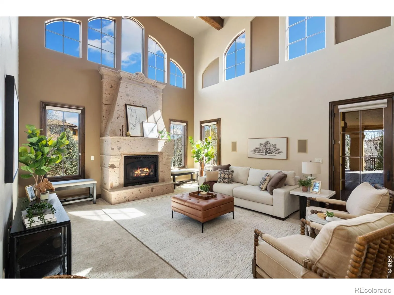 Inspired by Mediterranean coastal architecture, this custom estate by Brannen Design & Construction is a rare Fort Collins offering, set on a private 0.51-acre walkout lot. From the gated paver courtyard to the 9′ arched entry, the arrival experience sets a tone of timeless elegance and intentional design. Inside, a soaring 20′ marble foyer framed by Cantera stone pillars and a sweeping curved staircase creates an unforgettable first impression. The great room stuns with a 20′ wood-beamed ceiling, built-in sound, and statement Cantera fireplace-designed for both grand entertaining and intimate evenings at home. Rich hickory floors, custom maple cabinetry, and knotty alder doors carry warmth and craftsmanship throughout. The chef’s kitchen is built for connection and performance, featuring a massive island, Thermador appliances, double ovens, gas cooktop with grill, dual sinks, two dishwashers, and a walk-in pantry. A private main-floor casita offers true flexibility for multi-generational living or long-term guests, complete with its own entrance, vaulted ceiling, coffee station, and workspace. The dedicated office delivers a refined work-from-home environment with extensive built-ins, while dual laundry rooms-conveniently located on both the main level and upper floor-add ease to everyday living. Upstairs, the owner’s retreat lives like a private sanctuary, complete with fireplace, Romeo & Juliet balcony with Horsetooth mountain views, beverage station, and a versatile bonus space for a gym, studio, or quiet escape. The spa-inspired bath features marble finishes, a soaking tub, oversized shower, and dual walk-in closets. Outdoor living is equally compelling, with mature landscaping, fruit trees, garden beds, a covered deck, and expansive backyard designed for effortless alfresco gatherings. A 3.5-car garage with epoxy flooring and Tesla solar system complete this exceptional residence, where design, function, and lifestyle converge.