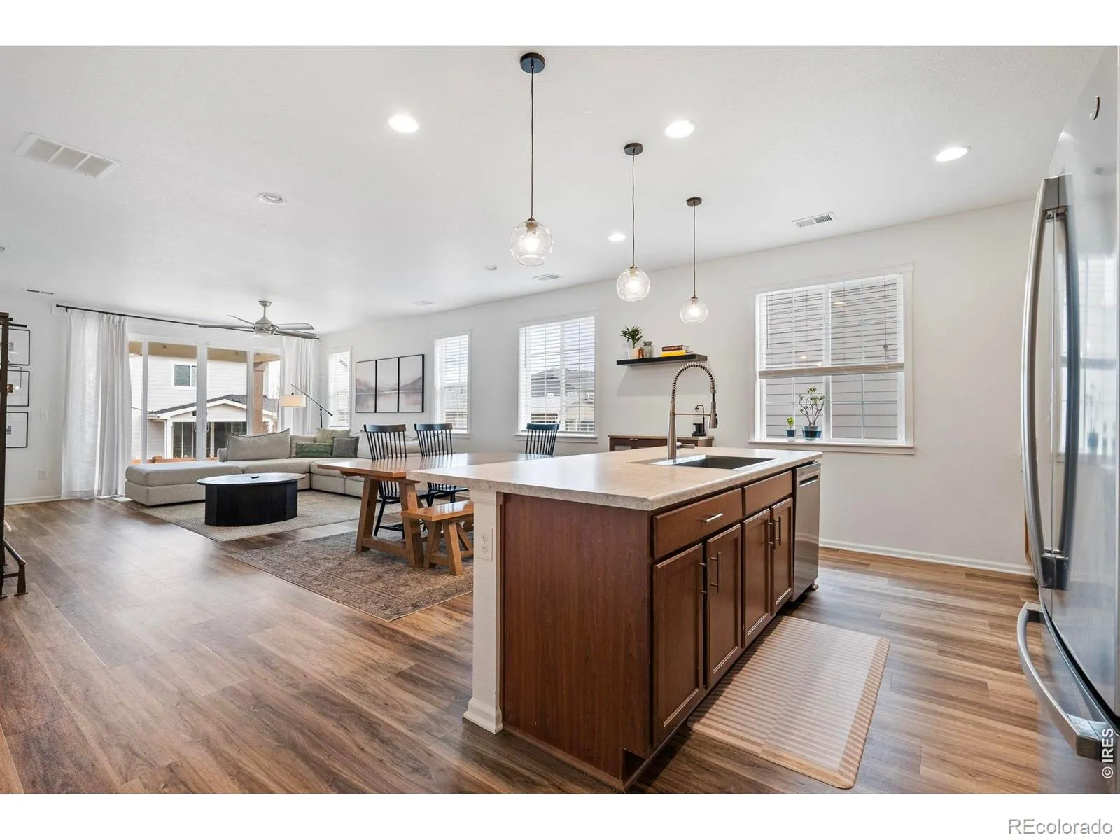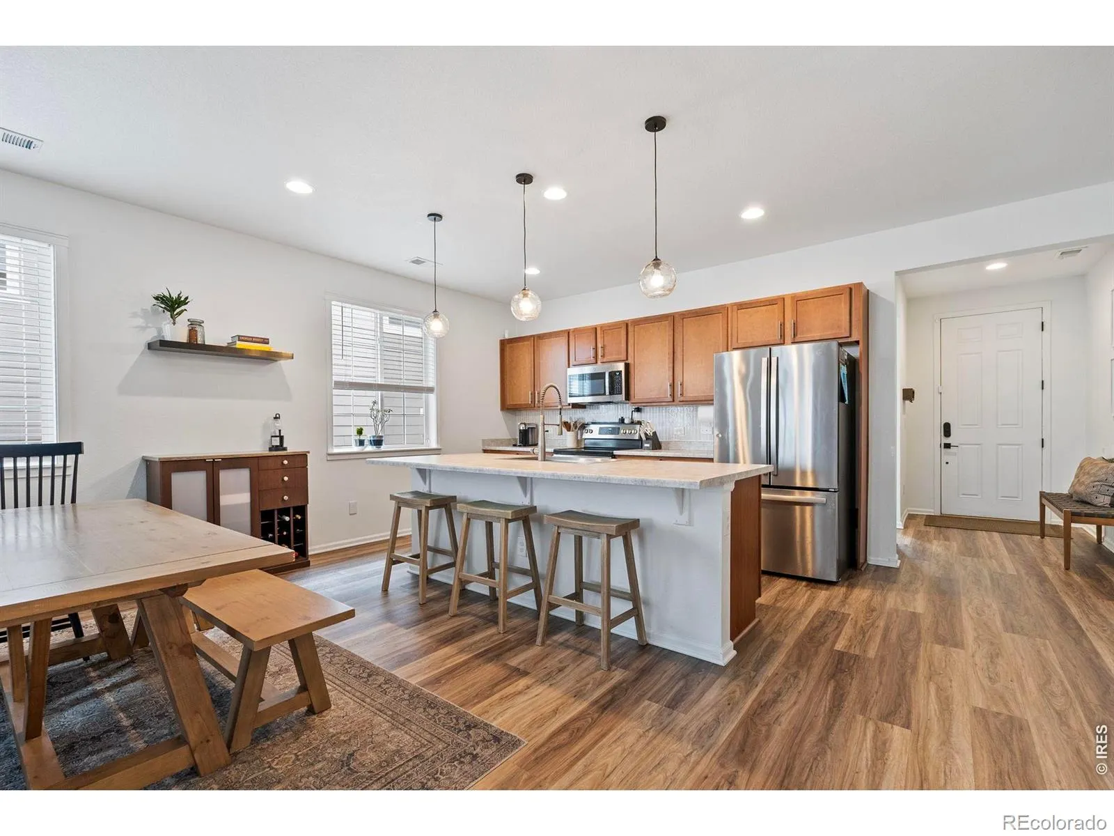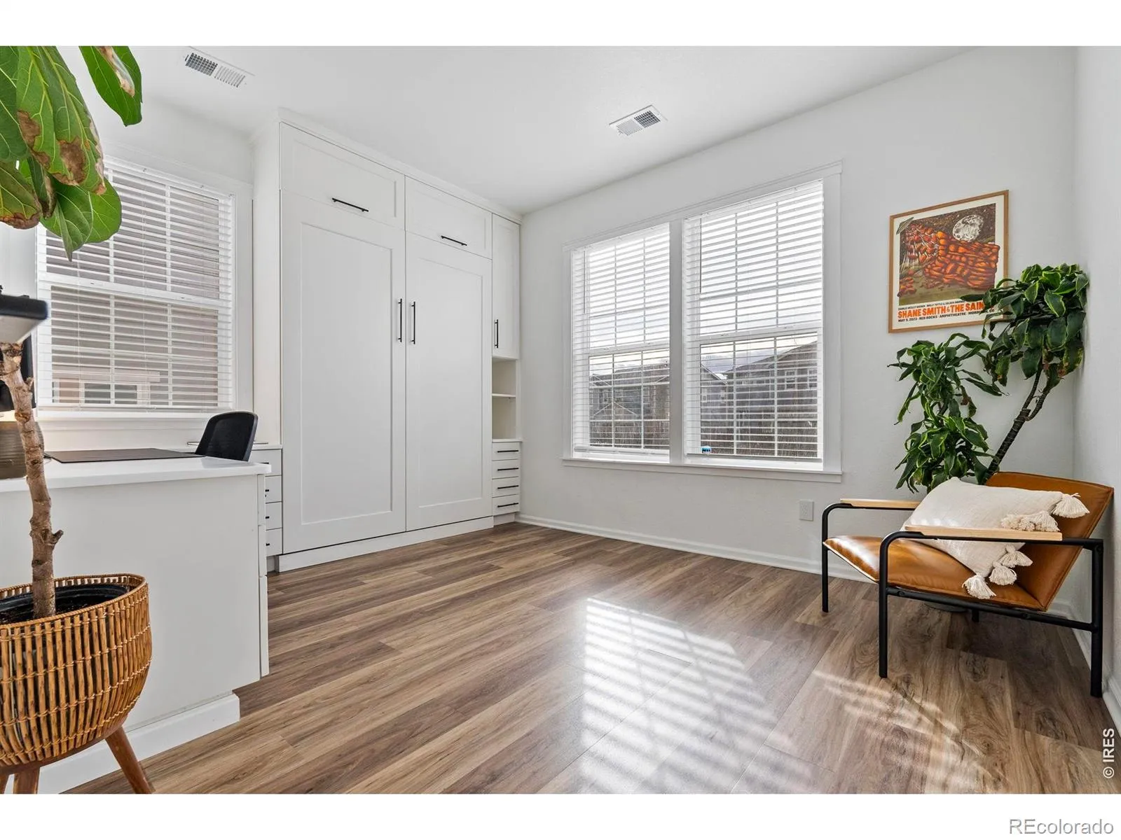 PREFERRED LENDER OFFERING INCENTIVE FOR BUYDOWN OR CLOSING COSTS! Welcome to this beautifully updated ranch-style home in the highly desirable Collier Hills community of Erie, offering 3 bedrooms with the potential for a 4th, 2 bathrooms, and 1,966 square feet of living space. The optional 4th bedroom is currently used as a versatile office with a built-in Murphy bed and custom desk, making it ideal for guests or working from home. The open floor plan creates a bright and modern living space, highlighted by a built-in entertainment center that’s perfect for both everyday living and entertaining. Step outside to the covered patio and enjoy your own private outdoor retreat. Additional features include a two-car garage, a built-in entertainment center, and a roof replaced in 2023 with a transferable warranty. Enjoy nearby community amenities including a clubhouse with pool, fitness room, parks, disc golf, the Erie Recreation Center, and scenic walking trails. Located just minutes from downtown Erie, this home offers the perfect combination of convenience and charm.