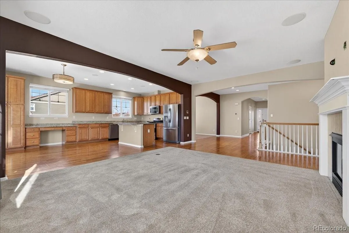 Beautifully maintained home tucked away on a large corner lot in Aurora’s desirable Wheatlands community. Spacious ranch offering an open-concept layout filled with natural light, perfect for both everyday living and entertaining. The kitchen features ample cabinetry, a large island, and seamless flow into the living and dining areas. Generously sized bedrooms, including a comfortable primary suite with a 5 piece primary bath and large walk-in closet. The partially finished basement provides an additional audio room with soundproofing, ideal for a home theater or media room. The remaining unfinished space offers a blank canvas to make it your own with rough-ins for additional bathroom. Large crawl space with substantial extra storage space. Step outside to your private backyard retreat featuring a custom-built gas fire pit—perfect for Colorado evenings, relaxing under the stars. The expansive lot provides extra space for play, pets, and future possibilities. Walk to Pine Ridge Elementary school and community pool, or take advantage of nearby parks, trails, and community amenities, including The YMCA of Metro Denver’s newest wellness/recreation center. Conveniently located near Southlands mall shopping and dining, and easy access to E-470 and DIA.