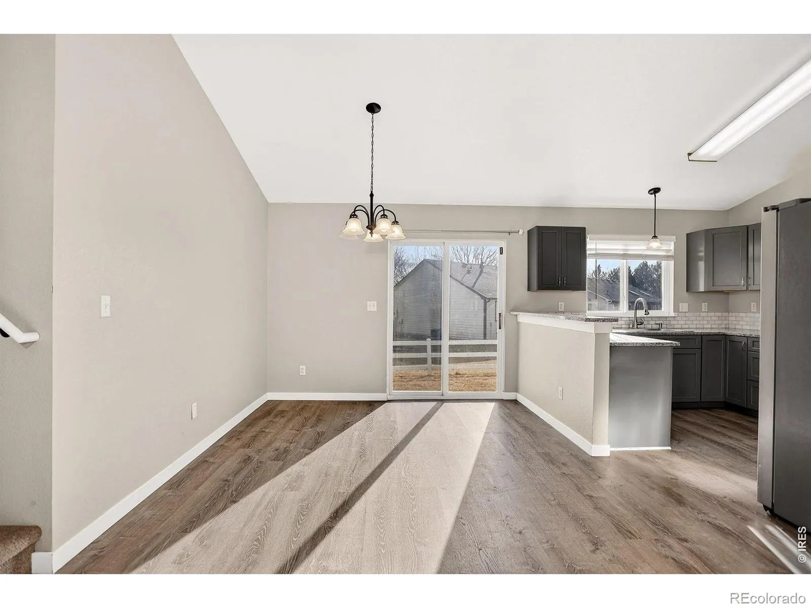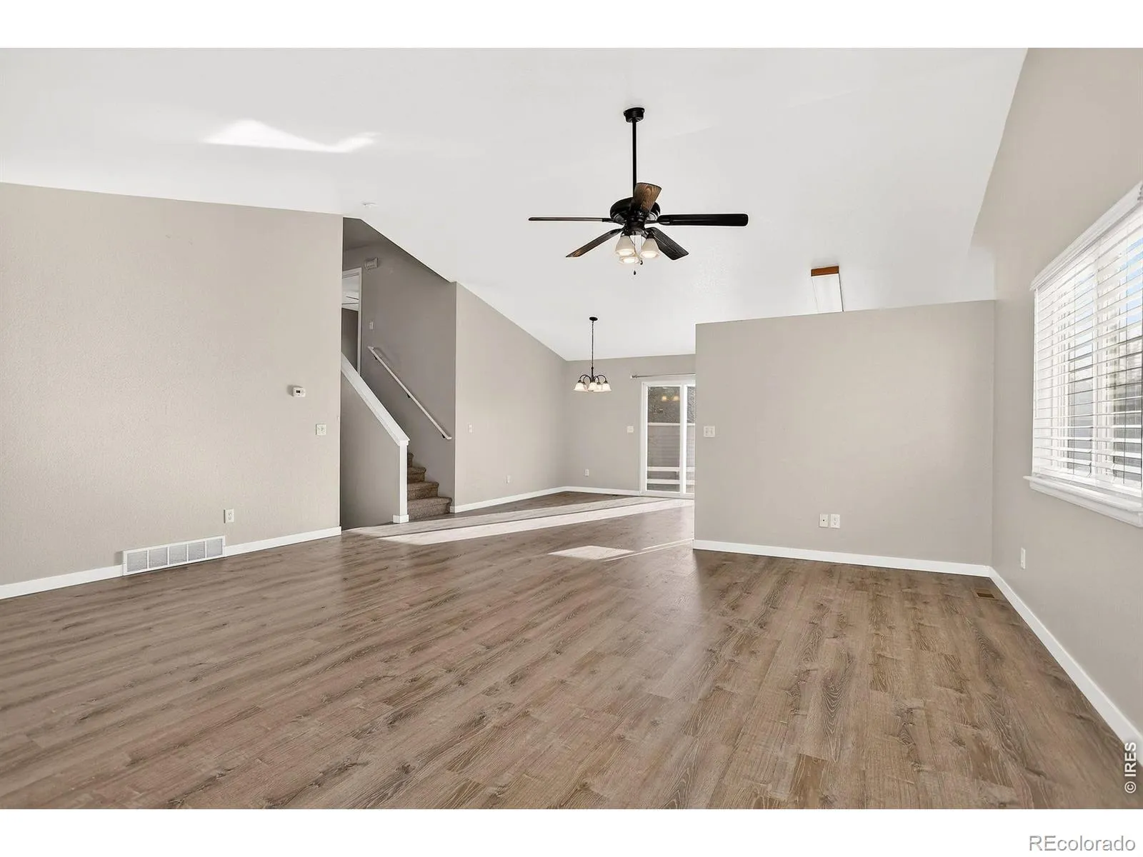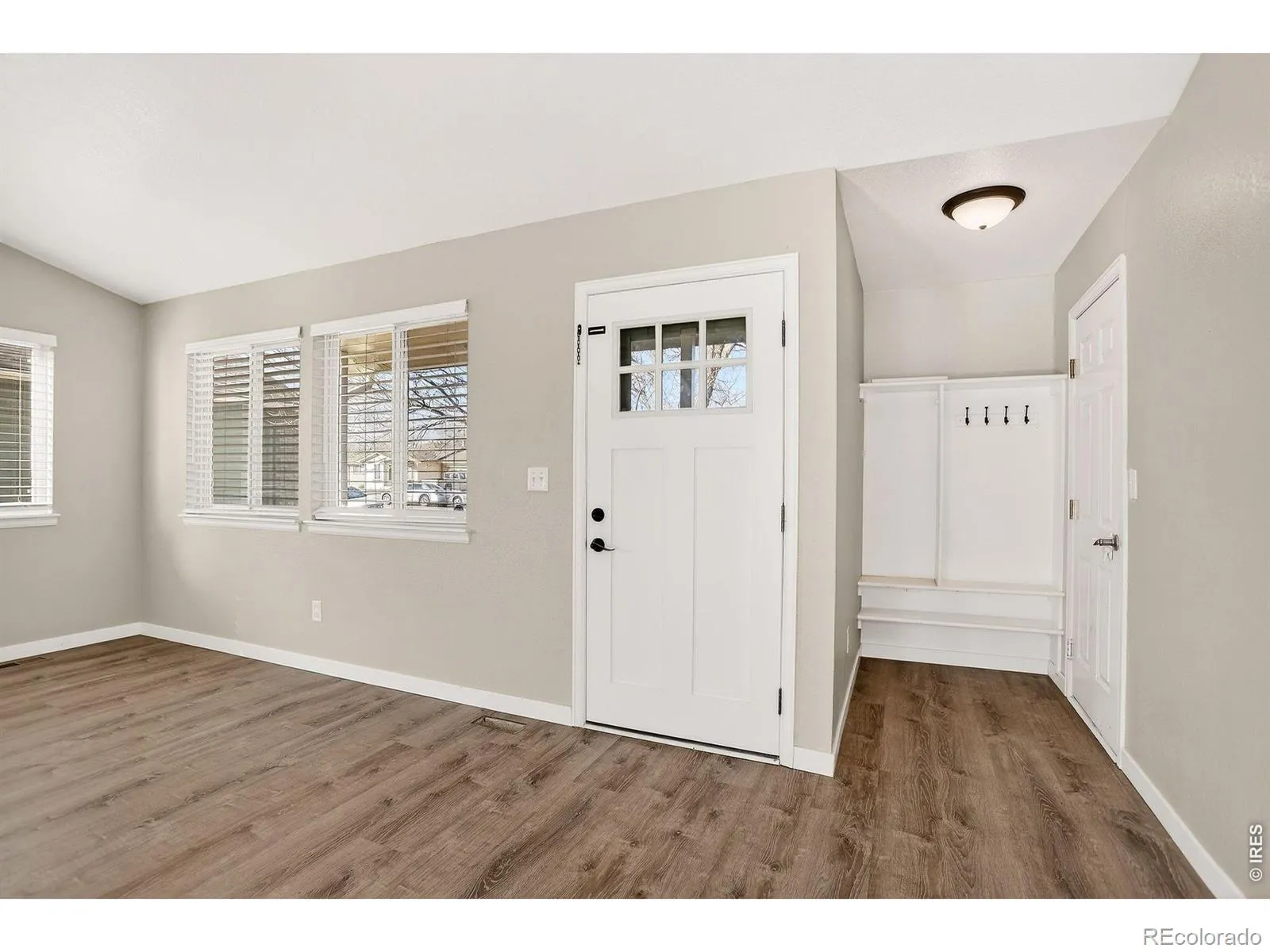 Welcome to this inviting tri-level home in the Thompson Valley II Subdivision in Loveland, Colorado. This tastefully updated home features 4 bedrooms and 2 bathrooms and offers a functional layout with room to grow. The west-facing orientation provides beautiful afternoon light, while the level lot is enhanced by mature deciduous trees and a fully fenced yard-perfect for relaxing or entertaining. A welcoming front porch adds charm and a great spot to enjoy your morning coffee. The thoughtfully designed floor plan offers living room, kitchen, and separate dining space on the main level, highlighted by vaulted ceilings and stainless steel appliances. Upstairs features the primary bedroom with a walk-in closet, along with two additional bedrooms. On the lower level, you’ll find a comfortable family room, an additional bedroom, and a convenient laundry room. Fresh exterior paint and new roof. Located in a neighborhood with a nearby play area, this home combines comfort, convenience, and a great Loveland location.