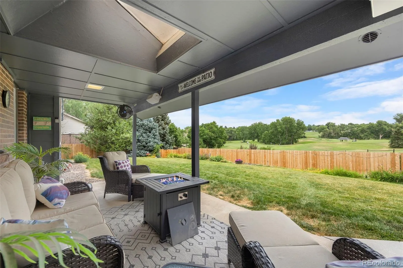 Overlooking the golf course, this beautifully updated 5-bedroom, 3-bathroom home pairs scenic views with thoughtfully designed living. An open, airy floor plan invites easy entertaining, where the sleek kitchen, complete with granite countertops and classic subway tile, flows seamlessly into the main living spaces. In the living room, a cozy fireplace and built-in dry bar with a beverage cooler create the perfect setting for relaxing evenings or gathering with friends. Outside, a covered patio opens to a private backyard with sweeping golf course views, offering a peaceful backdrop for morning coffee or sunset unwinding. Upstairs, the newly remodeled primary suite and walk-in closet feels like a true retreat, highlighted by vaulted ceilings with a striking wood beam.