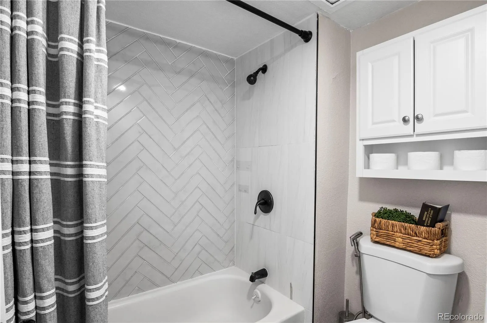 morning coffee or an al fresco dinner! The Bathroom is beautifully remodeled with custom tile work and matte black