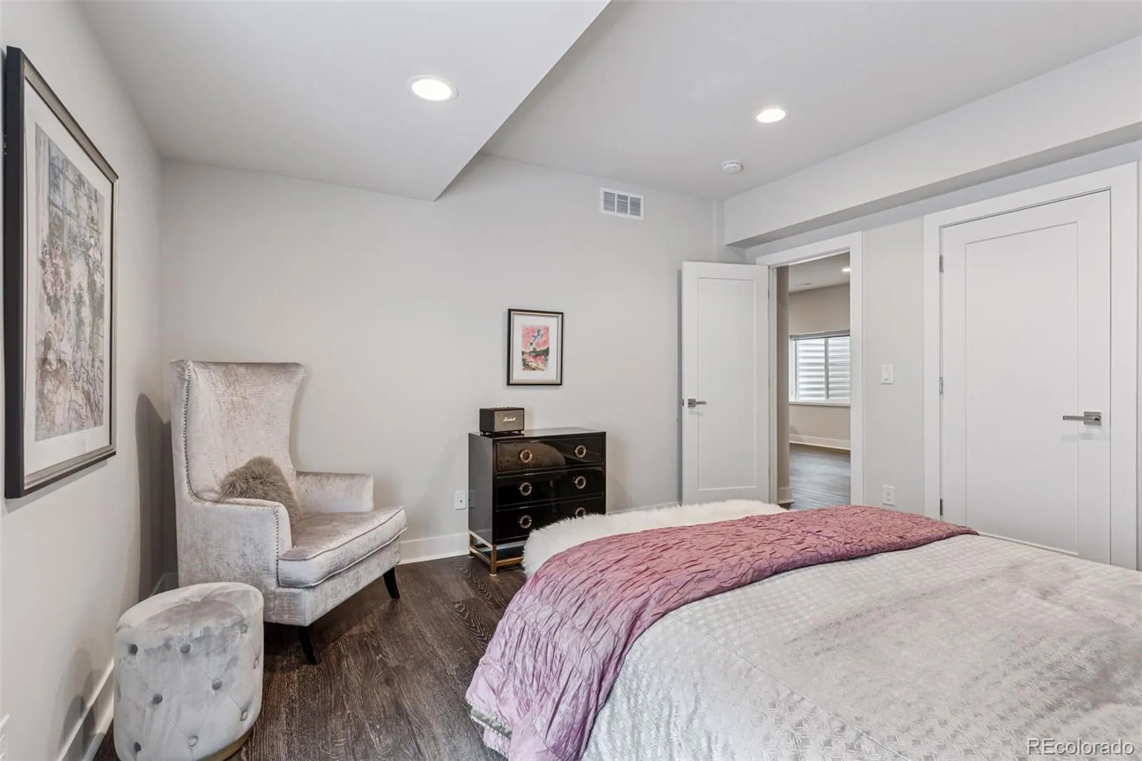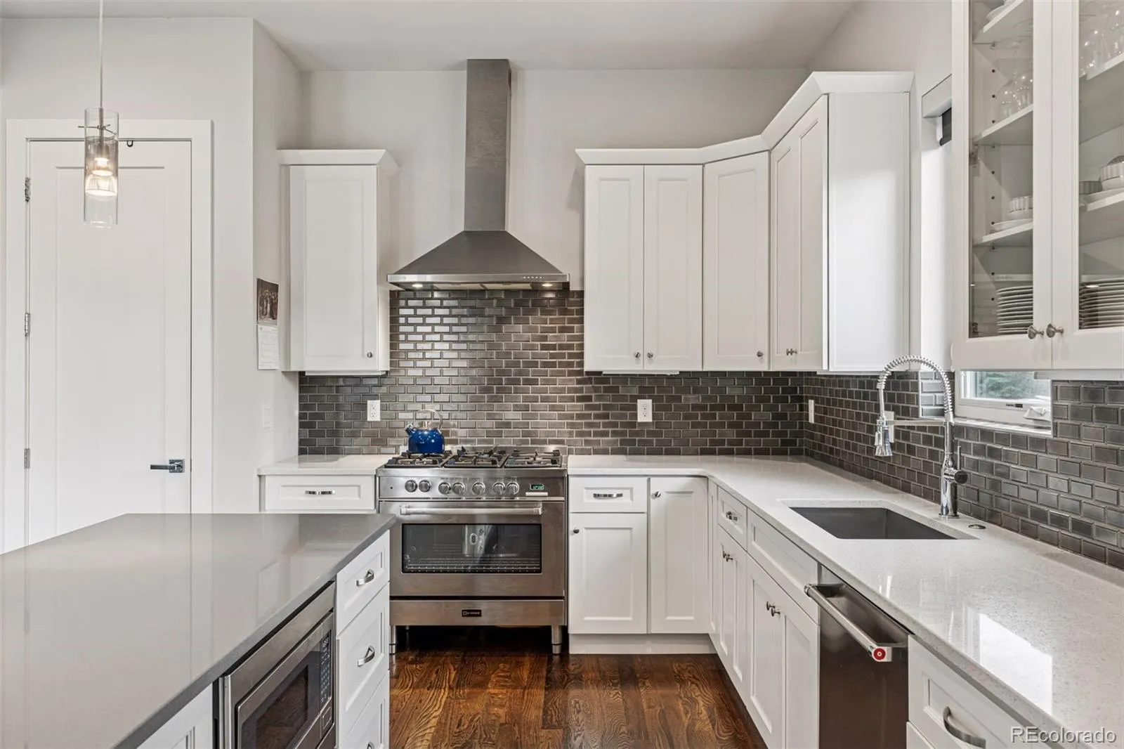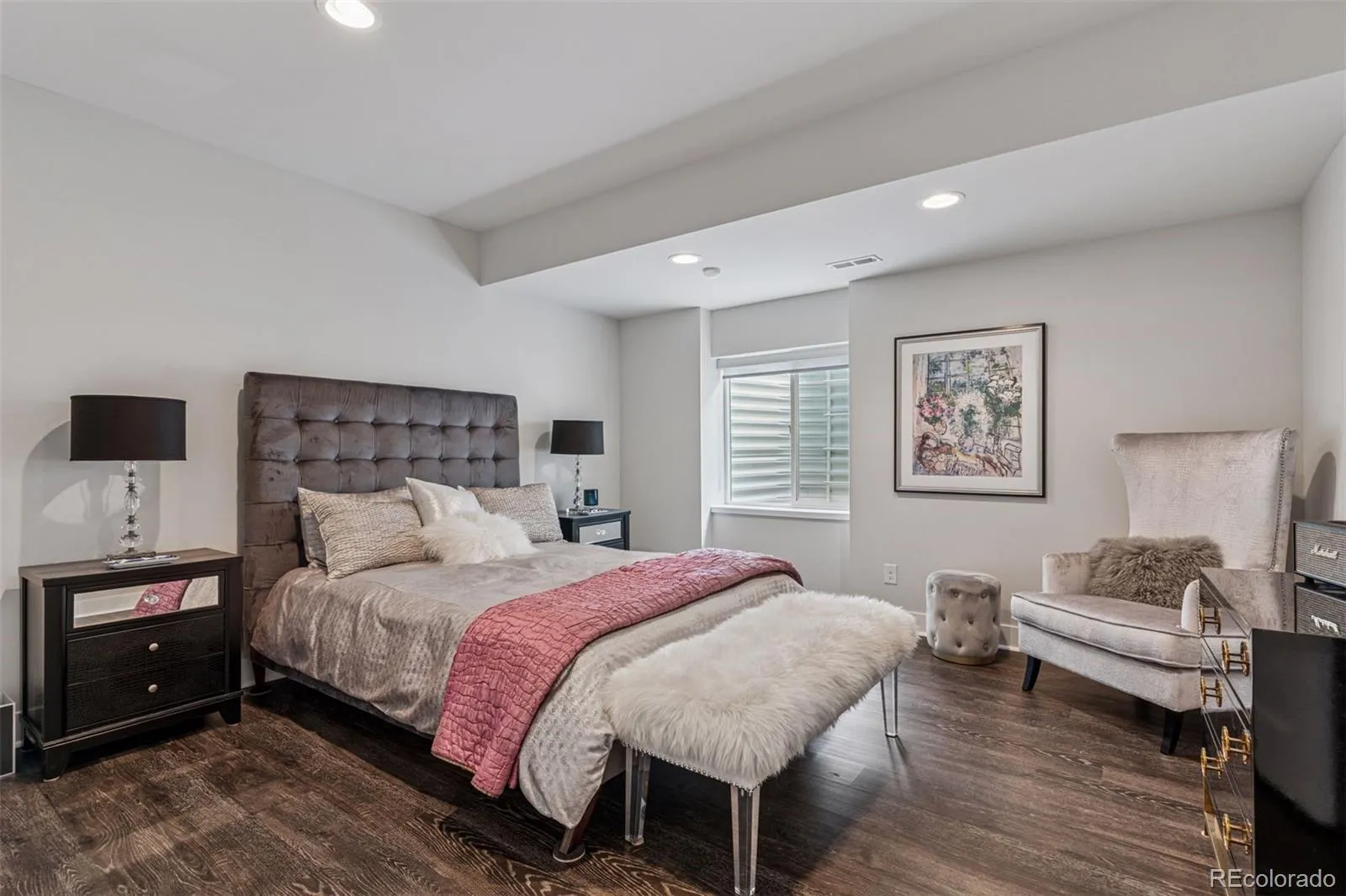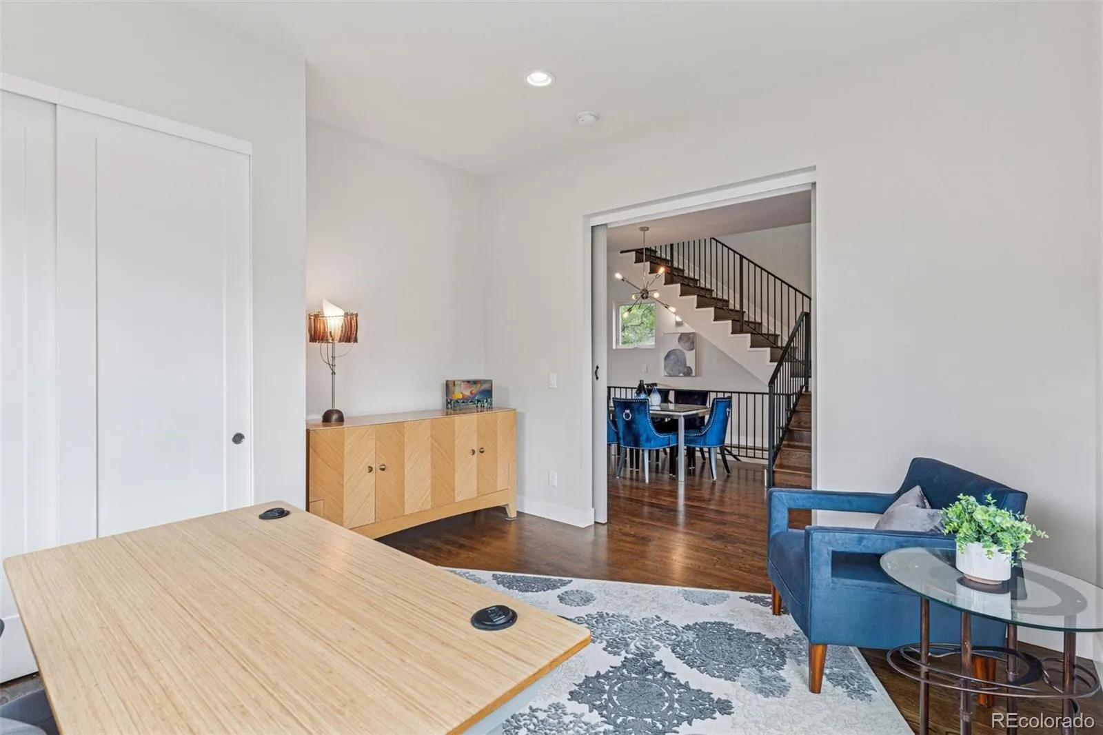 This well priced modern Denver Square in the Cory-Merrill neighborhood offers 3400 square feet of well-designed living space. Built in 2017, the home features thoughtful upgrades throughout. The main floor includes an office, dining area, and great room with a built-in gas fireplace. The kitchen is designed for both function and style, with modern white cabinetry, an expanded island, gas stove, side-by-side refrigerator and freezer, beverage/bar refrigerator, built-in microwave, and plenty of storage. Large windows throughout provide abundant natural light, and the layout flows easily from the house into the private backyard. Upstairs, you’ll find three bedrooms, including a spacious primary suite with a walk-in closet and a five-piece bath complete with a free-standing tub and oversized shower. The primary bedroom also features a custom paneled wall that adds a clean, modern accent. Two additional bedrooms, a full bath with double sinks, and upstairs laundry complete the second floor. The finished basement has high ceilings, a large bedroom, stylish bathroom, and a large family room that adds great flexibility for entertaining or relaxing. Additional highlights set this home apart with its cohesive blend of modern style and thoughtful craftsmanship. Wood floors run throughout the home, complementing the sleek quartz countertops and clean-lined modern fixtures. Custom tilework adds subtle personality to each bathroom and living space, while exposed steel architectural beams introduce a modern feel. Single-panel doors and glass shower enclosures contribute to the clean, streamlined aesthetic. The home is also equipped with a tankless water heater, built in speakers, and is finished in a neutral, contemporary palette that lets the quality finishes and design details take center stage. Located just a short walk from Cory Elementary and Merrill Middle, with easy access to Washington Park, and Bonnie Brae.