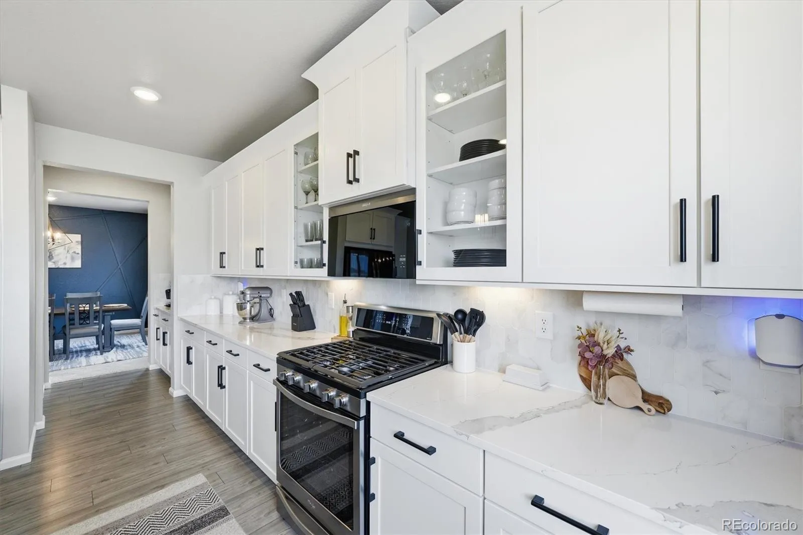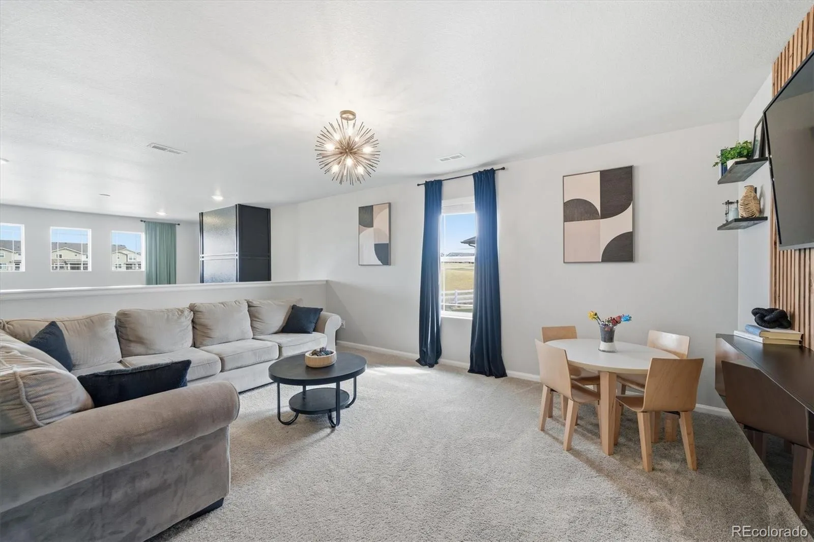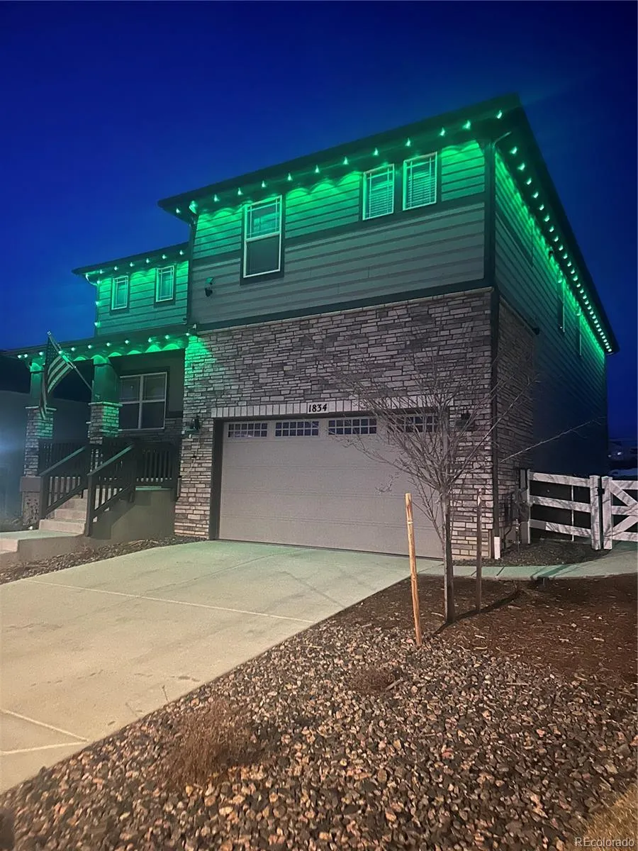 Thoughtful upgrades throughout include a fireplace mantle with wood trim accents. There are multiple accent walls in the dining room, bathroom, primary suite, and loft. Upgraded interior lights shine throughout the home. There is permanent exterior holiday trim lighting with year round color options to celebrate any occasion!