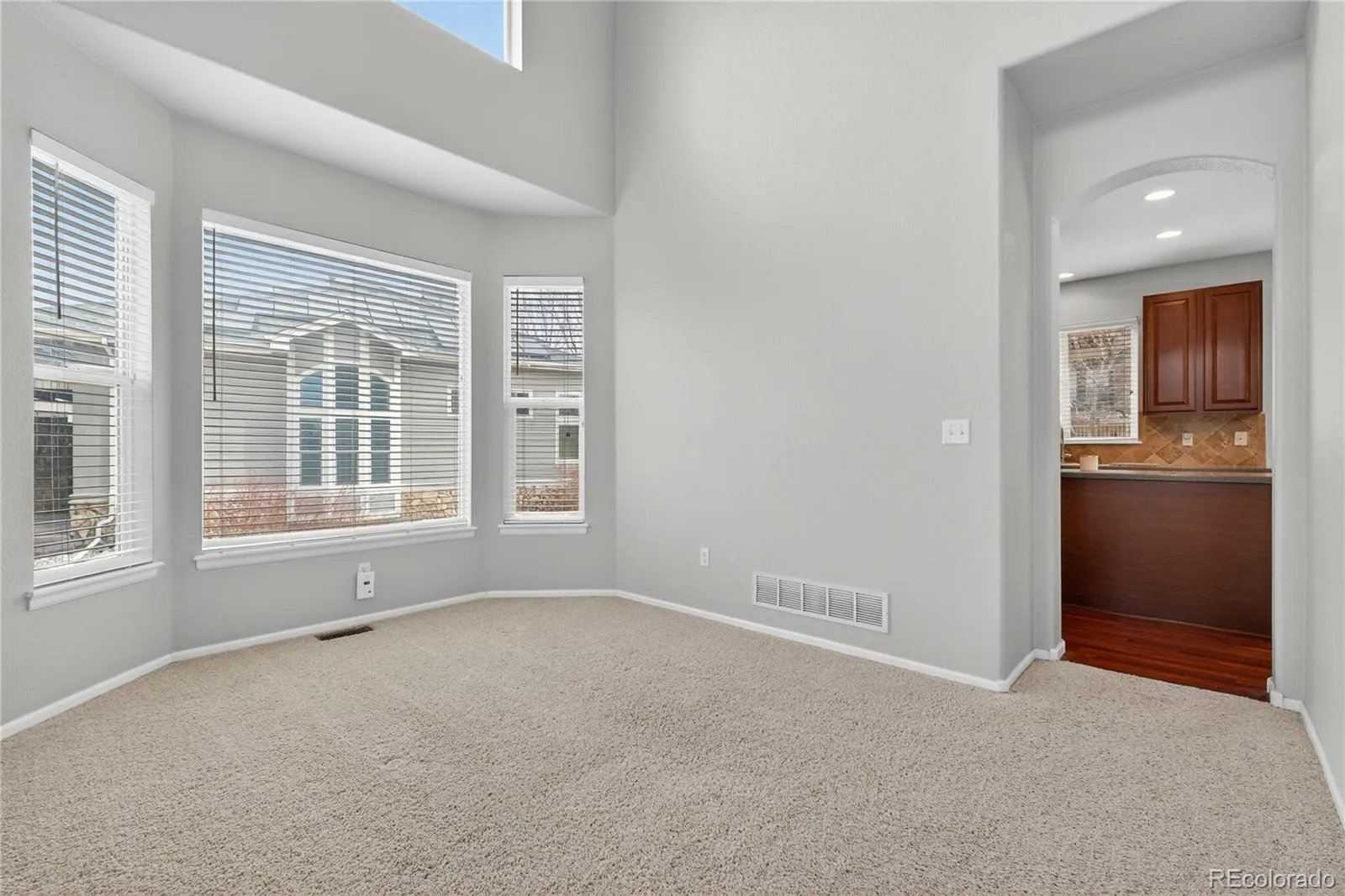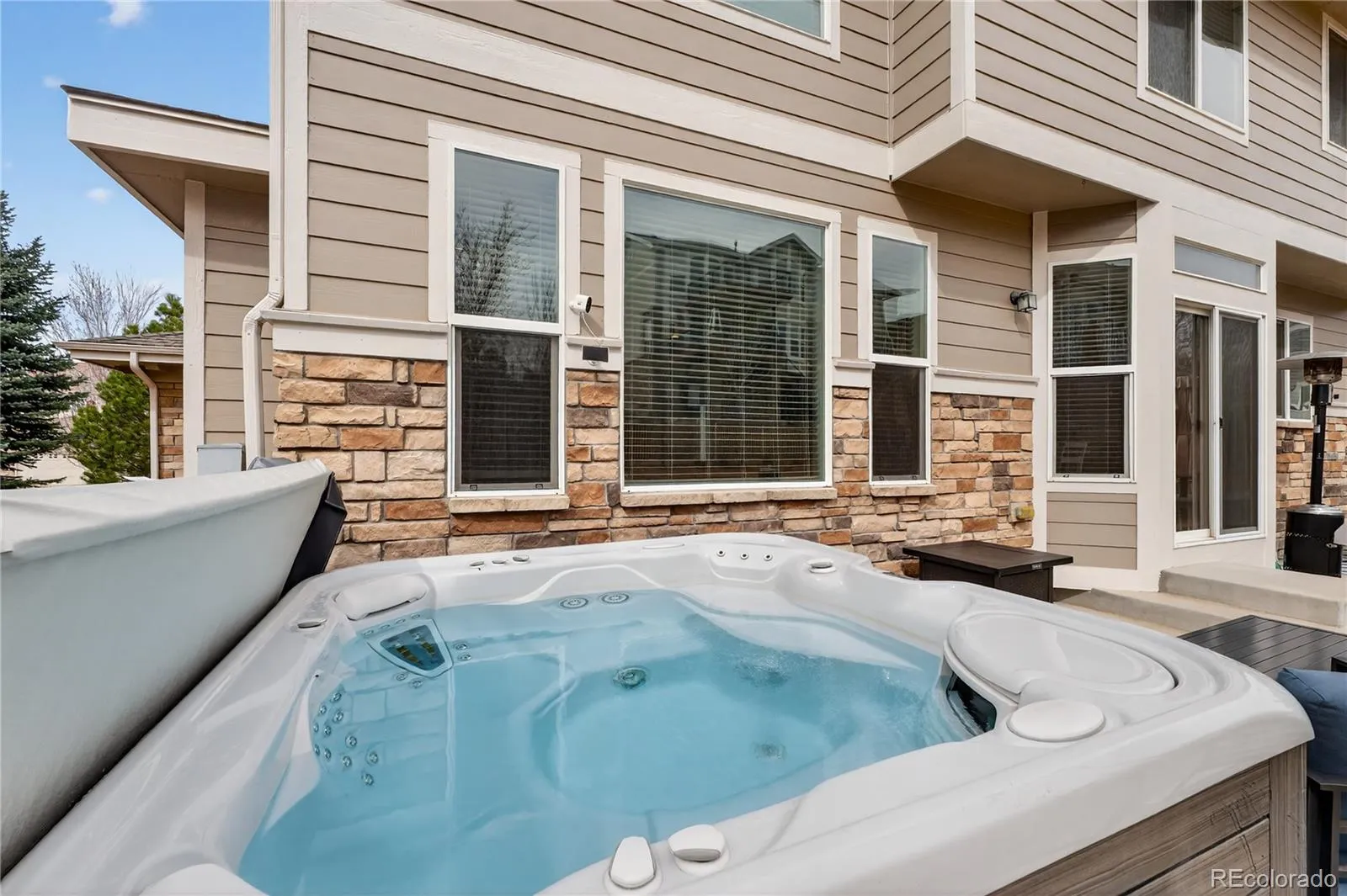 Soaring ceilings & expansive windows fill the dramatic two-story living area with natural light, setting the tone for this bright home with a comfortable balance of formal & casual spaces. A formal living & dining room greet you near the entry, while the family room offers a relaxed gathering space centered around a fireplace. The kitchen features stainless steel appliances, generous cabinetry, a center island, & a bright dining area with views of the backyard & patio, creating a natural hub for everyday living & entertaining. A versatile main-level bonus room offers flexibility for a home office, study, or playroom. Upstairs, the spacious primary suite serves as a private retreat with vaulted ceilings & a sitting area. A two-sided fireplace connects the bedroom to the five-piece bathroom, where a soaking tub, separate shower, & generous layout create a spa-like atmosphere. Three additional bedrooms & a full bathroom complete the upper level. Outdoor living continues with an extended patio completed in 2024, offering ample space for outdoor seating, entertaining, or relaxing in the hot tub while overlooking the large backyard. The property also includes an oversized three-car garage & a wide driveway providing plenty of parking & storage. The unfinished basement offers excellent potential for future expansion. Recent improvements include fresh interior & exterior paint (2024), an extended patio (2024), a new garage door opener (2023), & a roof replaced in 2017. Additional updates completed in 2016 include refinished hardwood floors, new laundry room tile, refrigerator, dishwasher, garbage disposal, & water heater. Conveniently located near E-470, this home offers quick access to major commuting routes, Buckley Space Force Base, & the airport. Situated in one of Colorado’s most sought-after school districts, Cherry Creek School District, the area features schools all within a mile. Southlands Mall, Target, restaurants, parks, & nearby trails are also minutes away.