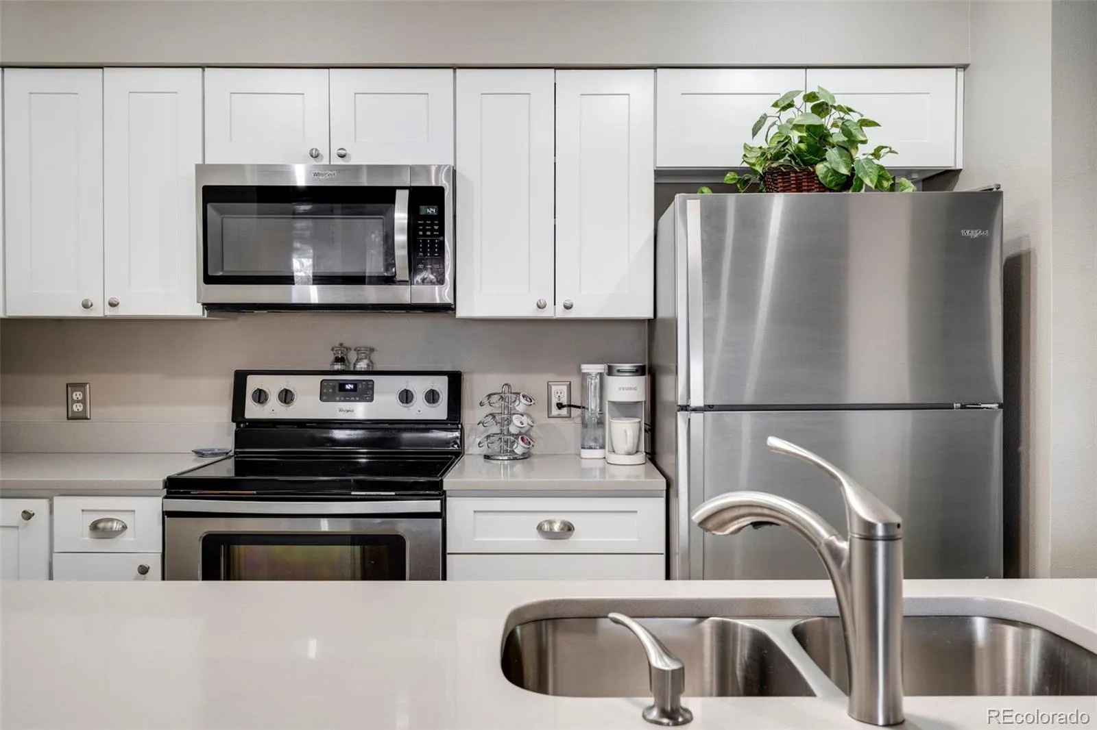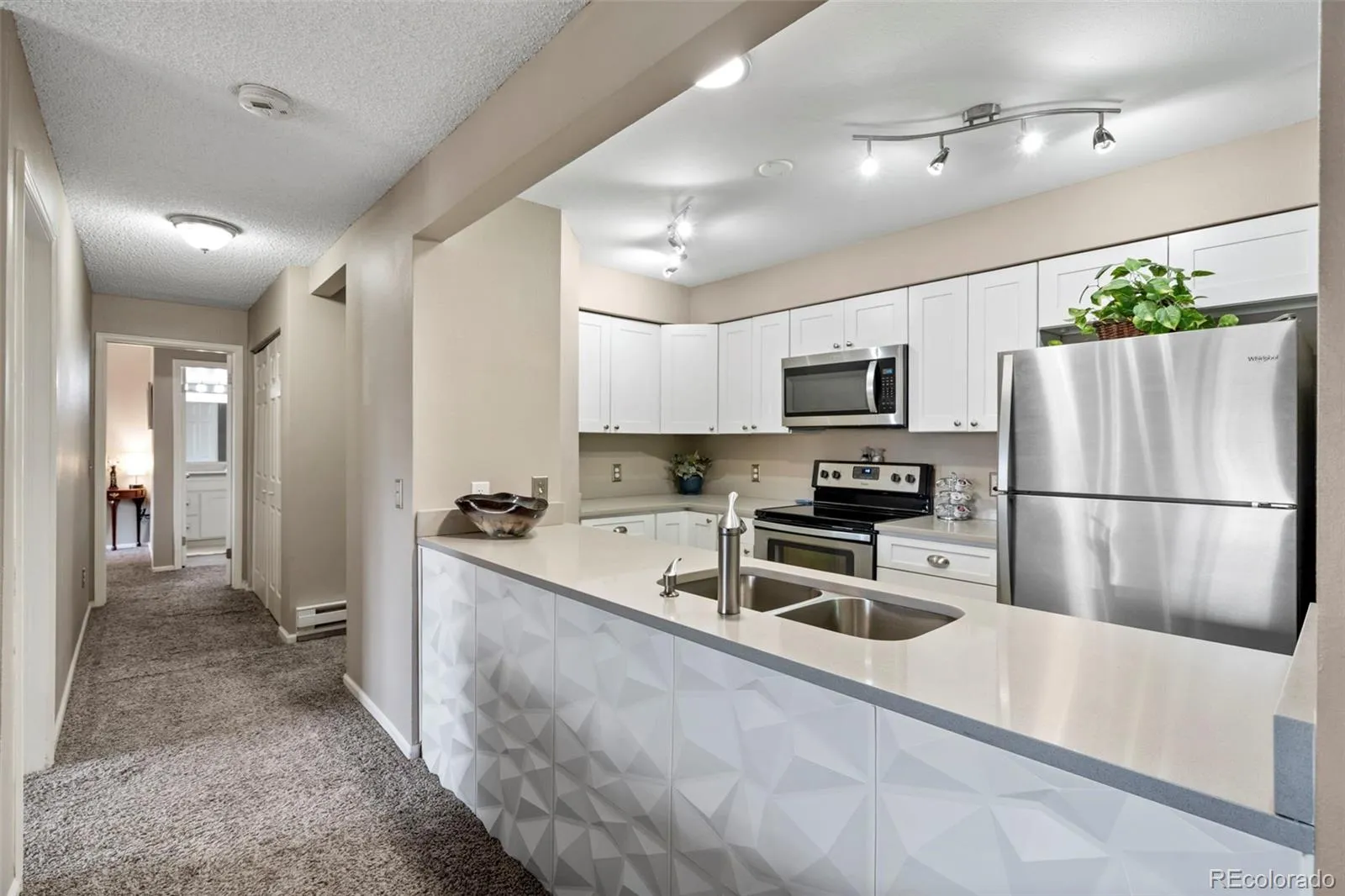 Wonderful 2-bedroom, 2-bath condo that feels like new. The fully updated kitchen and dining area shine with shaker-style cabinets, quartz countertops, and stainless-steel appliances, offering ample cabinet and counter space—ideal for cooking and entertaining. A stroll through this wonderful place you’ll discover a pleasant layout that feels like home. The spacious family room features a cozy wood-burning fireplace and direct access to a sunny covered balcony—perfect for morning coffee or relaxing with a good book. A newer sliding door enhances both function and style. Down the hall, you’ll find a beautifully remodeled and oversized full bathroom with custom tile work and modern finishes. The secondary bedroom and convenient in-unit laundry are thoughtfully positioned, while the private primary suite at the end of the hall features a walk-in closet and an oversized updated en-suite 3/4 bathroom with walk-in shower. This turnkey home combines comfort, style, and convenience. Plus, this home comes with 3 parking spaces – 2 designated and 1 covered parking ($75 dollars per month for covered), comes with a small storage unit. For outdoor enthusiasts, there is quick access to the High Line Canal with many miles of paved pathways. Just minutes to the Aurora Community Center, close to shopping, parks, trails and transportation. Quiet community and peace of mind living!