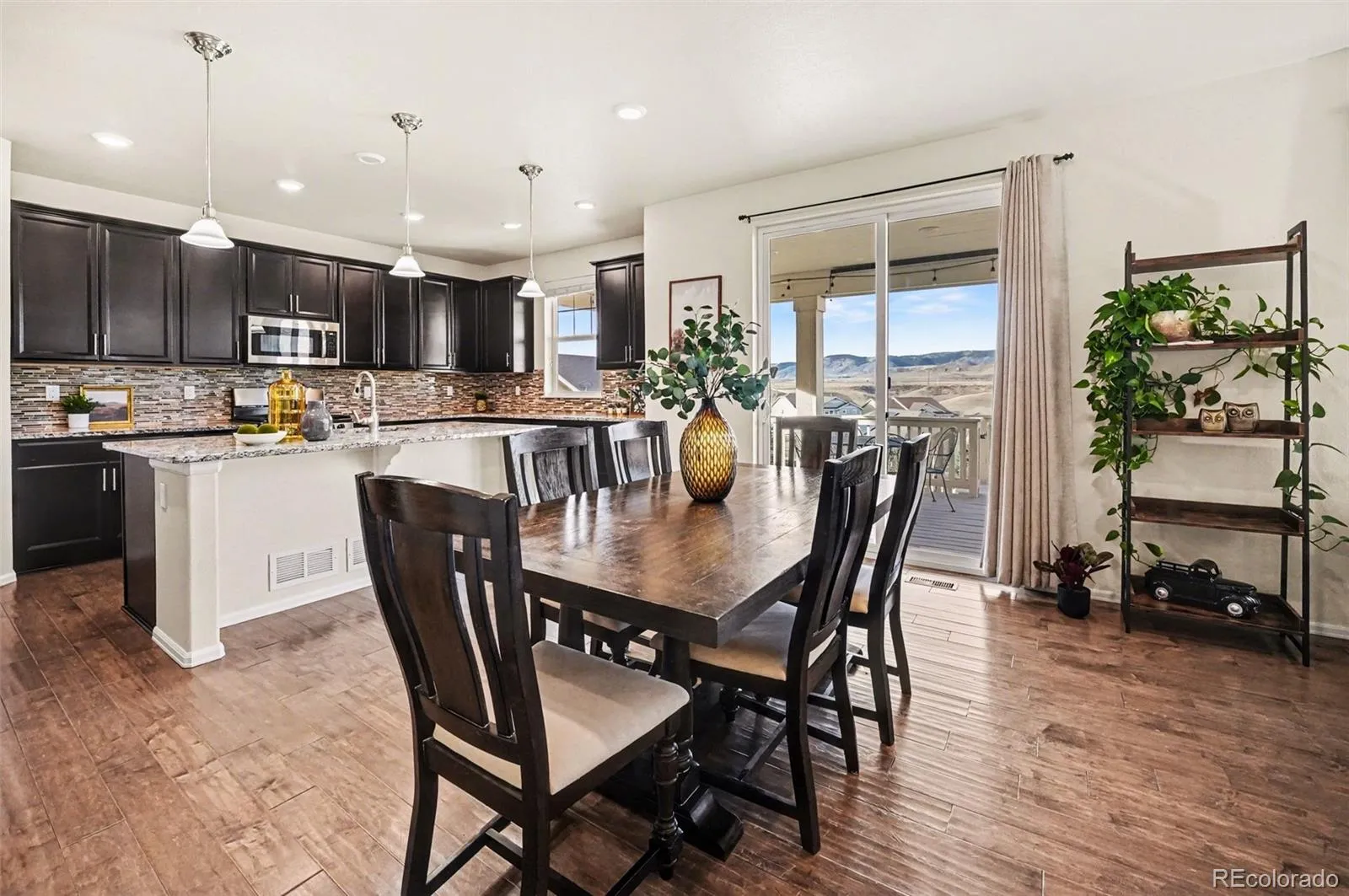 Perched on a premium ridge-top lot, this stunning home offers sweeping views of the Front Range and surrounding mountains, along with a direct sightline to Westridge Park. From the moment you step into the bright, open foyer, you’re welcomed by thoughtful design and inviting spaces. A main-floor bedroom and full bathroom sit just off the entry—perfect for guests or multi-generational living. The open-concept main level is ideal for both everyday living and entertaining, featuring a spacious living room with a cozy gas fireplace that seamlessly flows into the dining area and gourmet kitchen. The kitchen is a chef’s dream, complete with stainless steel appliances, a separate pantry, and an expansive island perfect for gathering. Step outside onto the Trex deck and take in the breathtaking mountain views—an entertainer’s paradise.