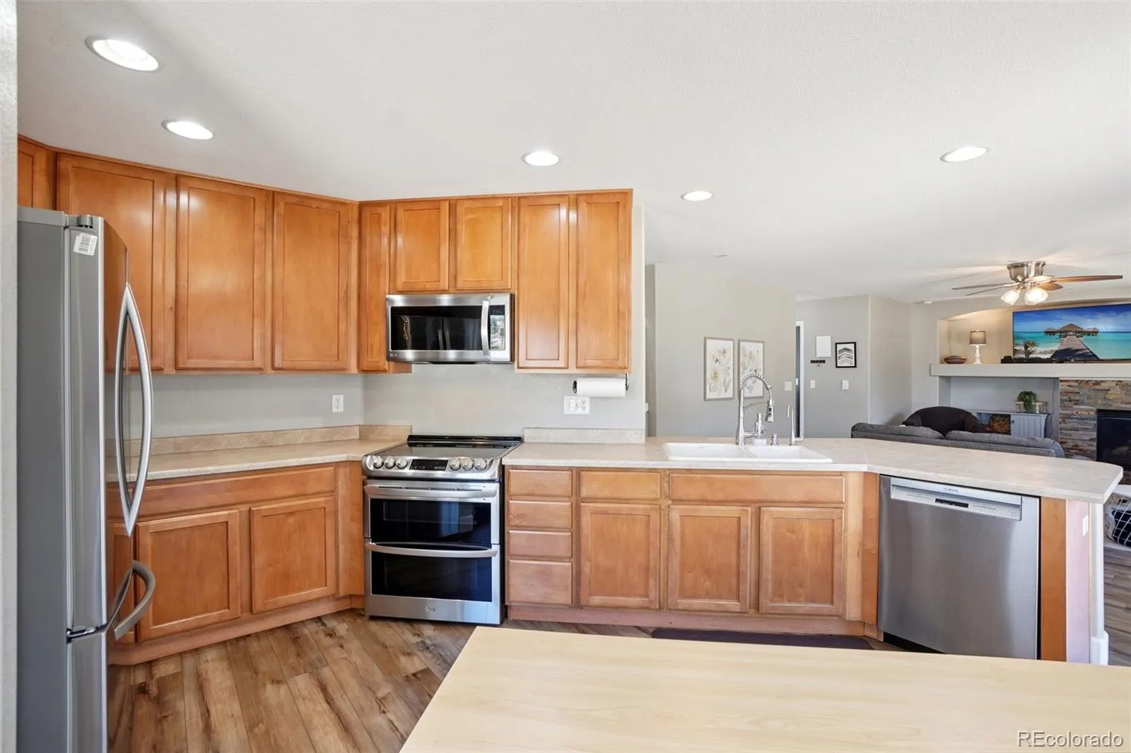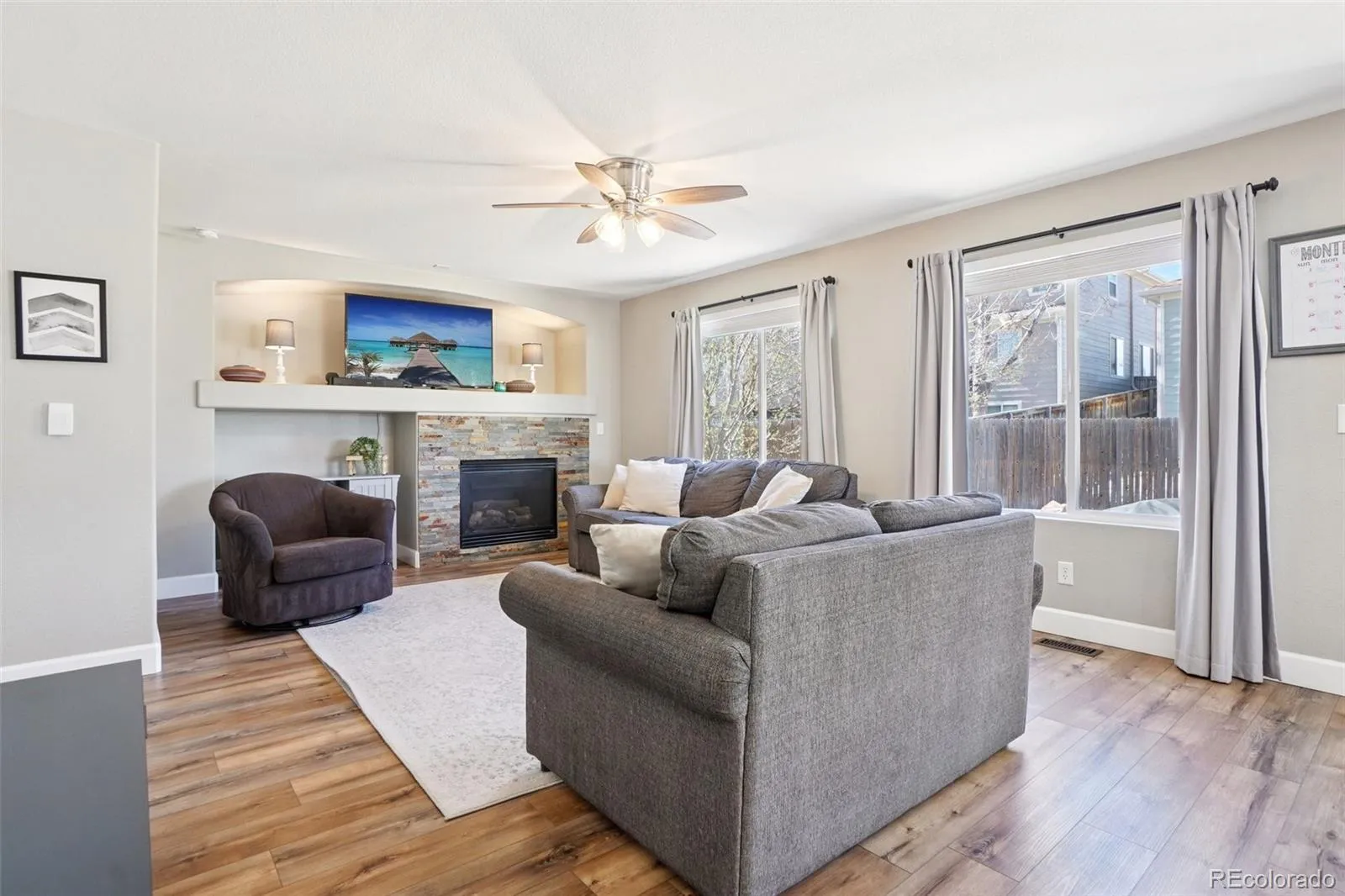 Welcome home to this updated Bradbury Ranch 2-story residence, perfectly balancing modern amenities, classic design, and functional living and entertaining spaces. All-new exterior paint, a new Class 3 hail-resistant roof (2025), and mature, professional landscaping offer instant curb appeal to this premium corner lot situated across from a community green space. Inside, stunning LVP flooring (2025), fresh paint, upgraded lighting, and custom blinds complement the open floor plan and grand vaulted ceilings. The formal living and dining spaces seamlessly connect to the upgraded kitchen for easy entertaining. Enjoy preparing meals in the eat-in kitchen with the new SS appliance suite (2020), ample counter space, and wood cabinetry. Family movie nights and relaxing by the gas fireplace with a stone surround are ideal in the inviting family room. Step outside to a sizeable patio, ready for summer BBQs while overlooking low-maintenance landscaping and a lush yard. Upstairs, the private living quarters comprise three generously sized secondary bedrooms, an updated full bath, and the primary suite. This serene retreat features vaulted ceilings, a walk-in closet, and an updated 5-piece bath with a new vanity, hardware, lighting, and glass shower. Additional features of this turnkey residence include a new Jetson HVAC system (2026), a Racchio Wi-Fi-enabled sprinkler system, a private 5th bedroom on the lower level, updated bathrooms throughout, an attached 2-car garage, and a plumbed basement ready for future expansion. Ideally situated within minutes of the community pool, parks, award-winning Douglas County schools, shopping, dining, and major roadways, this home offers contemporary living in an ideal location.
