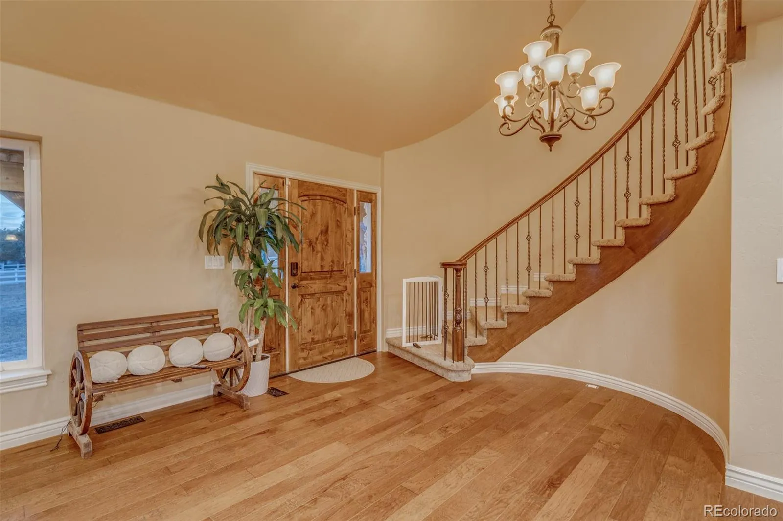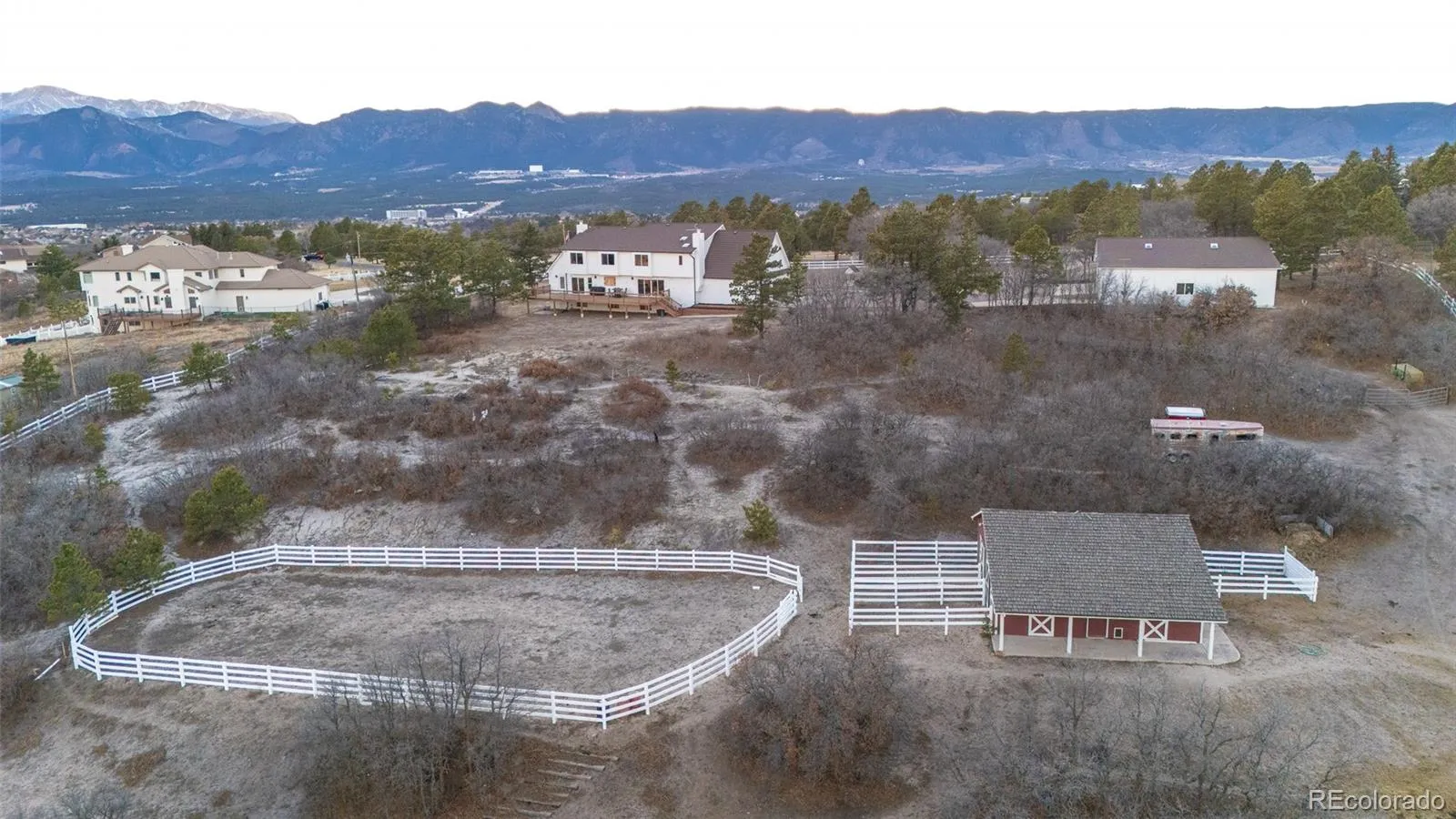 Rare opportunity to own 5.2 private acres in the highly sought-after Sun Hills area of North Colorado Springs with stunning Pikes Peak and Front Range views. This spacious 5,400+ sq ft home offers 4 bedrooms and 4 bathrooms with expansive living areas designed for both comfortable living and entertaining. Large windows bring in natural light while capturing the incredible Colorado scenery. The usable acreage, mature trees, and peaceful setting create the perfect Colorado lifestyle. The property also features a separate horse stalls/lean to, riding arena and a huge detached outbuilding garage that can hold all the toys you need. Truly ideal for horses, equipment, toys, or workshop space. Enjoy the best of both worlds—quiet country living just minutes from shopping, dining, and top-rated Academy District 20 schools. Properties with this much land, privacy, and views in this location rarely come available.