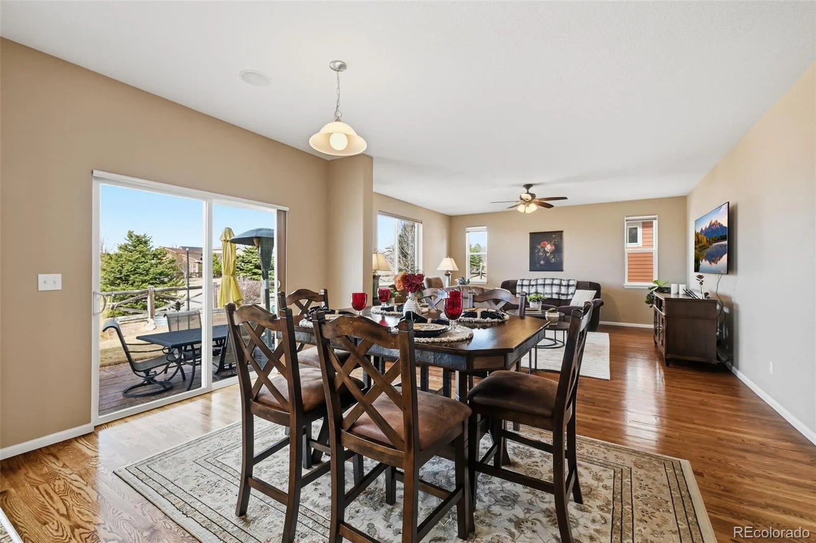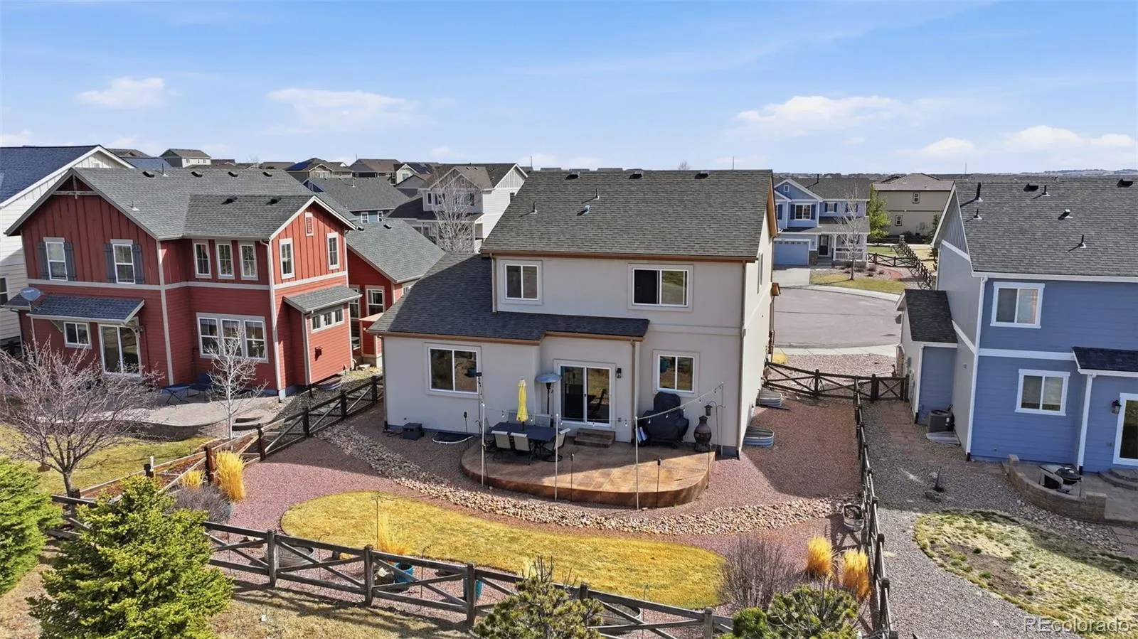 Welcome home to comfortable Colorado living in the vibrant community of Banning Lewis Ranch. This spacious 3,300 sq. ft. single-family home is a wonderful opportunity for buyers looking for a beautiful home, thoughtful features, and incredible neighborhood amenities at a great price point. Step inside and you’ll immediately notice the gorgeous hardwood floors throughout the main level, creating a warm and welcoming feel the moment you enter. The open layout offers plenty of room for gathering with friends and family, while the surround sound system adds the perfect touch for movie nights, game days, or relaxing evenings at home. The kitchen is both functional and inviting, featuring all appliances included, plenty of workspace, and a convenient pantry for extra storage. Whether you’re preparing a quick meal or hosting a get-together, it’s a space designed to make everyday living easy. This home offers 3 bedrooms, 3 bathrooms, and a dedicated office, providing flexible space for working from home, hobbies, or quiet study. You’ll also appreciate the upstairs laundry room, thoughtfully located near the bedrooms and complete with washer and dryer included for added convenience. Step outside to the backyard and take in the beautiful views of Pikes Peak while relaxing on the stamped concrete patio—a perfect place for morning coffee, evening sunsets, or summer barbecues. The home’s stucco exterior provides durability and low-maintenance living, while Jellyfish lighting adds a fun and elegant touch of year-round exterior lighting. Living in Banning Lewis Ranch means enjoying a community designed for connection and an active lifestyle. Residents have access to a beautiful clubhouse, two pools, tennis courts, open fields, and miles of trails winding throughout the neighborhood. With space, mountain views, great amenities, and an attractive price, this home offers an incredible opportunity to enjoy everything Colorado Springs living has to offer.